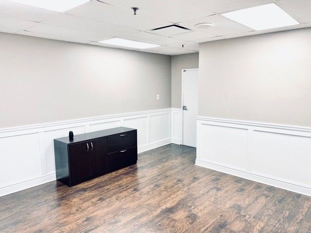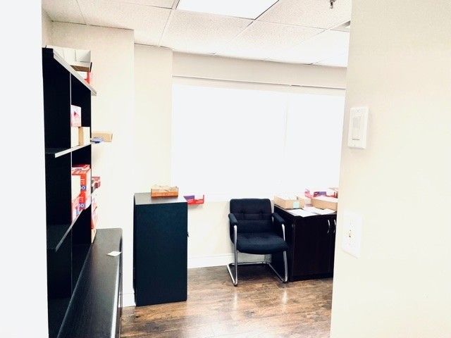 Spacious and bright office with multiple rooms, kitchenette lunch area and front reception waiting area. Located on east side of building with lots of natural light. Common mens and womens washrooms in hall. Very well located building near highways, ttc bus and subways. Next door unit unit 404 can be combined can create possible 2680sf unit for growing company.