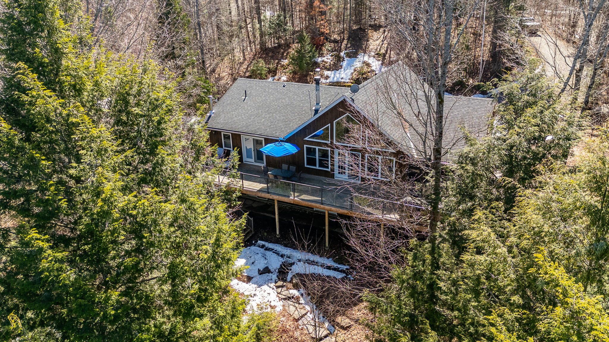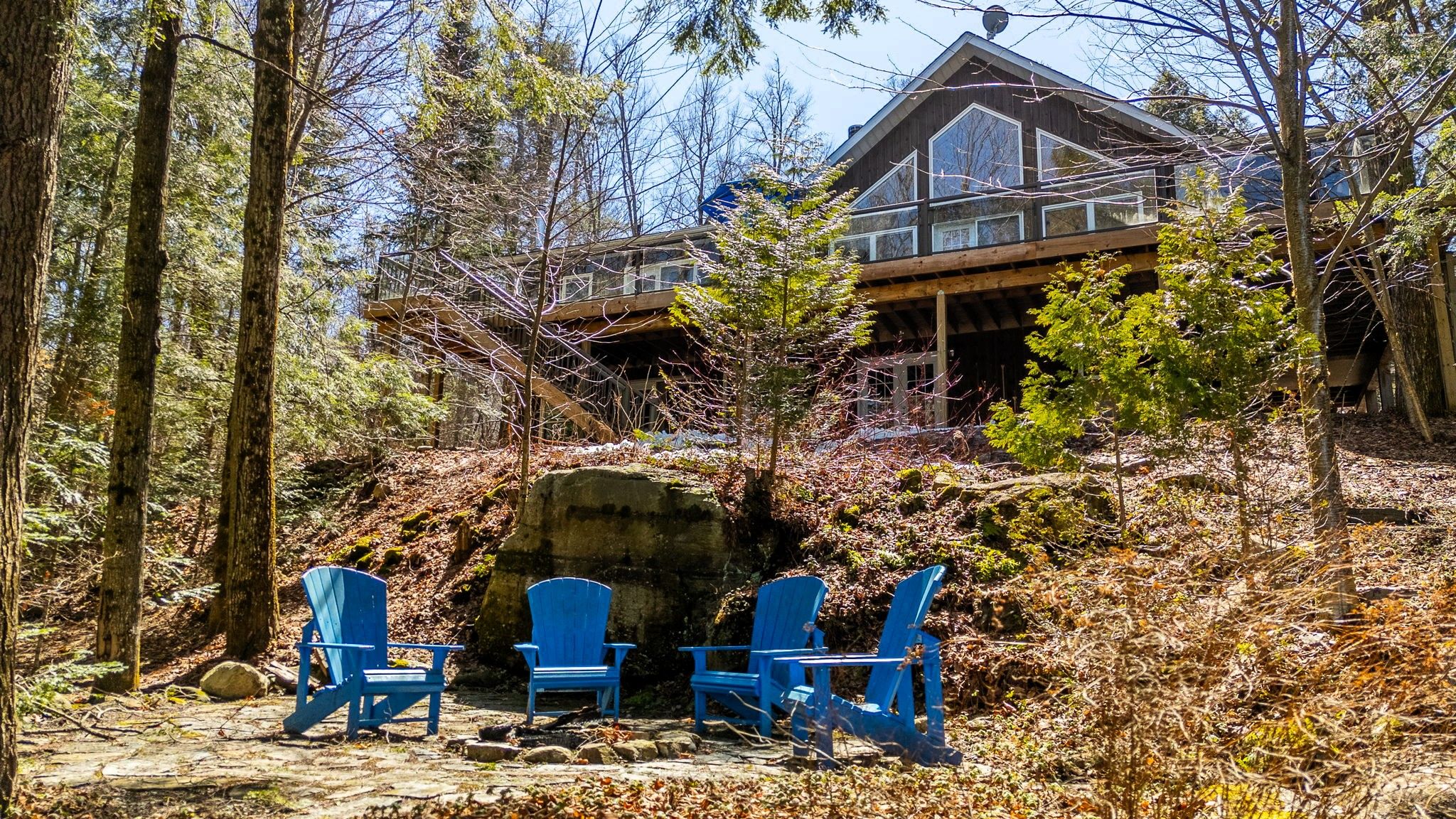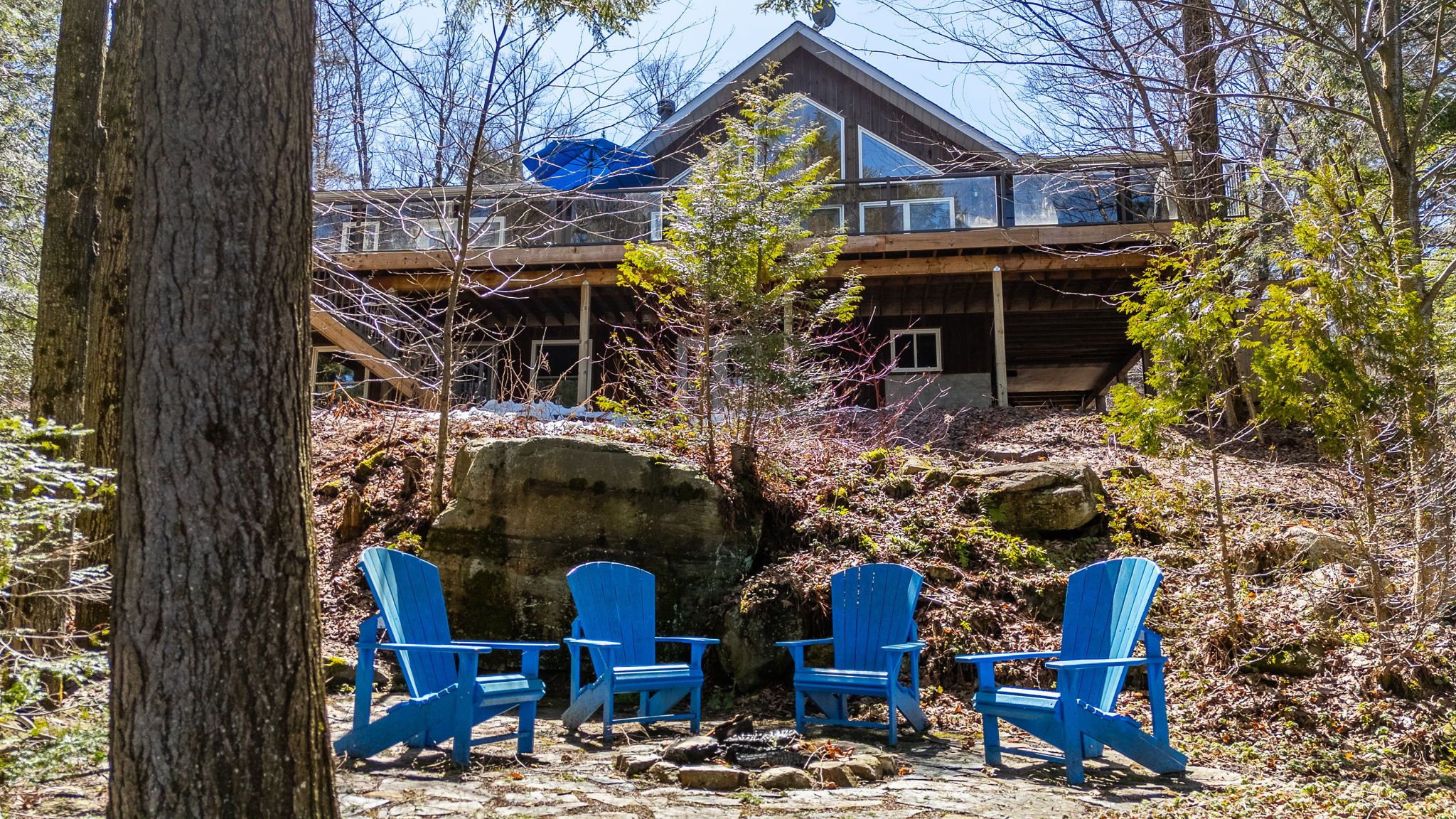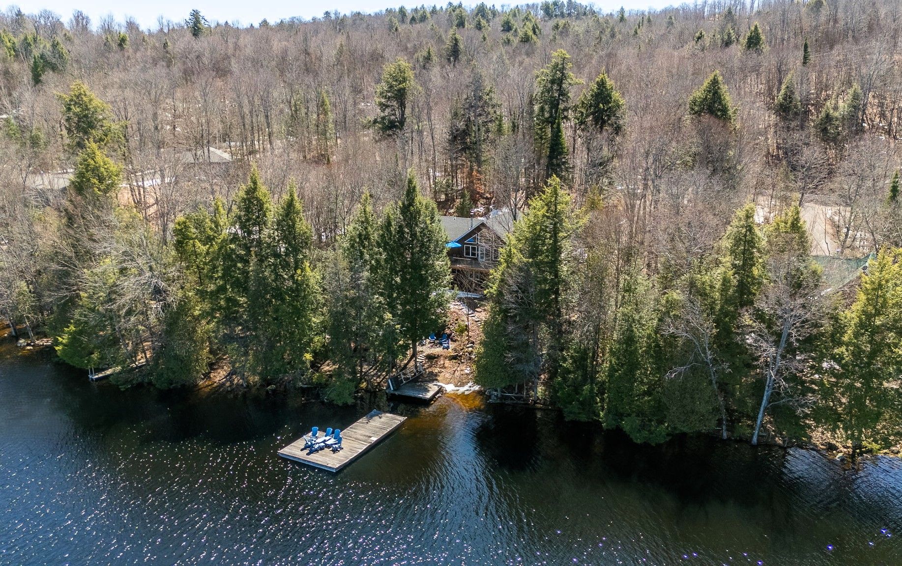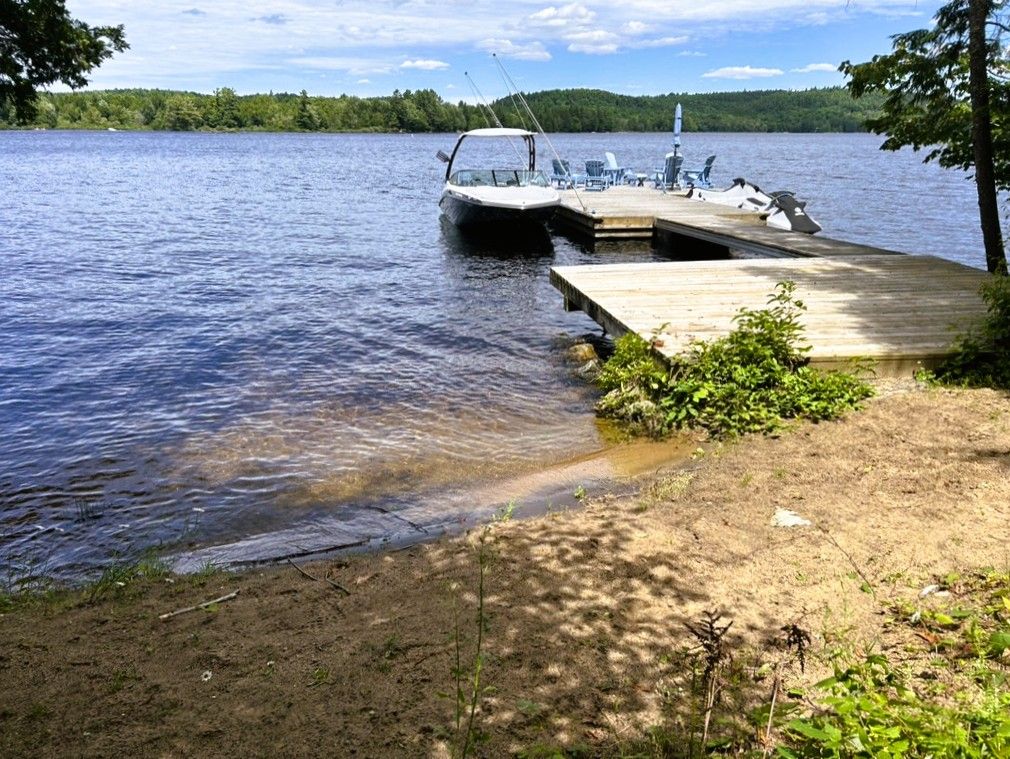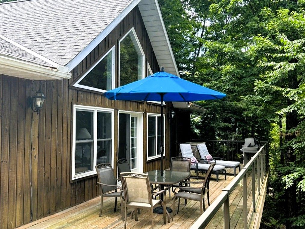 Exceptional redstone lake waterfront in one of the haliburton highlands' most sought-after executive enclaves. This premium offering features 150 feet of pristine shoreline and just under an acre of private, well-landscaped grounds, delivering a refined four-season lifestyle. Designed for effortless living and entertaining, the home offers 4 bedrooms and 3 bathrooms with a seamless open-concept layout oriented to expansive lake views. Vaulted ceilings and a wood-burning fireplace define the principal living space, while the gourmet kitchen with professional-grade appliances flows seamlessly into the dining and living areas. A bright lakeside sunroom provides a relaxed retreat, and the main floor primary suite offers a private escape with ensuite and walkout to the deck. Expansive decking extends the living space outdoors with multiple areas for dining and lounging. The fully finished lower level adds excellent additional space for entertaining family and guests. Landscaping is thoughtfully executed with granite steps, walkways, and patios that blend naturally with the setting. At the shoreline, a fire pit area creates an ideal lakeside gathering space, while the large dock captures full sun and provides access to redstone's deep, clean water for swimming and boating. A premium haliburton highlands waterfront property defined by privacy, quality, and a highly desirable lakefront setting.