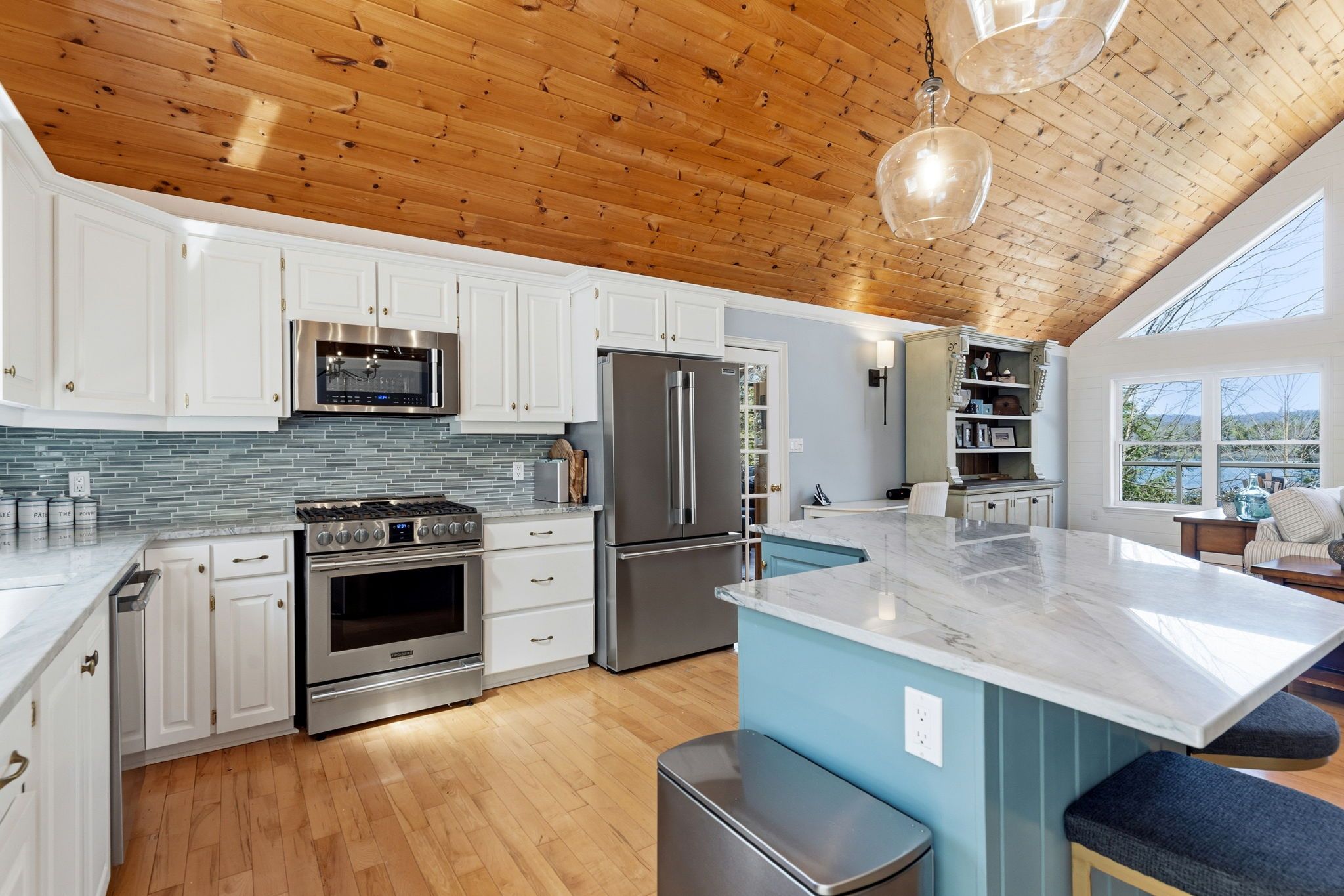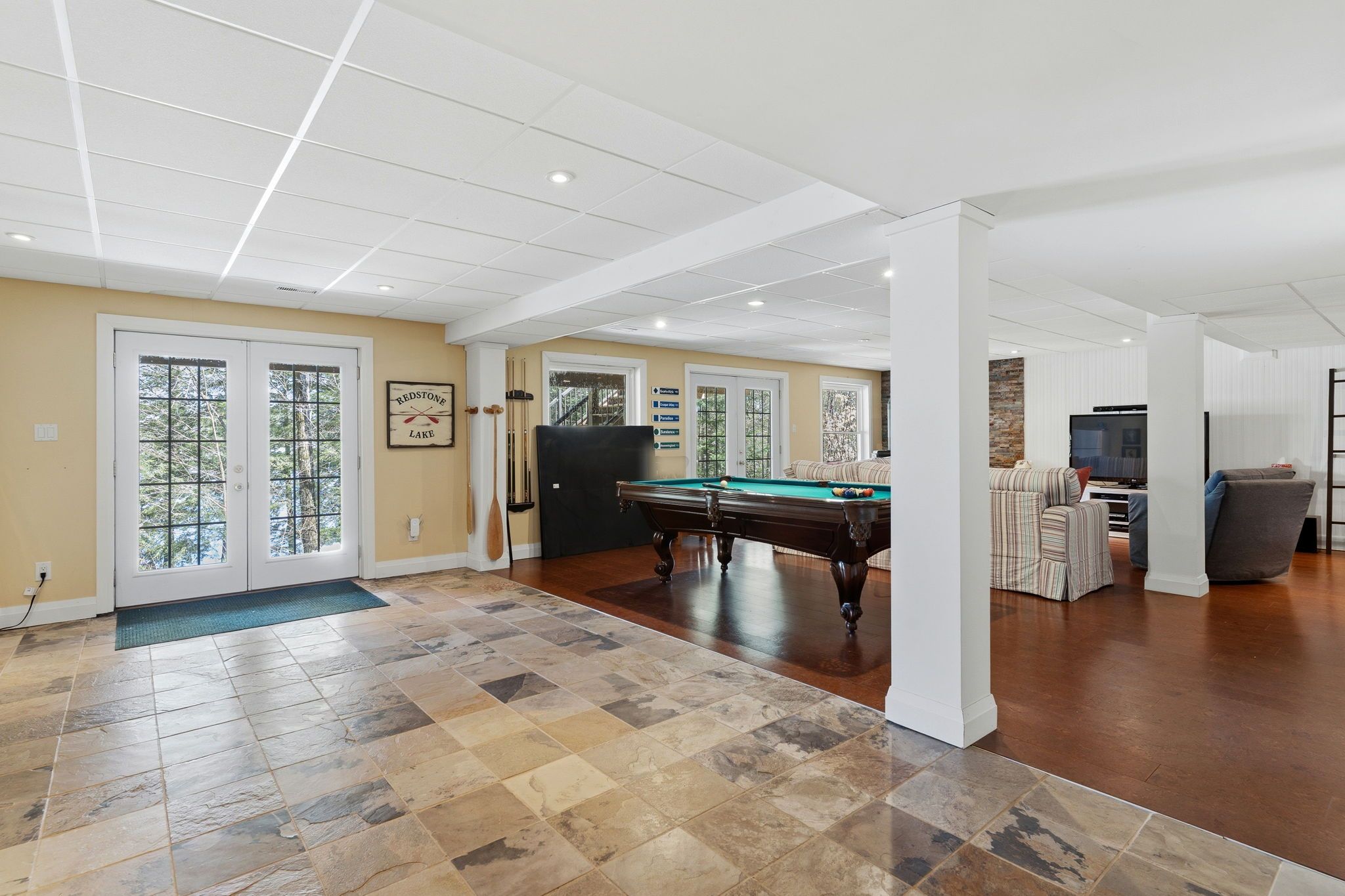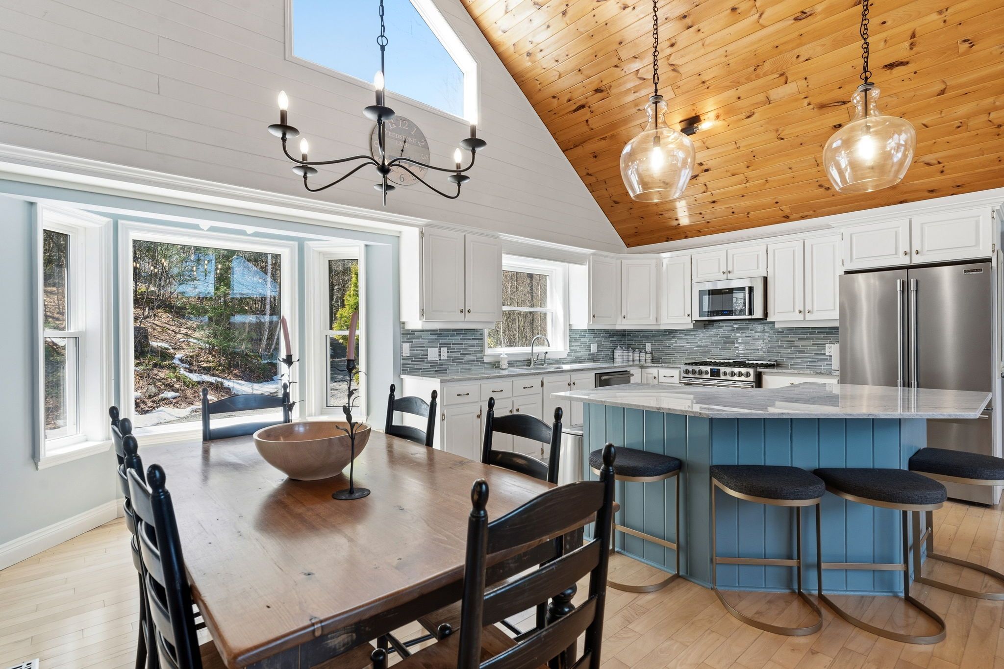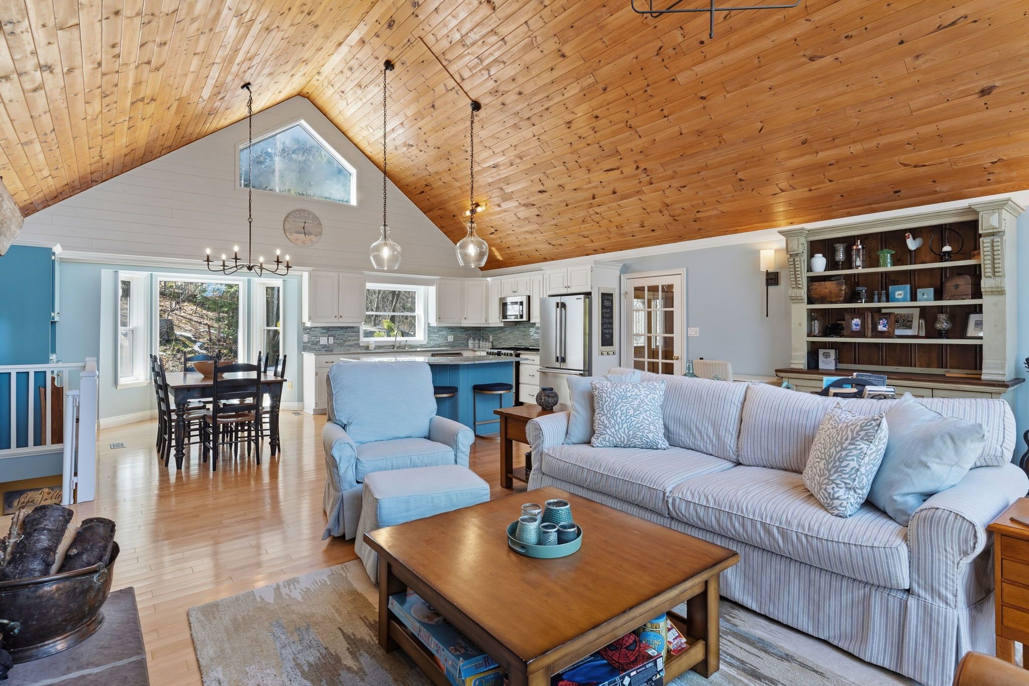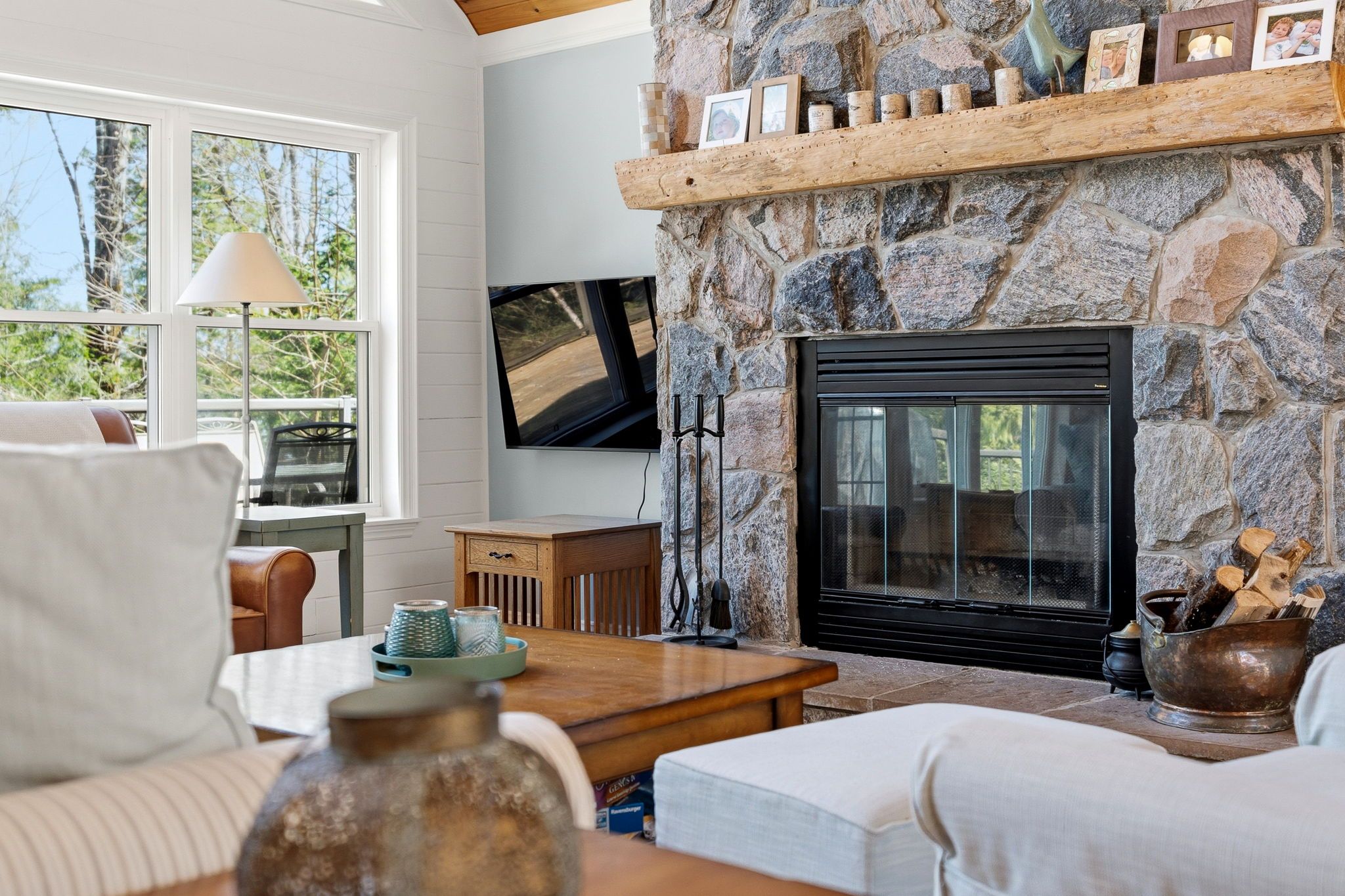 Exceptional redstone lake waterfront in one of the haliburton highlands' most sought-after executive enclaves. This premium offering features 150 feet of pristine shoreline and just under an acre of private, well-landscaped grounds, delivering a refined four-season lifestyle. Designed for effortless living and entertaining, the home offers 4 bedrooms and 3 bathrooms with a seamless open-concept layout oriented to expansive lake views. Vaulted ceilings and a wood-burning fireplace define the principal living space, while the gourmet kitchen with professional-grade appliances flows seamlessly into the dining and living areas. A bright lakeside sunroom provides a relaxed retreat, and the main floor primary suite offers a private escape with ensuite and walkout to the deck. Expansive decking extends the living space outdoors with multiple areas for dining and lounging. The fully finished lower level adds excellent additional space for entertaining family and guests. Landscaping is thoughtfully executed with granite steps, walkways, and patios that blend naturally with the setting. At the shoreline, a fire pit area creates an ideal lakeside gathering space, while the large dock captures full sun and provides access to redstone's deep, clean water for swimming and boating. A premium haliburton highlands waterfront property defined by privacy, quality, and a highly desirable lakefront setting.