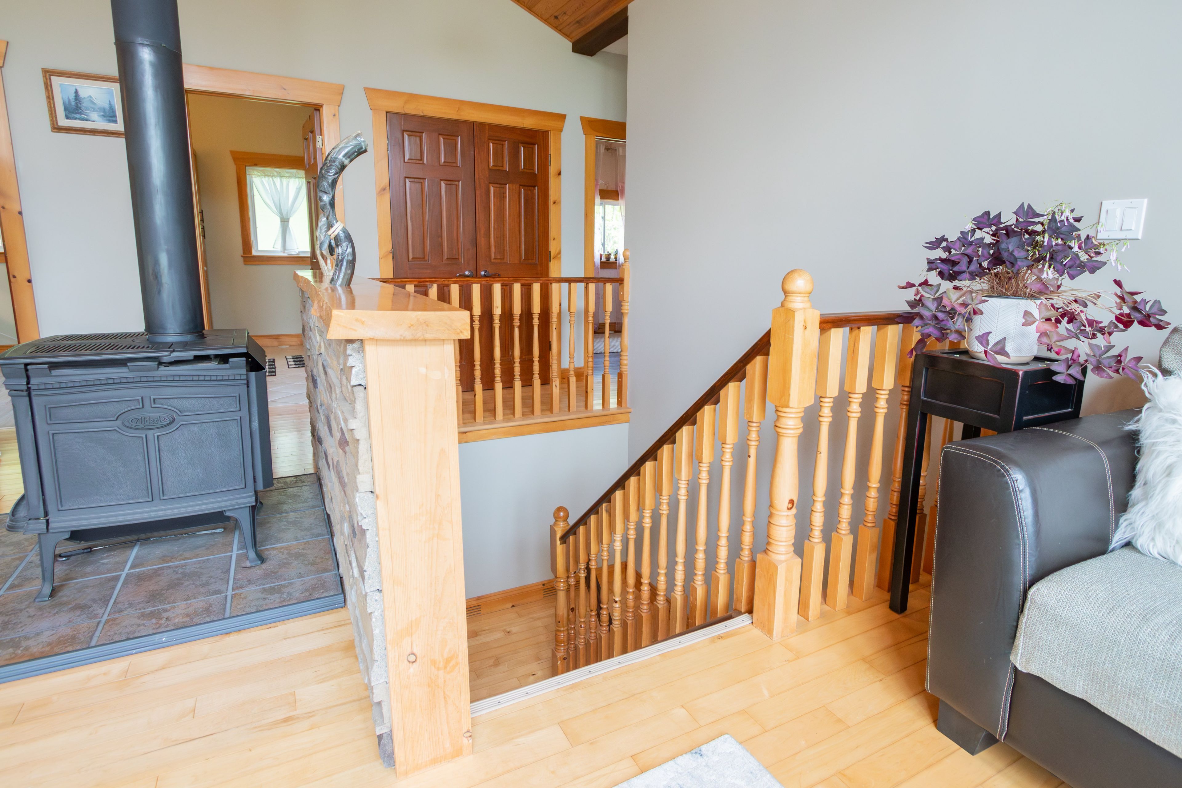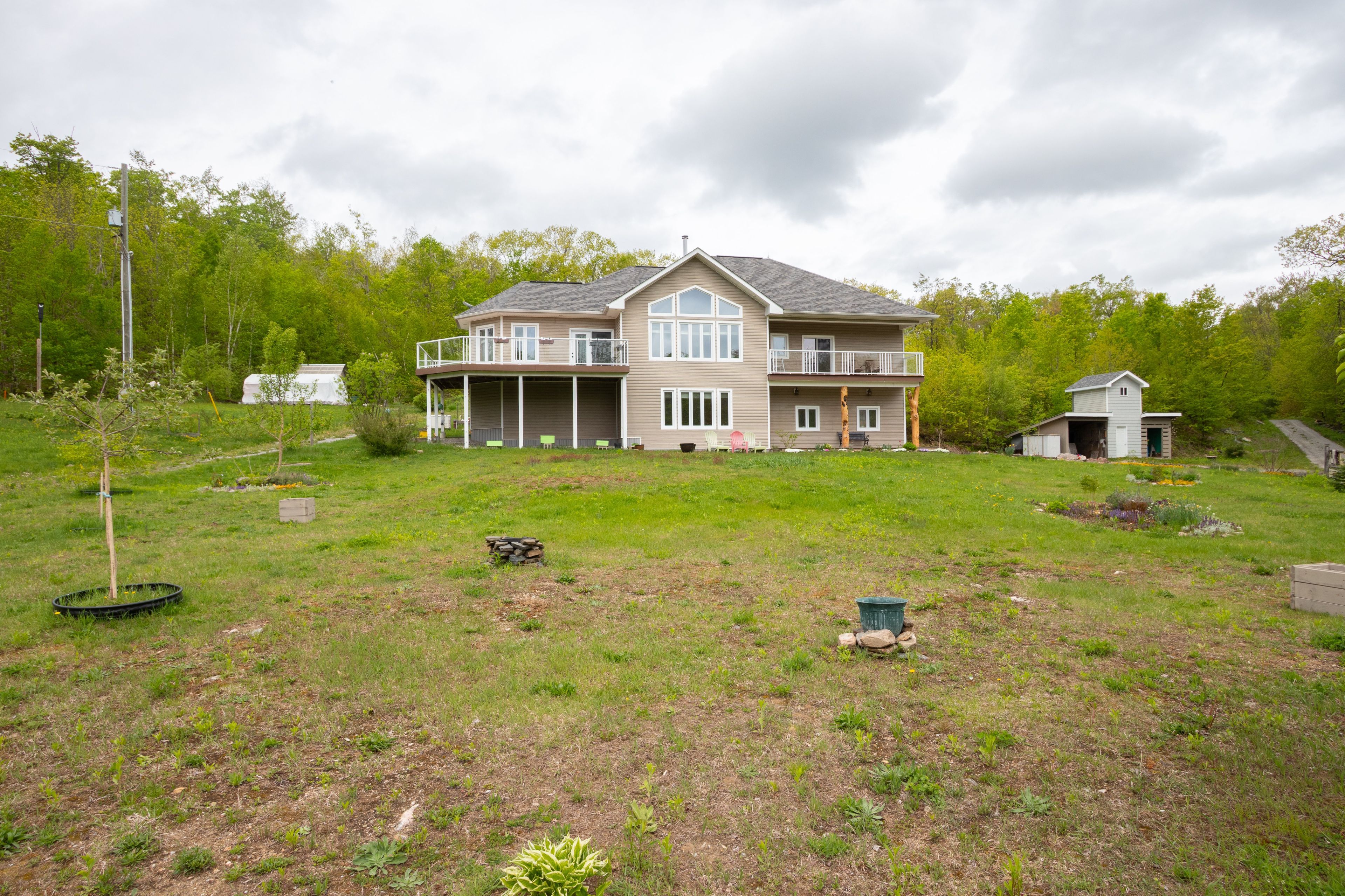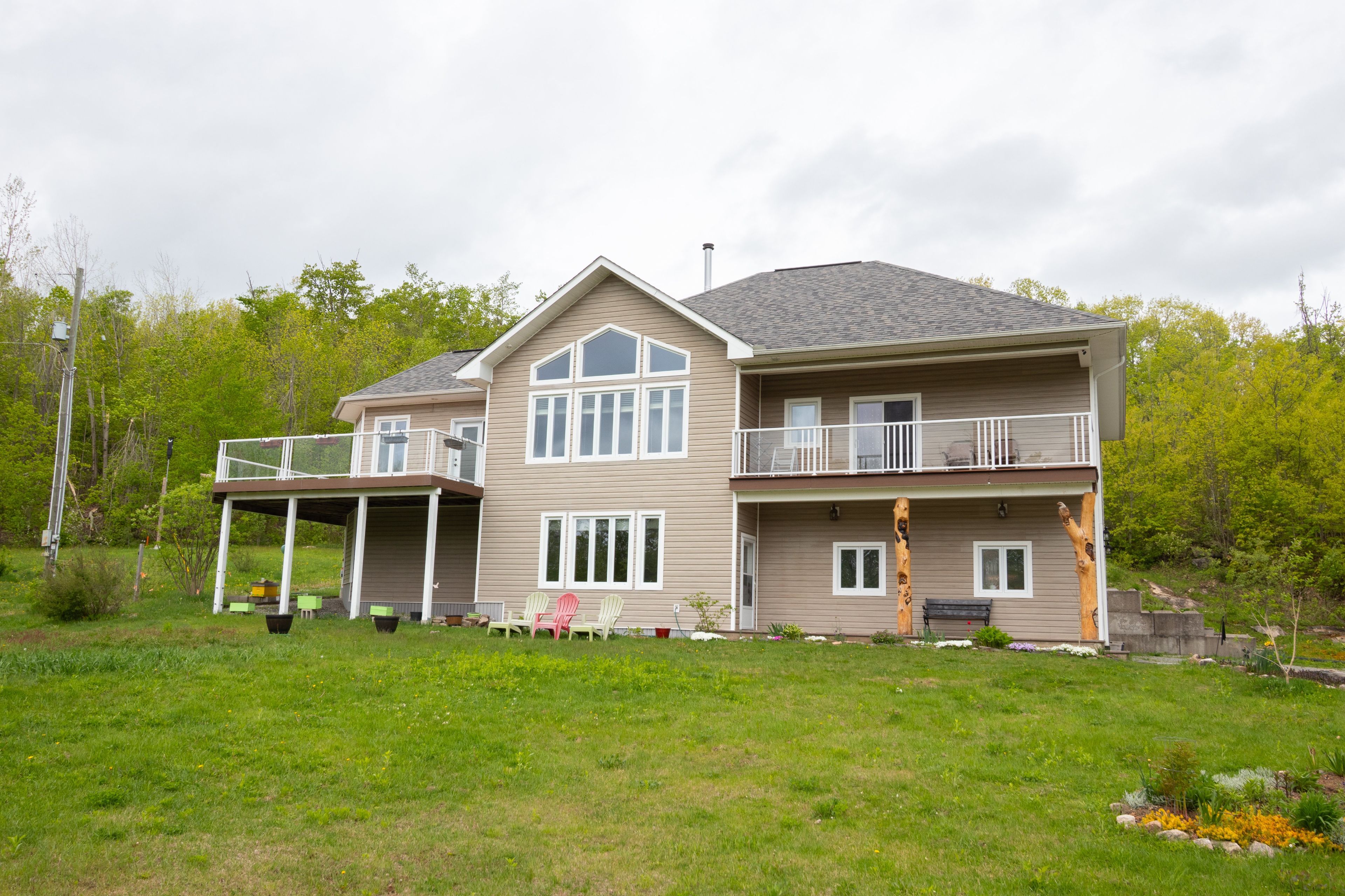 Welcome to your private waterfront retreat nestled on over 37 acres of lush forest on north otter lake-where tranquility meets convenience. This beautifully maintained raised bungalow features 3+1 spacious bedrooms, offering plenty of room for family, guests, or a home office. Enjoy stunning 12 ft cathedral ceilings in the dining area and 9 ft ceilings throughout. Large windows flood the home with natural light, enhancing the bright and airy feel of the spacious living areas. Natural hardwood floors extend across the main level, complementing the open-concept layout that is perfect for entertaining while still offering cozy spaces to relax and take in the serene surroundings. The spacious primary retreat features a 4-piece bath, walk-in closet, and a private balcony with breathtaking views. Step outside and immerse yourself in nature with trails throughout the property and two docks for enjoying the pristine lake-perfect for kayaking, fishing, or simply relaxing by the water. The property also features apple and pear trees, along with currant, raspberry, and blackberry bushes. A private pond in the front yard with a controlled outlet, fed by underground spring and groundwater, adds to the natural beauty and charm of this exceptional property. Additional features include a large 732 sq ft 3-car garage with heated floors, lower level slab in-floor heating, separate thermostat for garage floor heating, and ac installed in 2021. Whether you're looking for a year-round residence or a weekend getaway, this property offers space, privacy, and a true connection to nature. Conveniently located just a short drive to minden for all your necessities including schools, shopping, dining, and haliburton hospital. Don't miss this unique opportunity to own a piece of paradise!