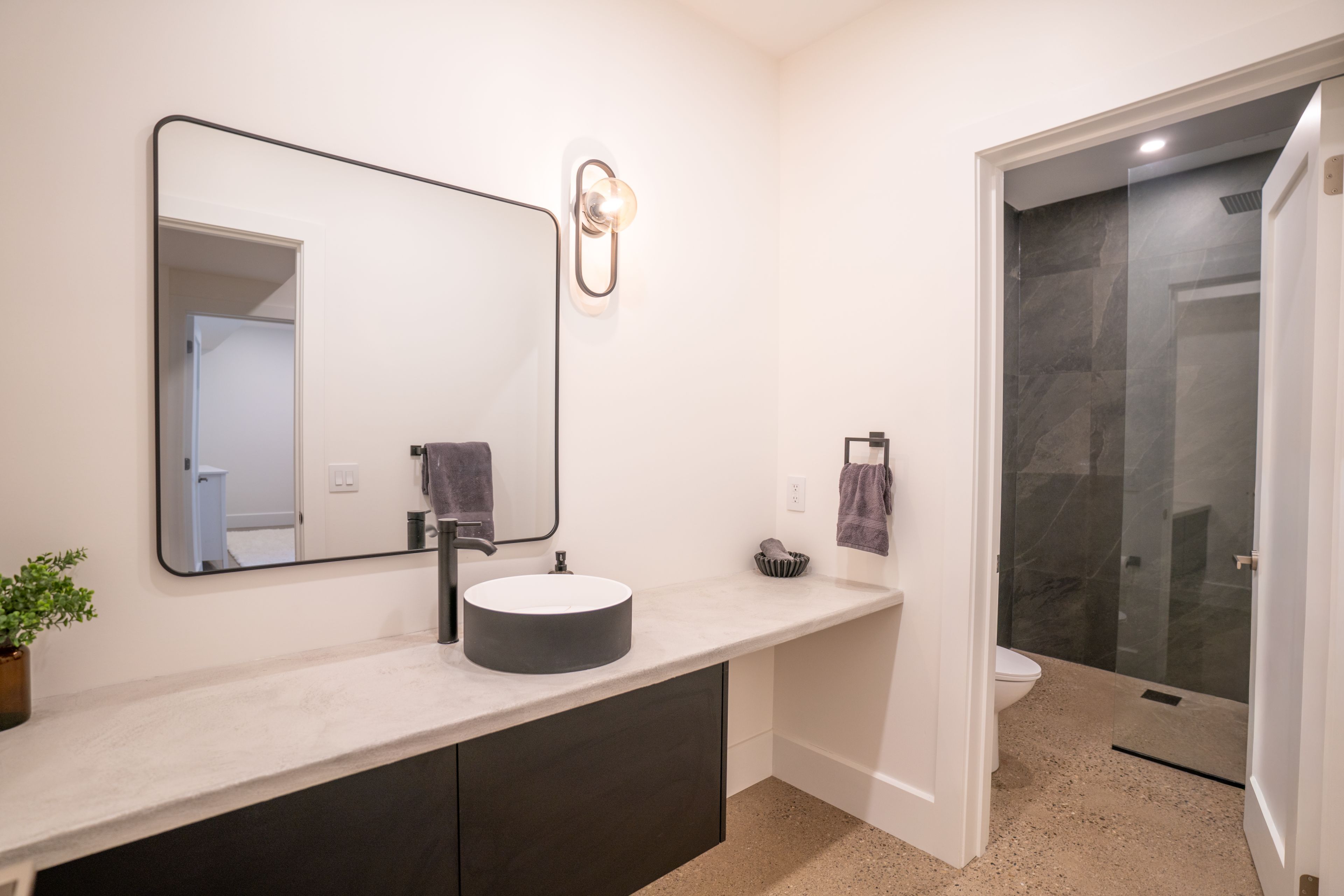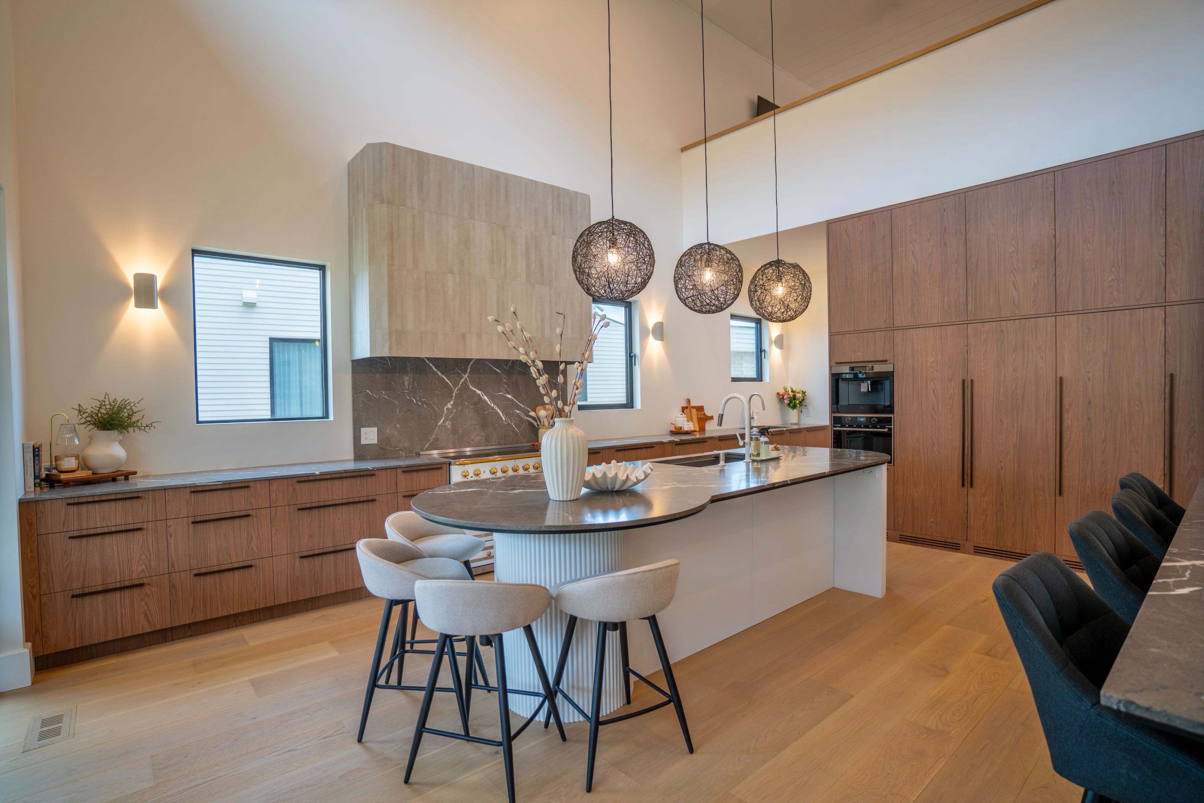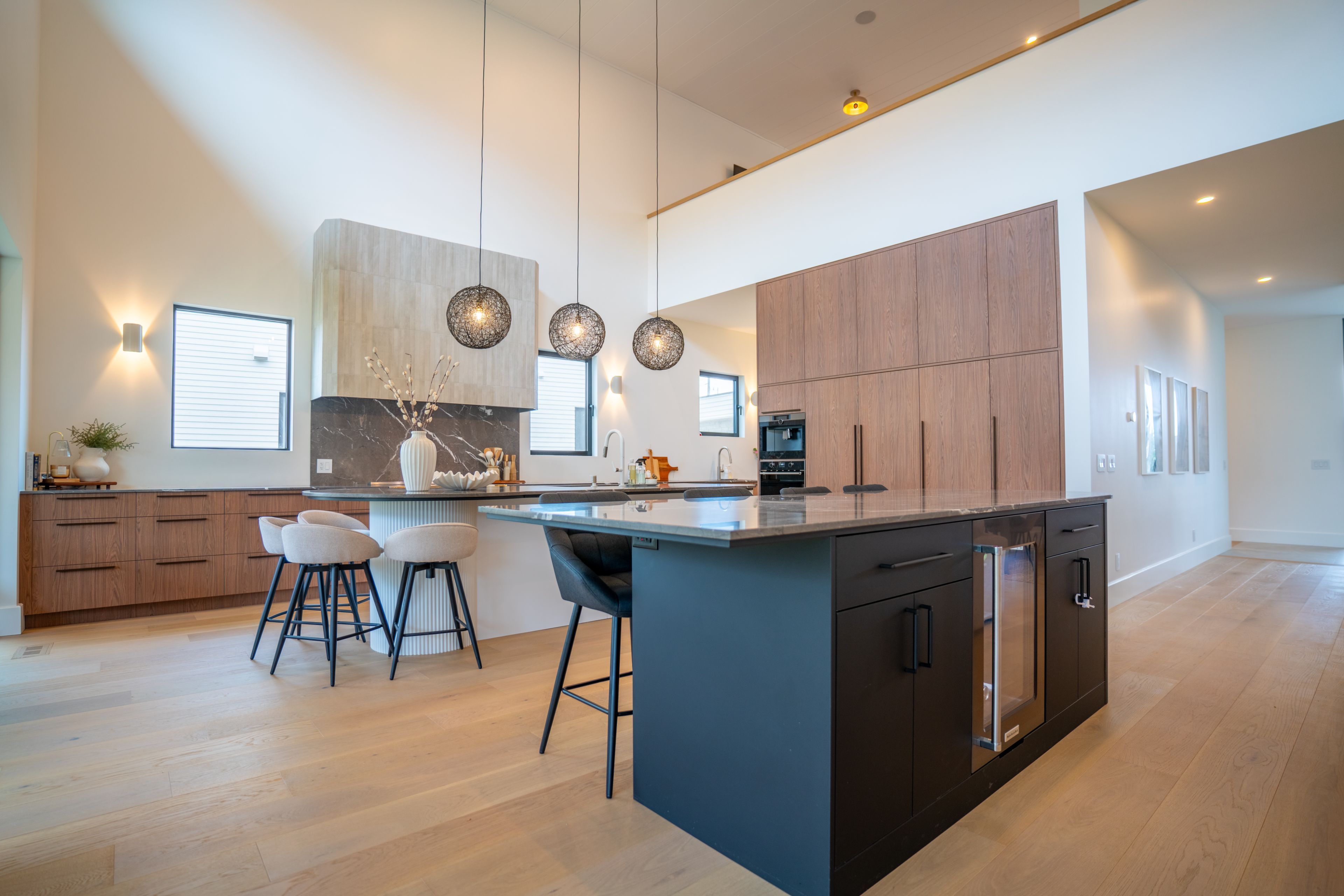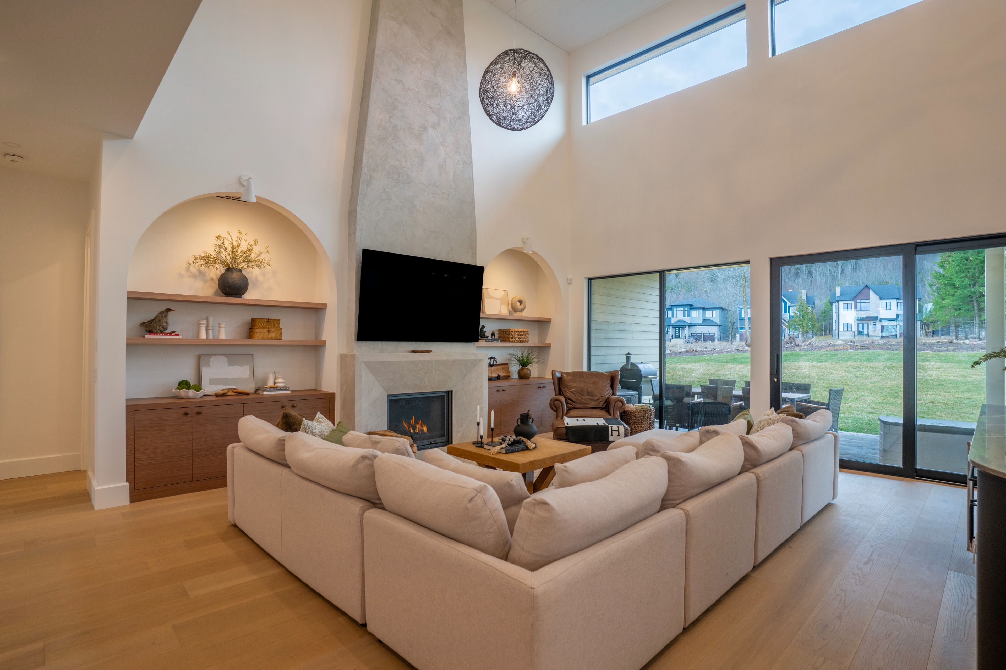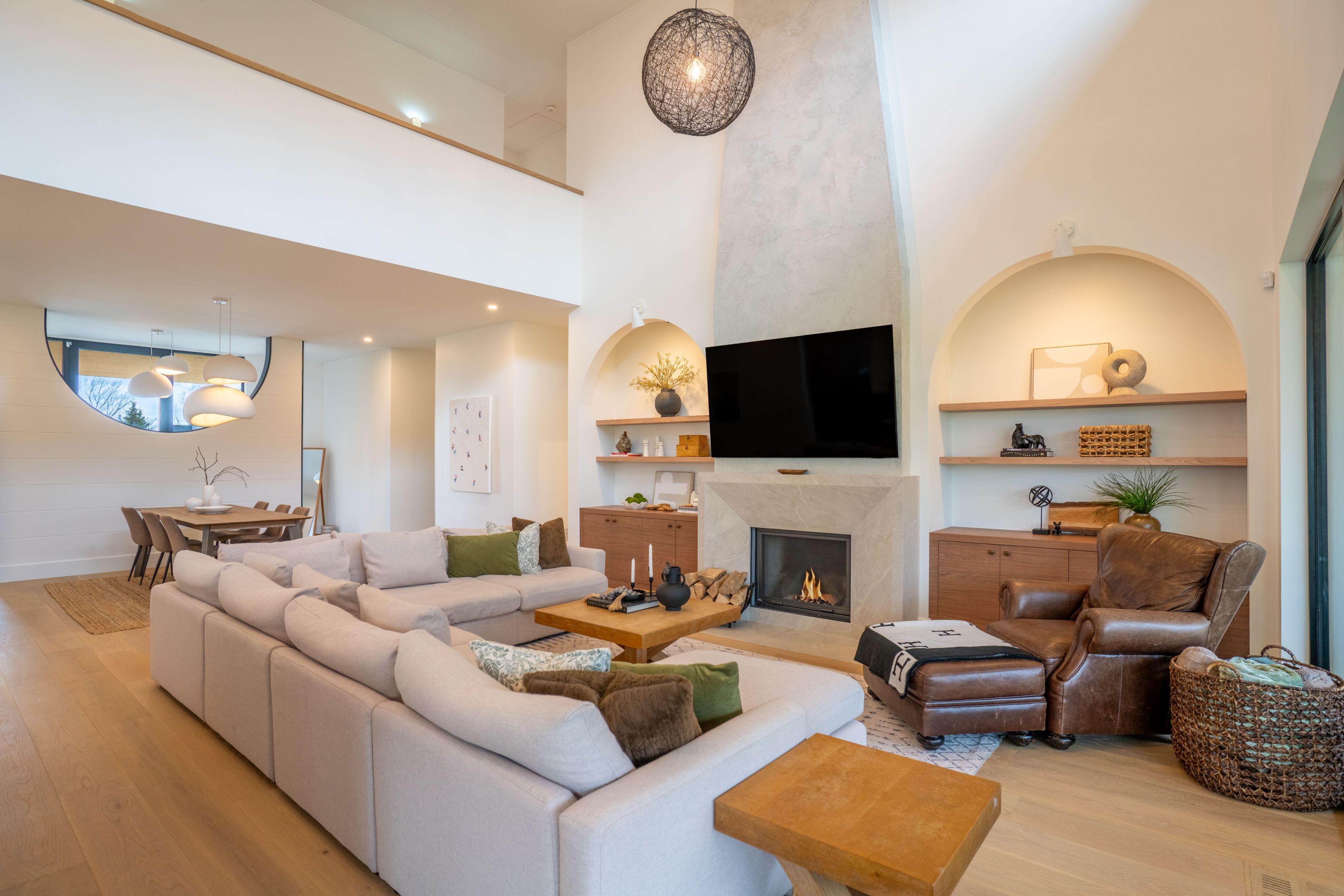 Completed in 2025, this custom-built home offers over 5,700 sq ft of thoughtfully designed living space with a focus on quality, comfort, and lifestyle. The main level features a standout kitchen with a double island, la cornue range, double liebherr fridge and freezer, two smeg dishwashers, a built-in aeg coffee maker, and a separate butler's pantry for added prep and storage. A main floor primary bedroom adds convenience and flexibility. Enjoy vaulted ceilings and a wood-burning fireplace that anchors the living space, adding warmth and character. The home includes 5 bedrooms and 5 bathrooms, along with a fully finished lower level featuring heated polished concrete floors, a dedicated gym area, sauna, and an impressive 22' x 16' golf simulator room complete with screen, mat, and turf. A fully equipped bar with a commercial-grade bodega fridge and dishwasher completes the space. Taxes have not yet been assessed