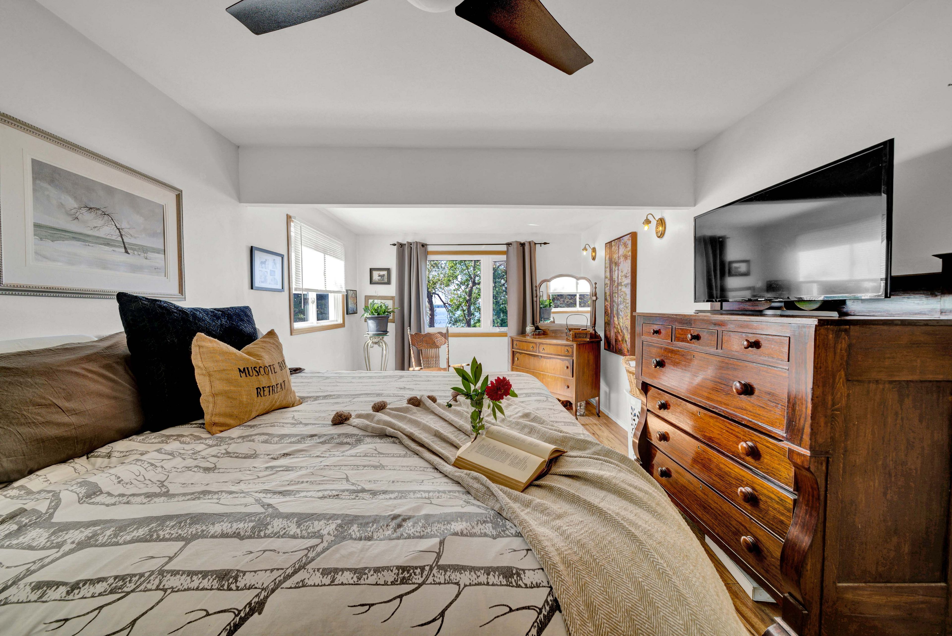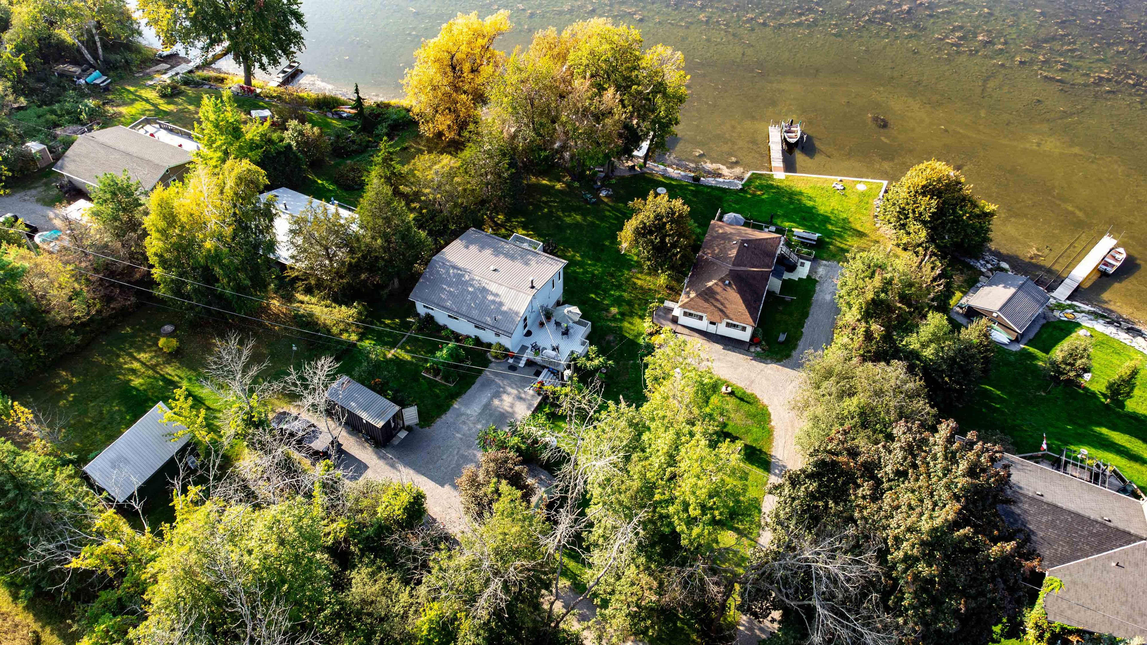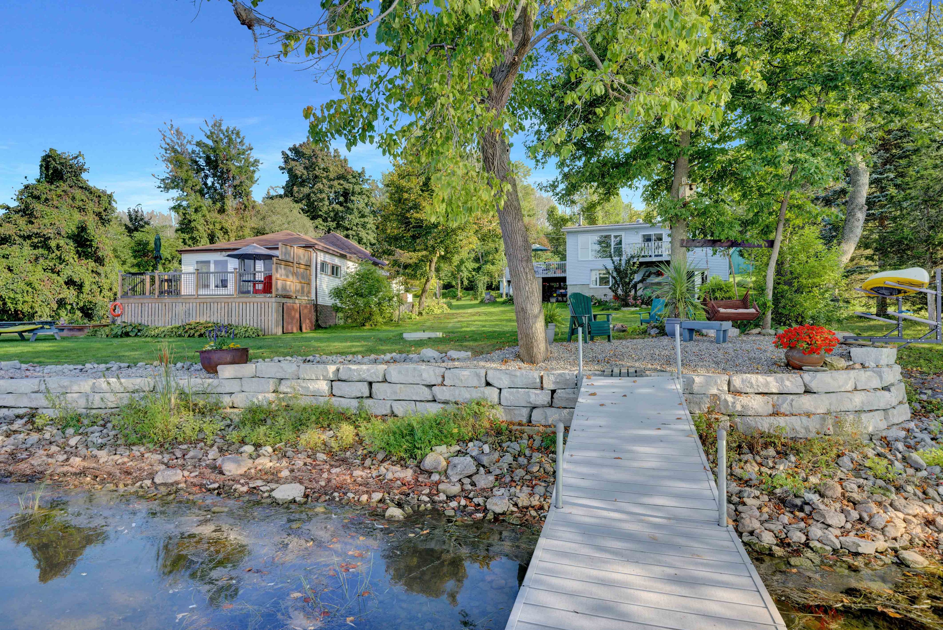 Experience waterfront living at its finest! At the end of a very well maintained, private road, this wonderful, four-season property fronts directly on muscote bay. An area renowned for its wildlife, fishing and maybe one of the county's best kept secrets. With three bedrooms and two bathrooms, this home offers comfort and a classic style. The upper floor is anchored by a wood-burning fireplace, creating a warm ambiance, while large picture windows provide exceptional light and breathtaking views of the water. Perfect for bird watching or simply relaxing and enjoying the serene surroundings. A beautiful circular staircase leads you down to the fully finished lower level, boasting high ceilings and expansive bright windows that flood the space with natural light. This versatile area is ideal for additional living space, a creative studio, or a productive workspace. The propane fireplace ensures that you'll be toasty warm even on the chilliest of days. Walk right out onto your patio with stunning views of the water. Immerse yourself in the tranquility of lakeside living while enjoying all the amenities this exceptional property has to offer. Swim off the dock. Breath in the calm. Don't miss your chance to make this idyllic waterfront retreat your own, and you too can call the county home!