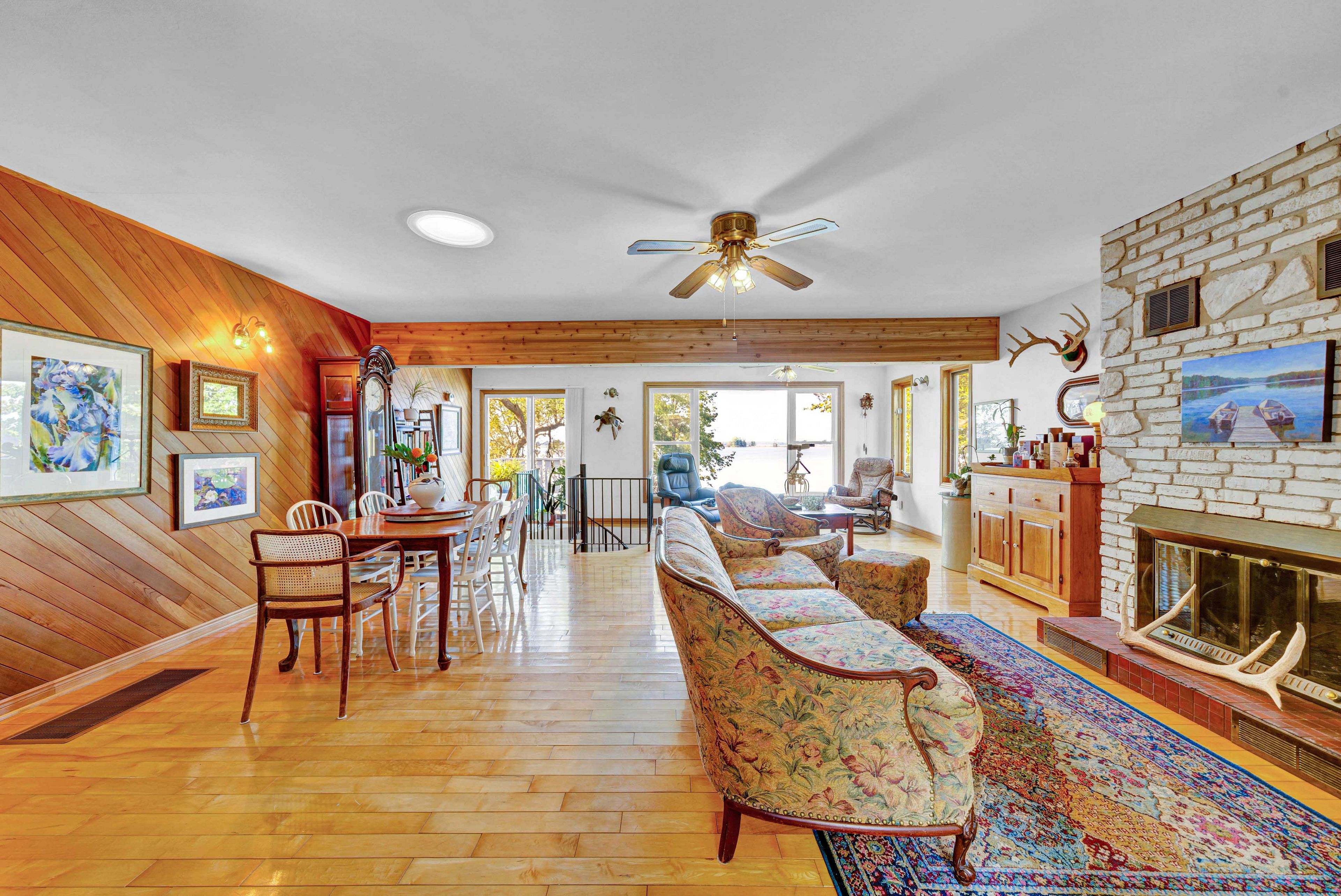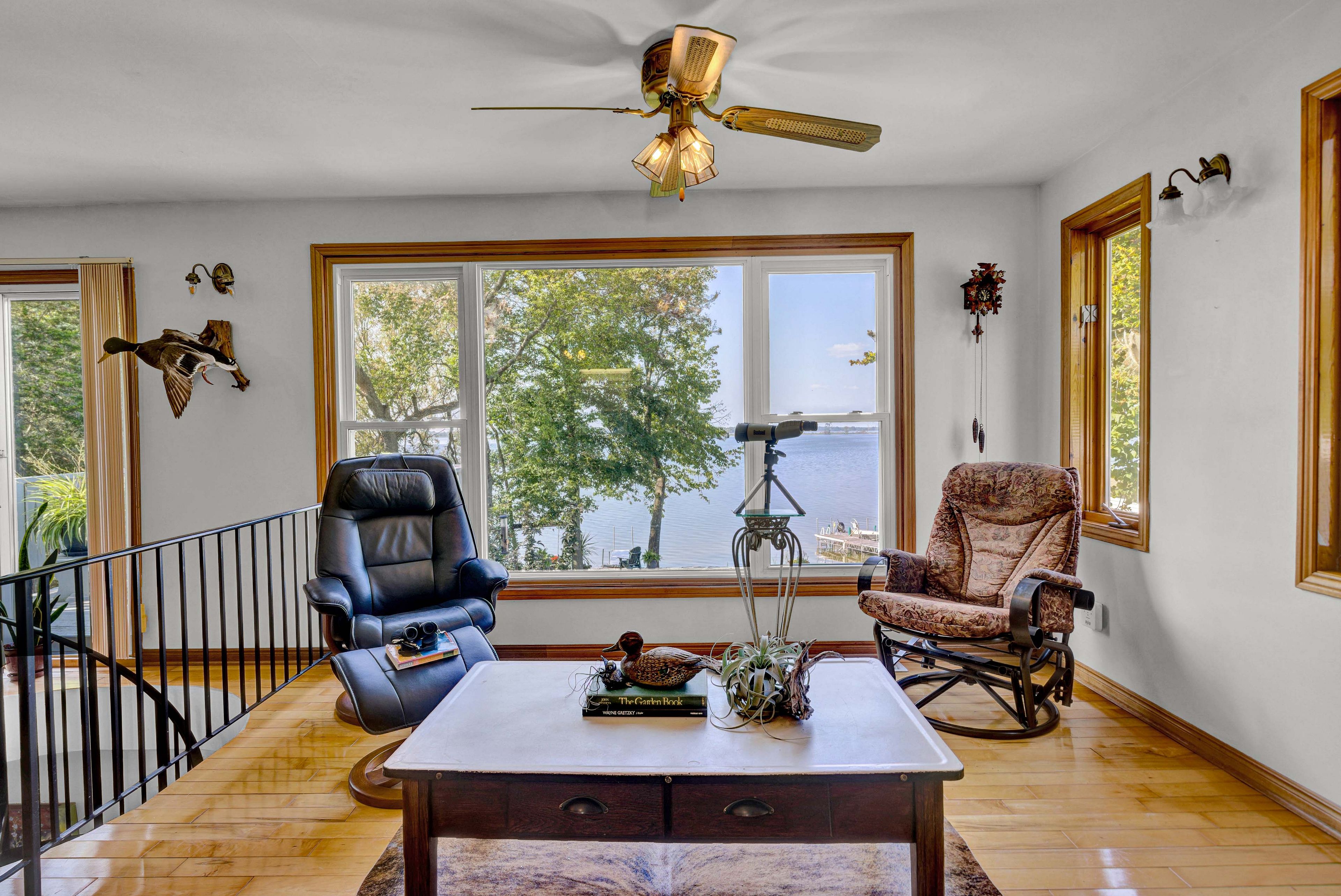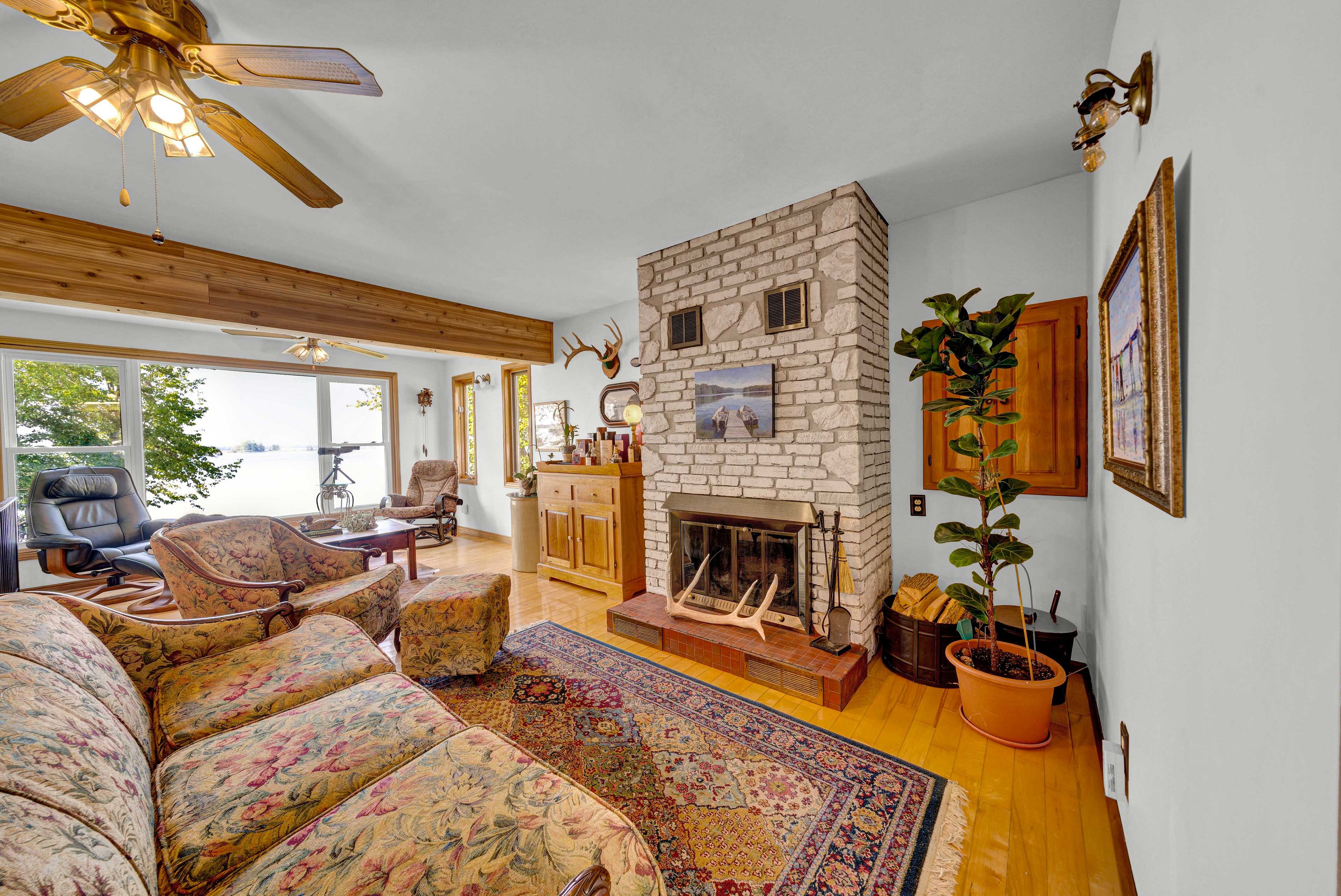 Experience waterfront living at its finest! At the end of a very well maintained, private road, this wonderful, four-season property fronts directly on muscote bay. An area renowned for its wildlife, fishing and maybe one of the county's best kept secrets. With three bedrooms and two bathrooms, this home offers comfort and a classic style. The upper floor is anchored by a wood-burning fireplace, creating a warm ambiance, while large picture windows provide exceptional light and breathtaking views of the water. Perfect for bird watching or simply relaxing and enjoying the serene surroundings. A beautiful circular staircase leads you down to the fully finished lower level, boasting high ceilings and expansive bright windows that flood the space with natural light. This versatile area is ideal for additional living space, a creative studio, or a productive workspace. The propane fireplace ensures that you'll be toasty warm even on the chilliest of days. Walk right out onto your patio with stunning views of the water. Immerse yourself in the tranquility of lakeside living while enjoying all the amenities this exceptional property has to offer. Swim off the dock. Breath in the calm. Don't miss your chance to make this idyllic waterfront retreat your own, and you too can call the county home!