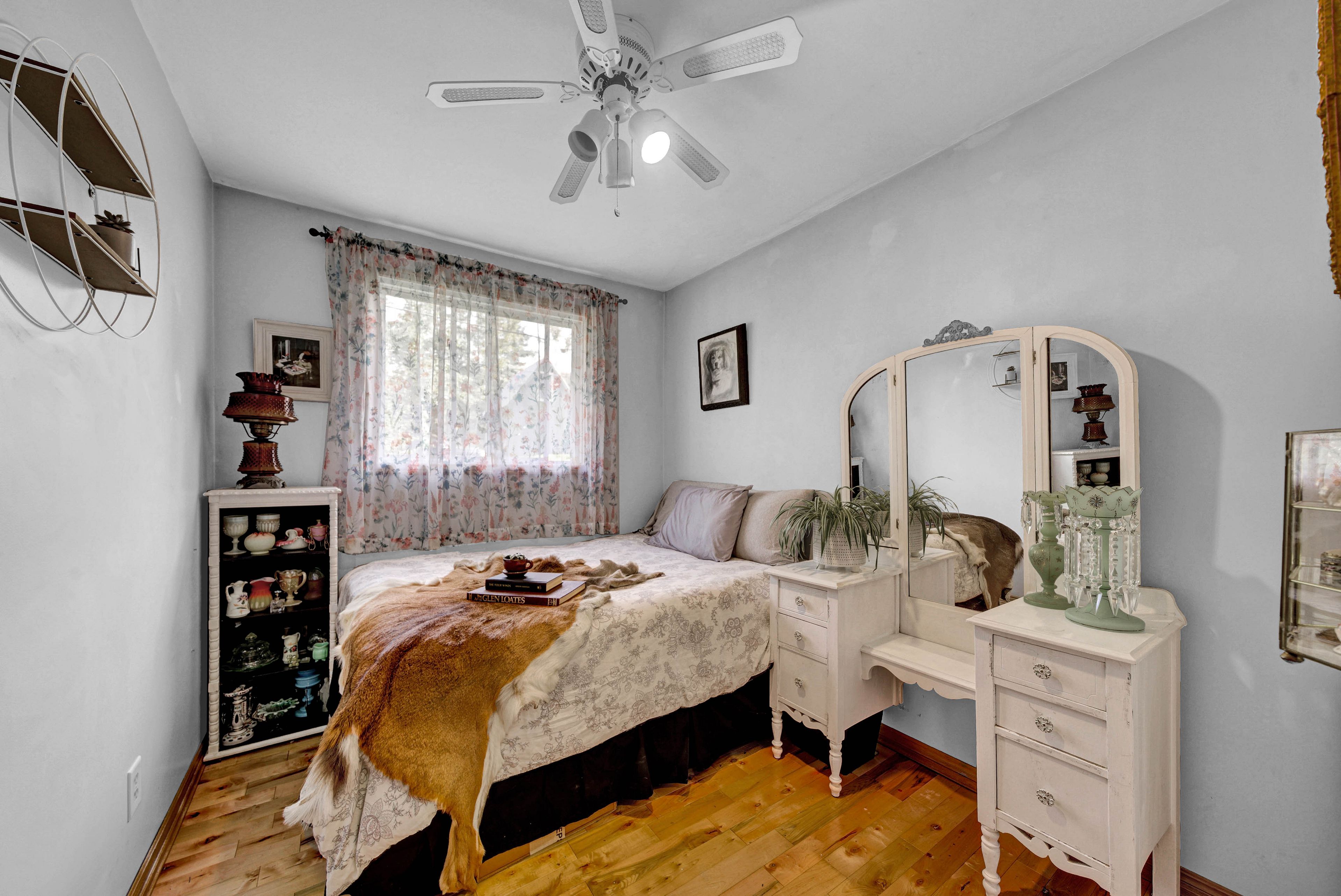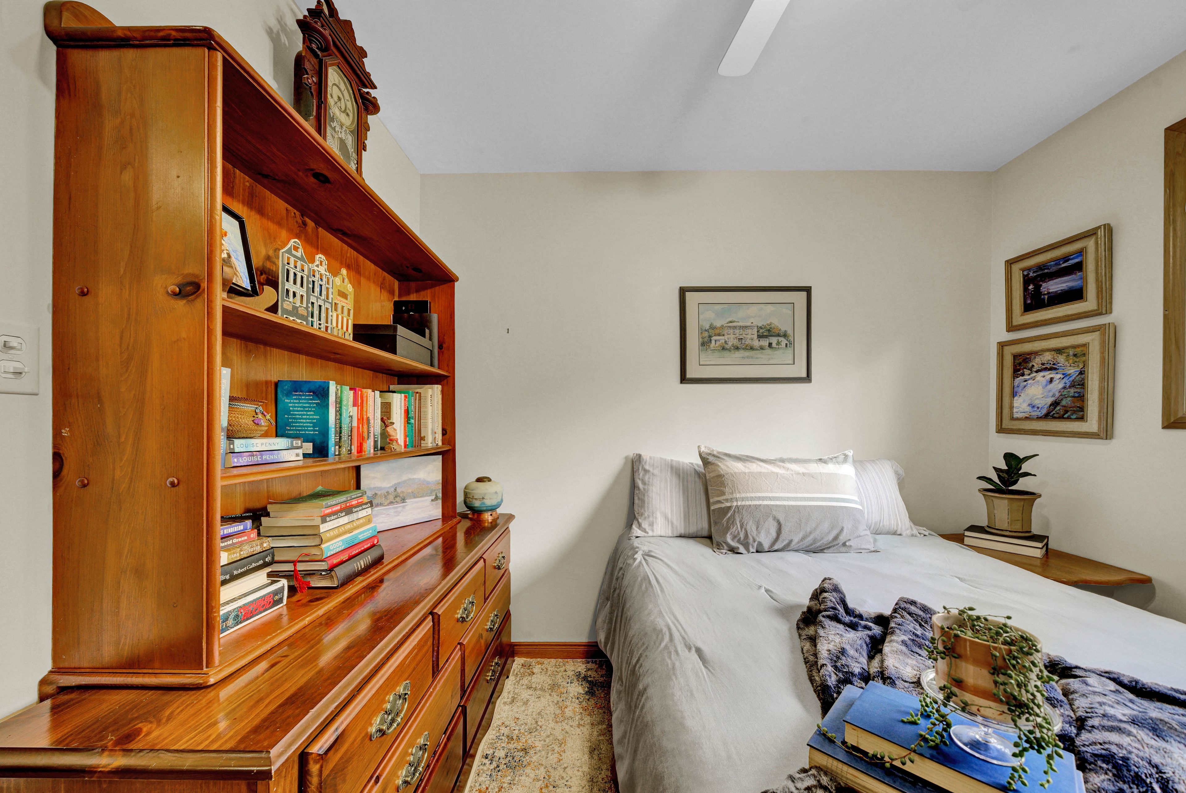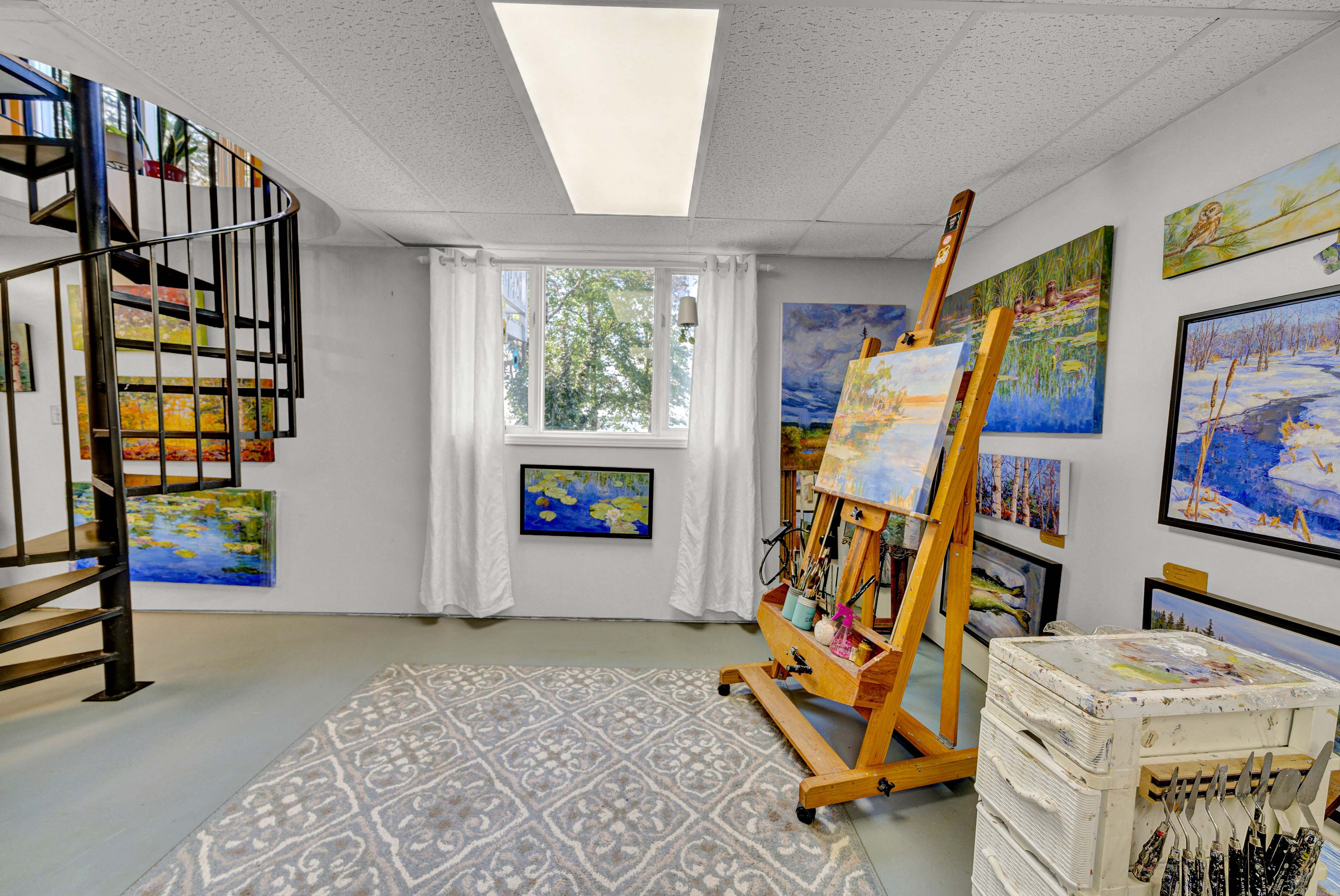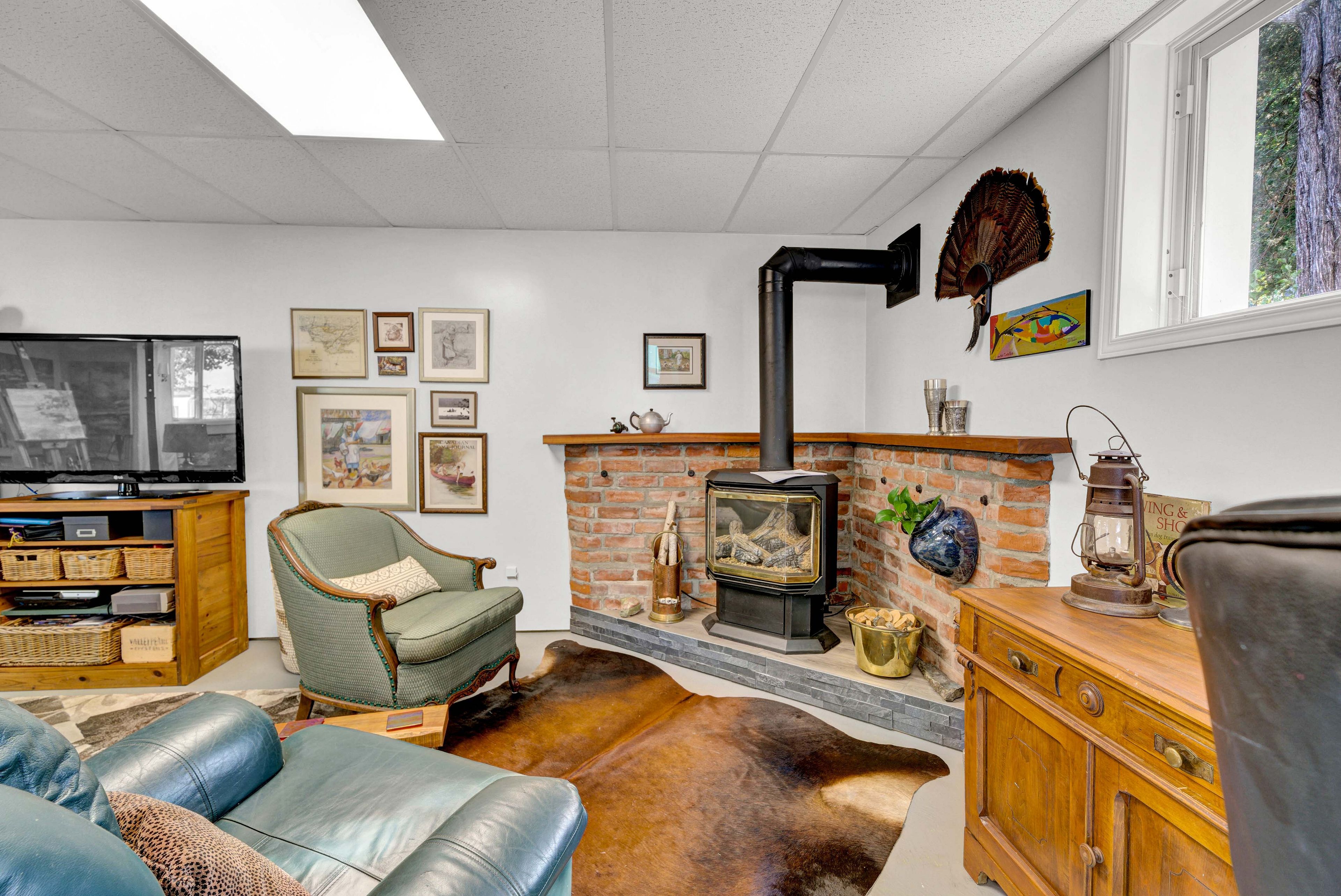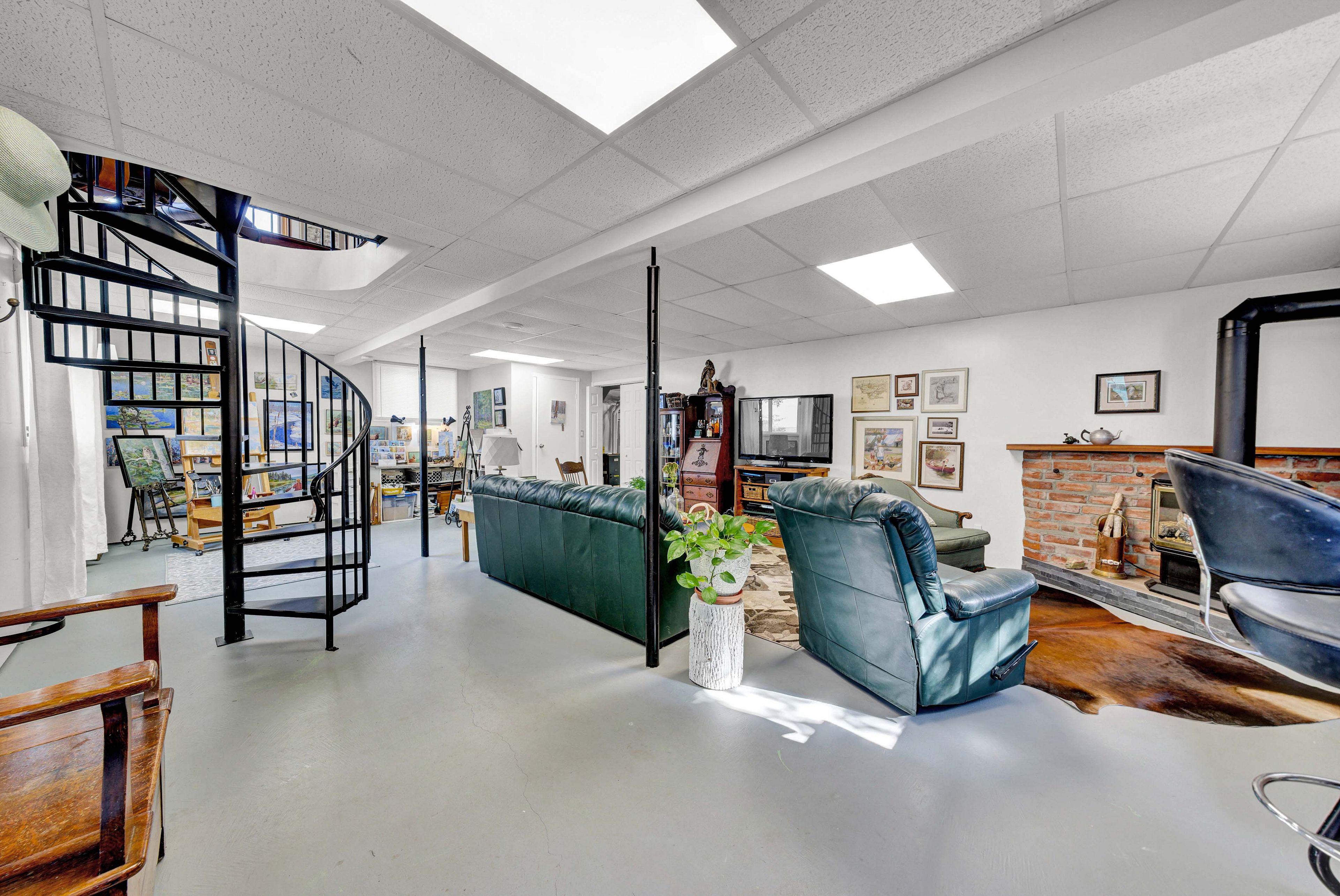 • Upper floor features a warm wood-burning fireplace and large windows.