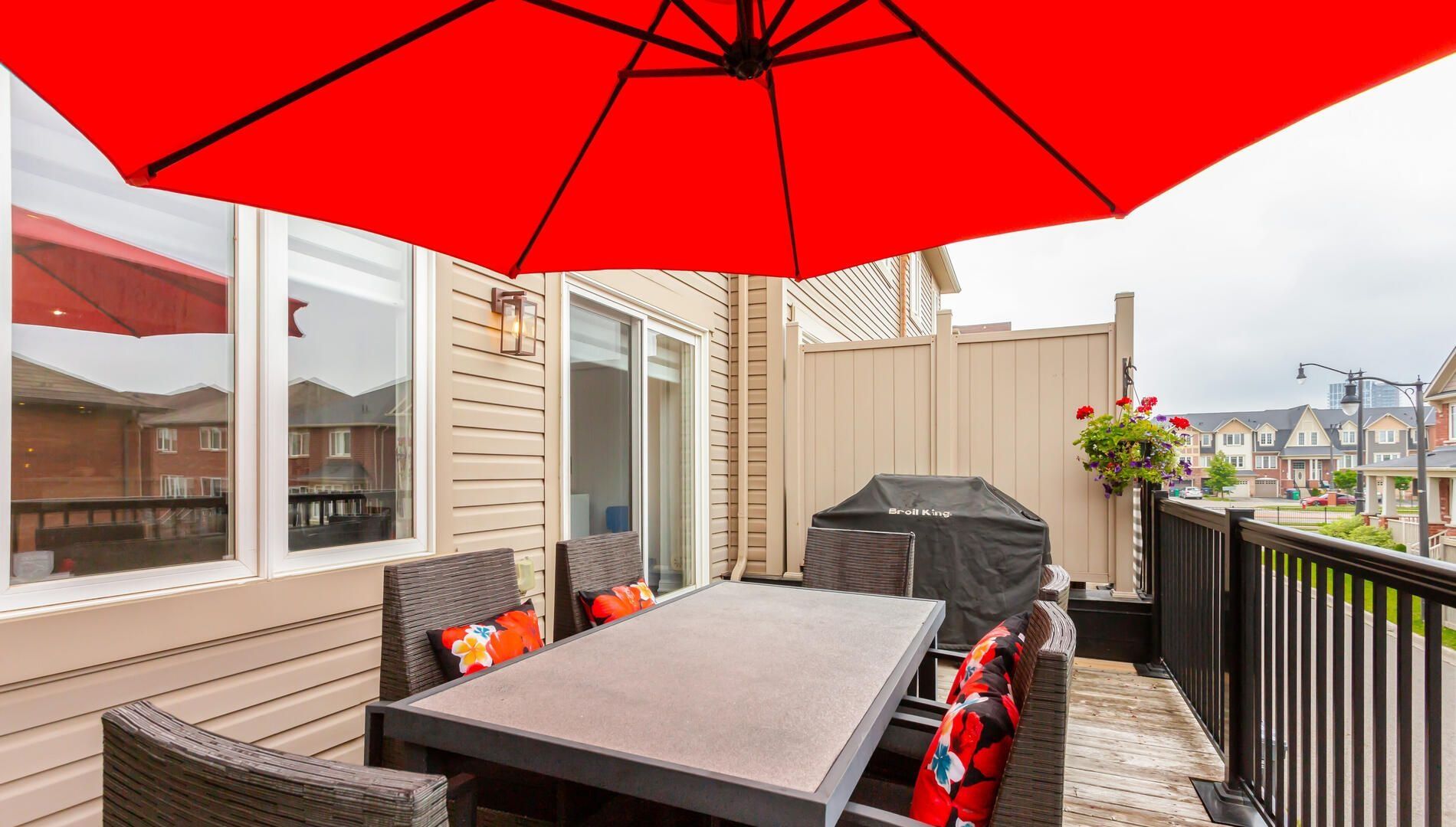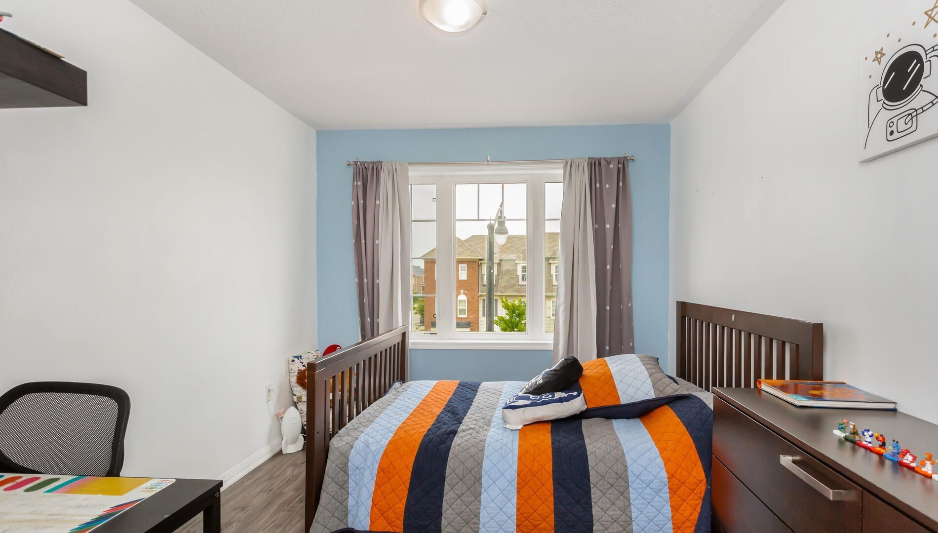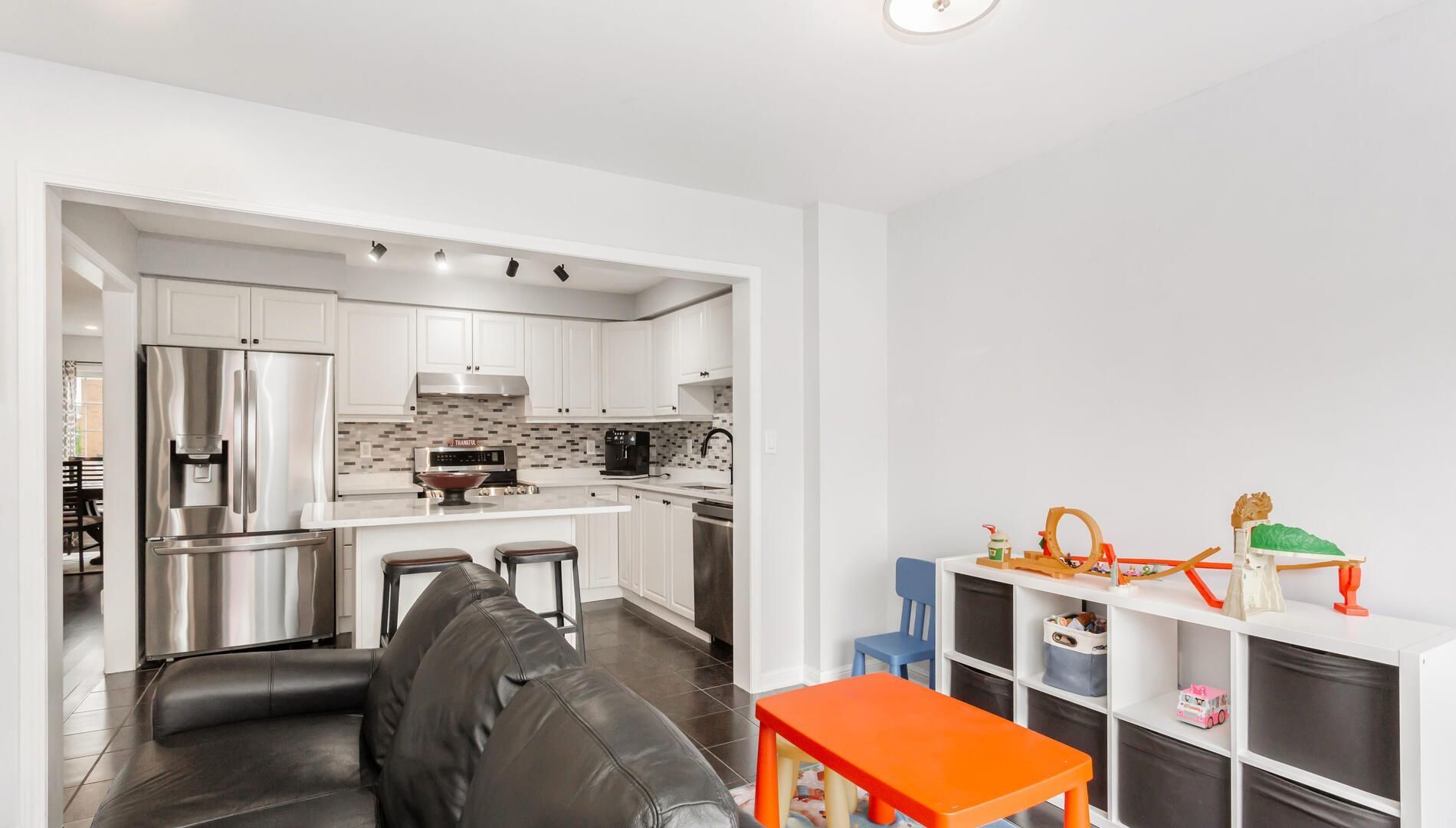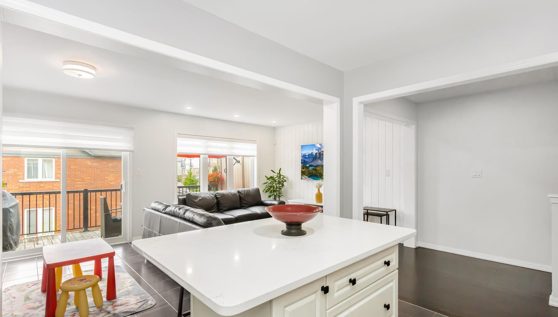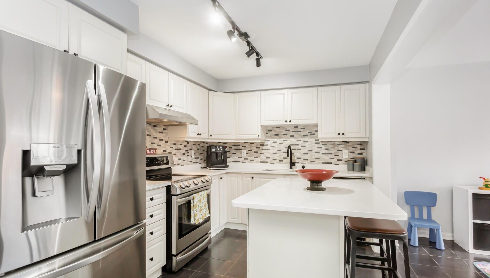 Stunning freehold urban townhouse, meticulously maintained and ideally located near public transit, the go station, and places of worship. The main level features a spacious bedroom with a full bathroom, perfect for a home office, guest suite, or additional living space. The heart of the home is the expansive, renovated kitchen, showcasing quartz countertops and a stylish backsplash that adds a modern, elegant touch. The kitchen flows seamlessly into a bright breakfast/dining area with a walk-out to a cedar deck, perfect for outdoor enjoyment. Well maintained with a true move-in ready feel, the home offers tons of storage throughout for everyday practicality. The primary bedroom serves as a peaceful retreat with a large closet providing ample space. The second and third bedrooms on the upper level are well-sized, while the main floor fourth bedroom adds flexibility for a home office, guest room, or additional living space. The updated walk-in mudroom features a built-in bench and added storage, and the conveniently located laundry room includes brand new appliances. With approximately 2,000 sq ft of living space, this home offers exceptional versatility and comfort for families or those seeking extra room. A must see with many updates!