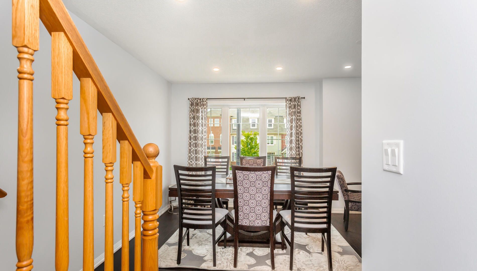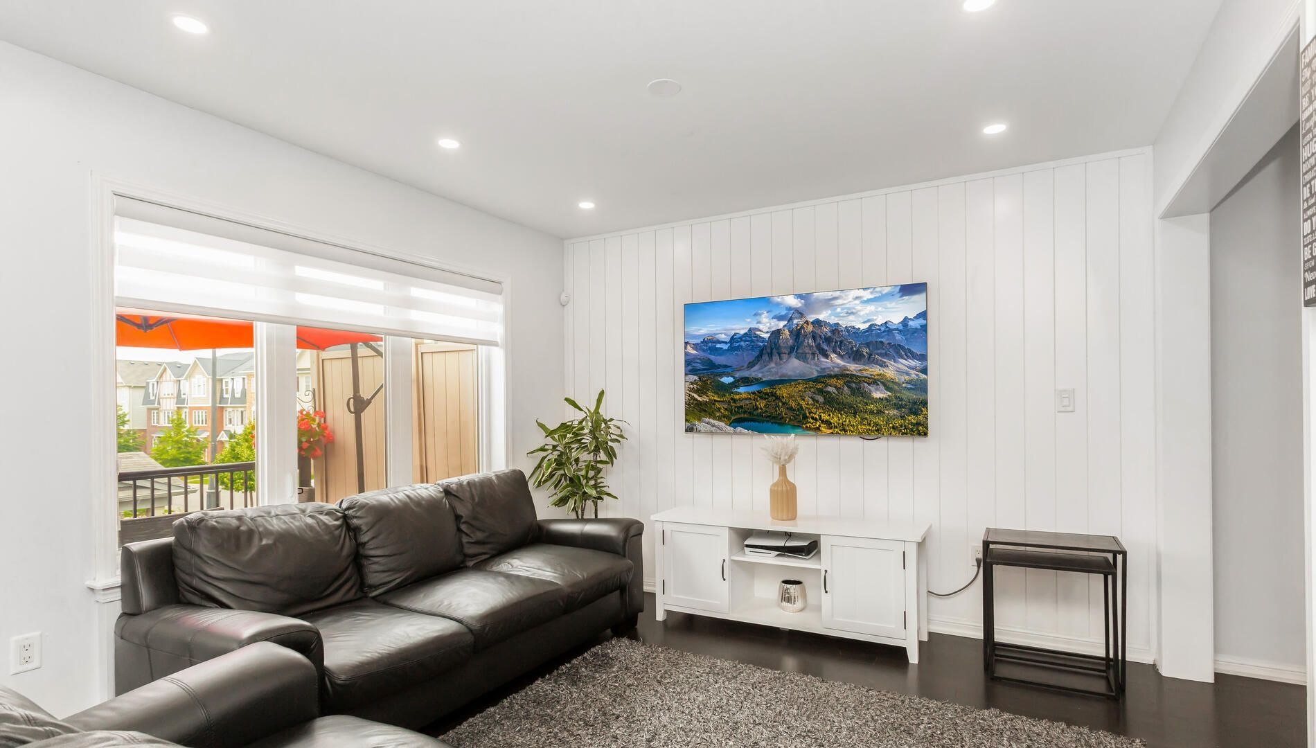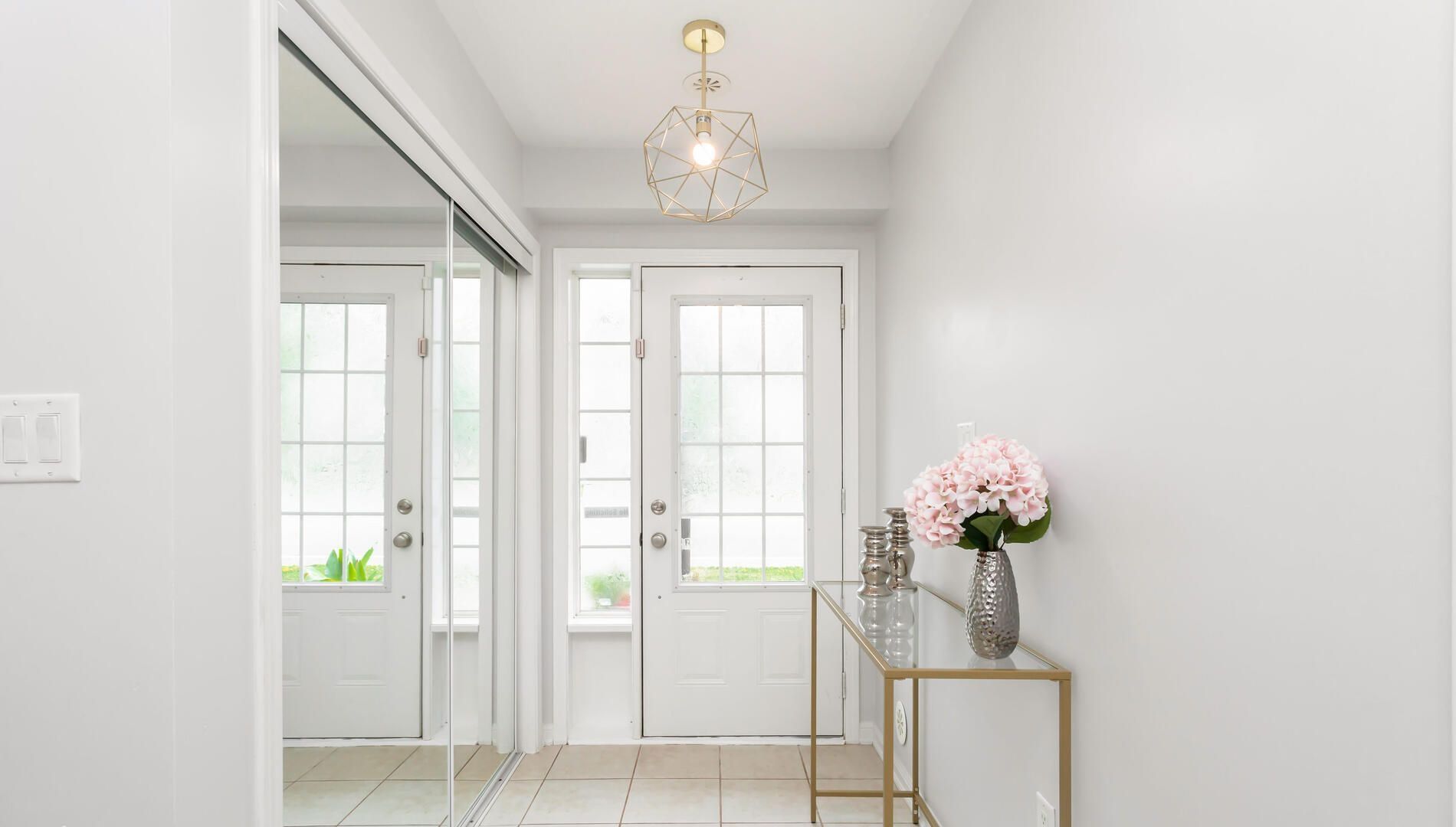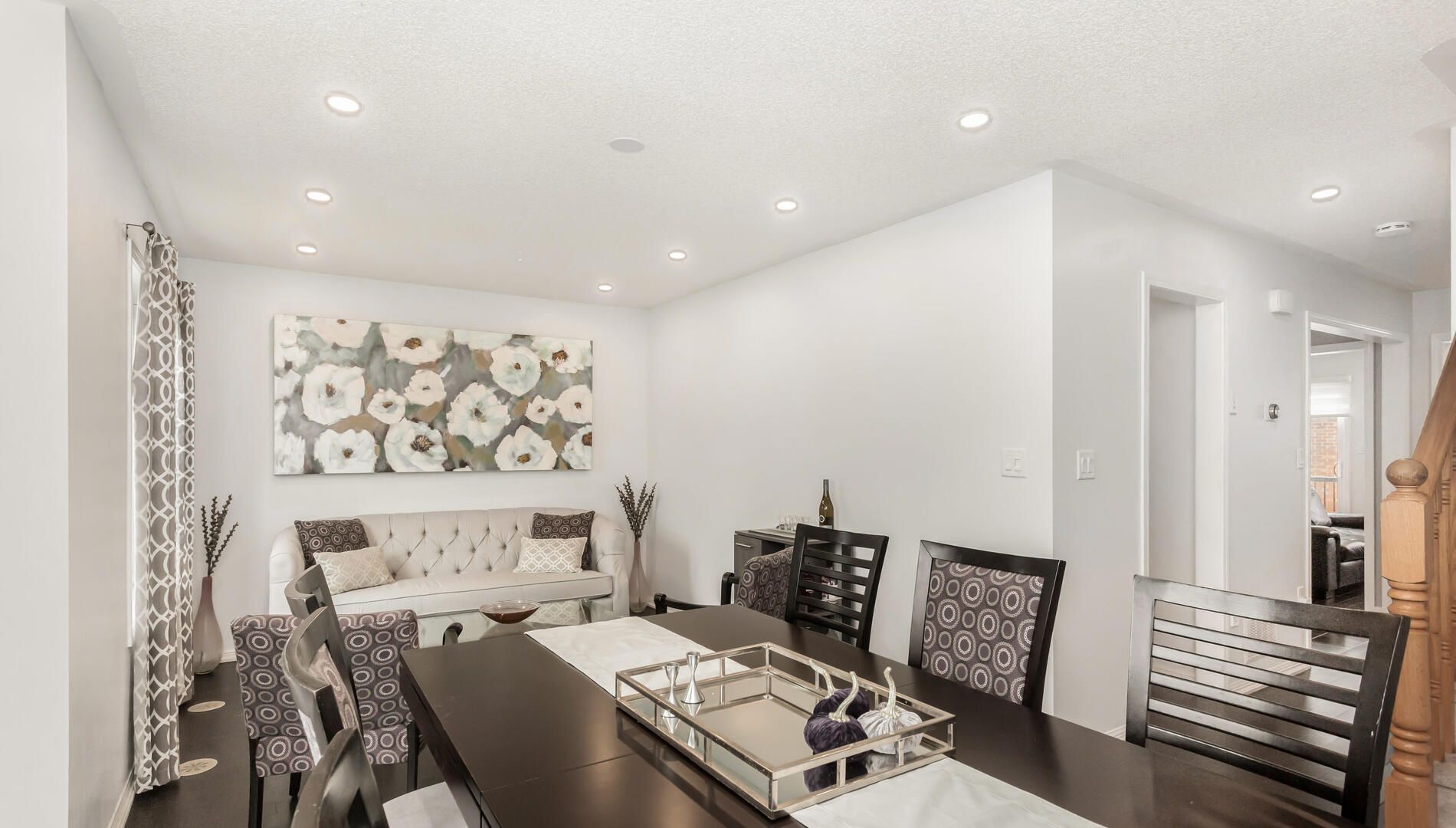 Stunning freehold urban townhouse, meticulously maintained and ideally located near public transit, the go station, and places of worship. The main level features a spacious bedroom with a full bathroom, perfect for a home office, guest suite, or additional living space. The heart of the home is the expansive, renovated kitchen, showcasing quartz countertops and a stylish backsplash that adds a modern, elegant touch. The kitchen flows seamlessly into a bright breakfast/dining area with a walk-out to a cedar deck, perfect for outdoor enjoyment. Well maintained with a true move-in ready feel, the home offers tons of storage throughout for everyday practicality. The primary bedroom serves as a peaceful retreat with a large closet providing ample space. The second and third bedrooms on the upper level are well-sized, while the main floor fourth bedroom adds flexibility for a home office, guest room, or additional living space. The updated walk-in mudroom features a built-in bench and added storage, and the conveniently located laundry room includes brand new appliances. With approximately 2,000 sq ft of living space, this home offers exceptional versatility and comfort for families or those seeking extra room. A must see with many updates!