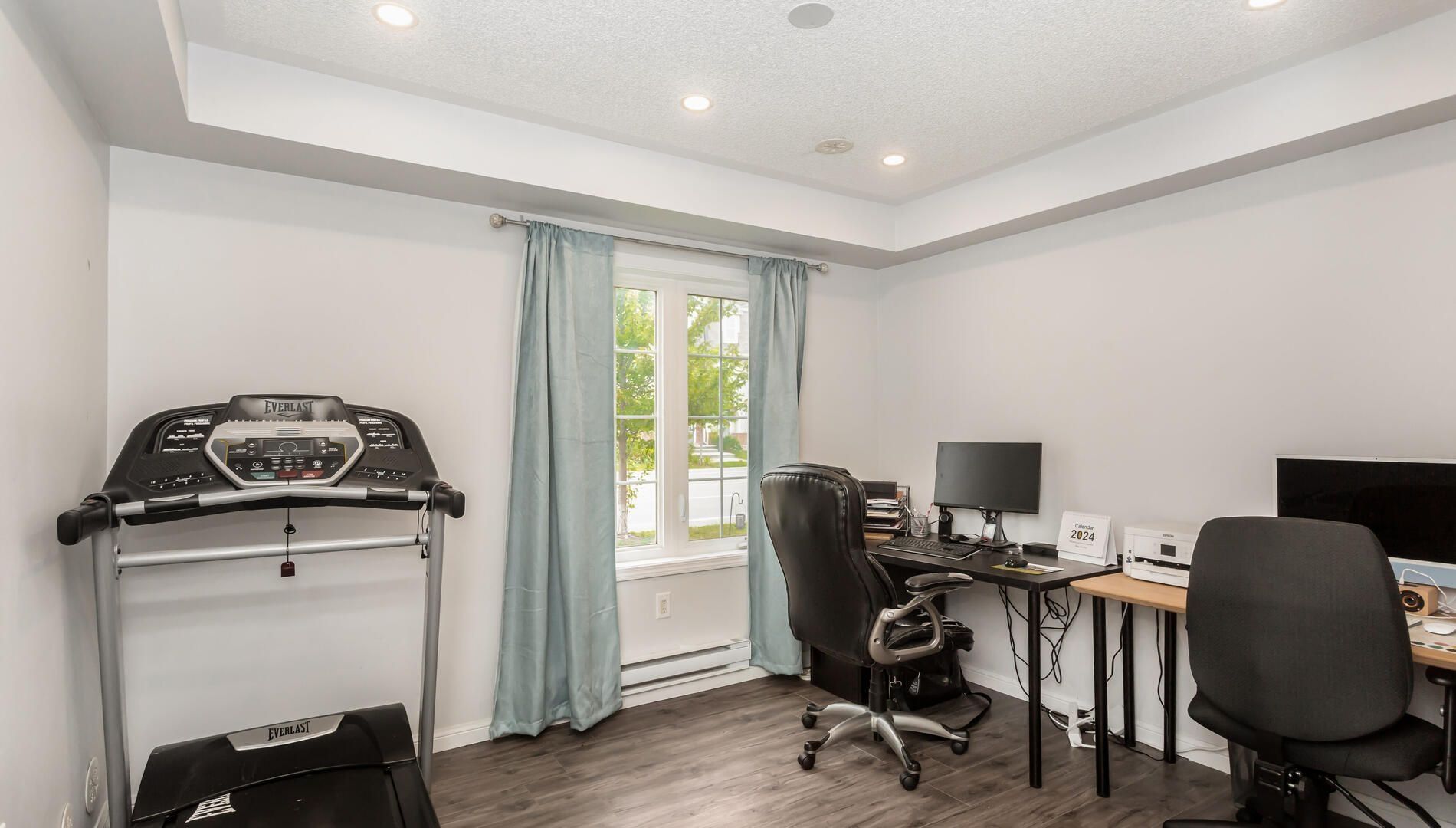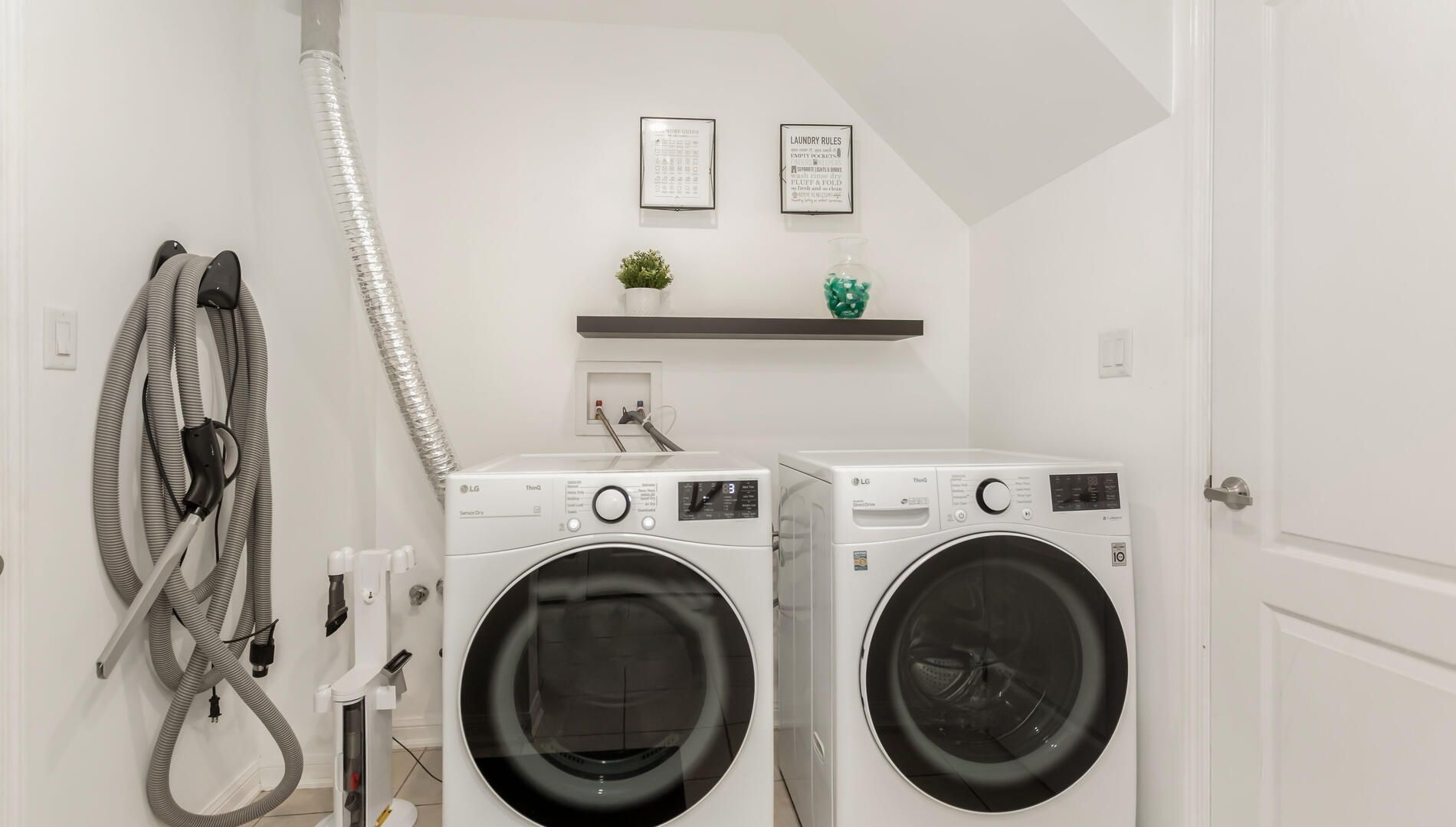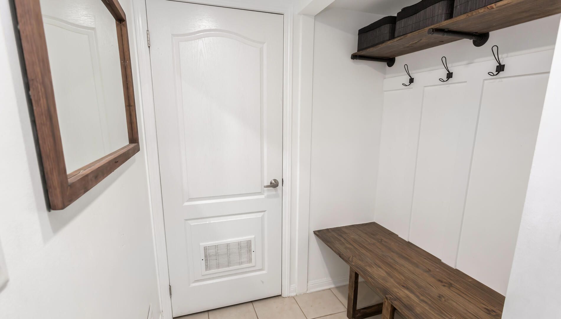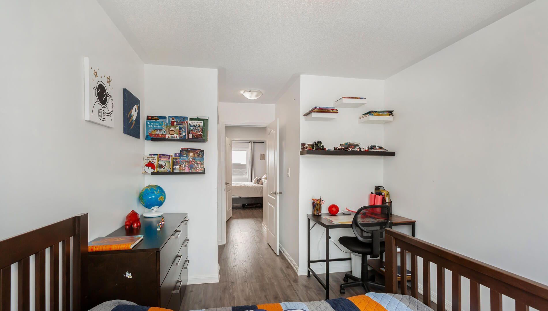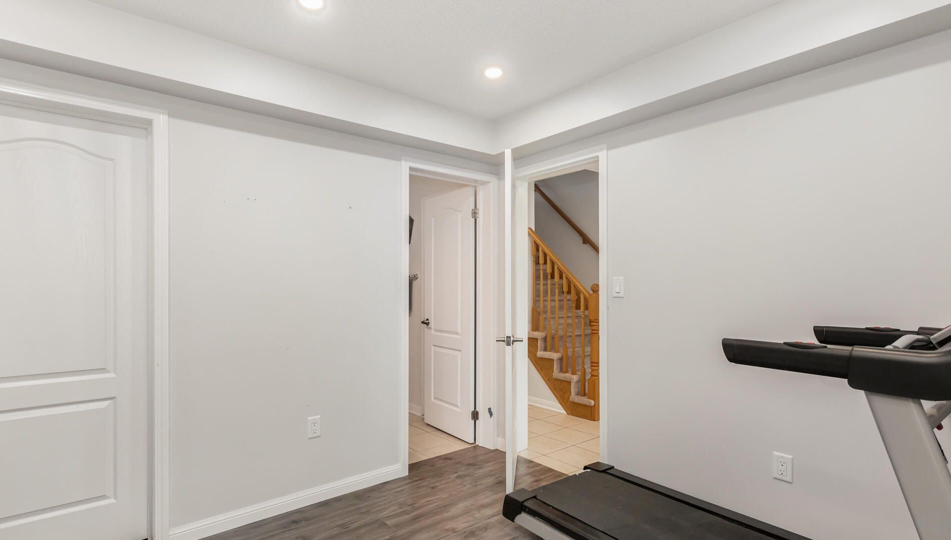 Stunning freehold urban townhouse, meticulously maintained and ideally located near public transit, the go station, and places of worship. The main level features a spacious bedroom with a full bathroom, perfect for a home office, guest suite, or additional living space. The heart of the home is the expansive, renovated kitchen, showcasing quartz countertops and a stylish backsplash that adds a modern, elegant touch. The kitchen flows seamlessly into a bright breakfast/dining area with a walk-out to a cedar deck, perfect for outdoor enjoyment. Well maintained with a true move-in ready feel, the home offers tons of storage throughout for everyday practicality. The primary bedroom serves as a peaceful retreat with a large closet providing ample space. The second and third bedrooms on the upper level are well-sized, while the main floor fourth bedroom adds flexibility for a home office, guest room, or additional living space. The updated walk-in mudroom features a built-in bench and added storage, and the conveniently located laundry room includes brand new appliances. With approximately 2,000 sq ft of living space, this home offers exceptional versatility and comfort for families or those seeking extra room. A must see with many updates!