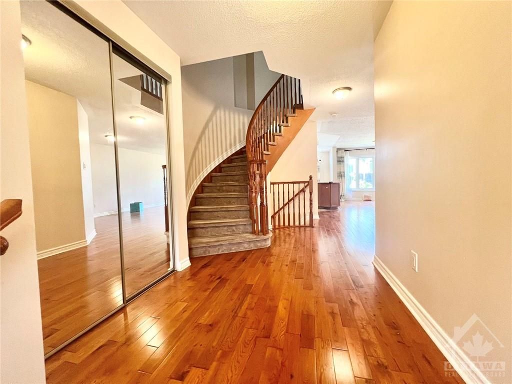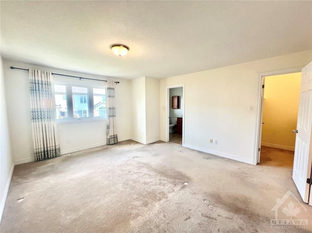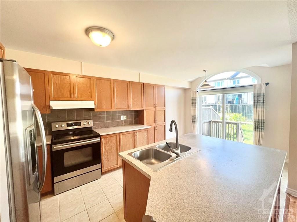Welcome to this beautifully maintained 3-bedroom, 3-bathroom townhouse in the highly sought-after morgan's grant community. The home features a spacious tiled foyer with direct garage access and a convenient powder room. The open-concept main level is enhanced by elegant hardwood flooring, ideal for both everyday living and entertaining. The bright kitchen offers stainless steel appliances, a functional island, and large windows that fill the space with natural light. Sliding patio doors lead to a private, sun-filled backyard, perfect for relaxing or hosting guests. Upstairs, the second floor features three bedrooms and two full bathrooms. The primary bedroom provides a comfortable retreat with a walk-in closet and a 4-piece ensuite featuring a soaker tub and separate shower. The fully finished lower level adds valuable living space along with ample storage. Ideally located close to great schools, parks, shopping, recreation facilities, and the kanata high tech campus, short drive to dnd carling office. This move-in-ready home offers both comfort and convenience. Landlord will replace the range hood, stove, and kitchen faucet before the next tenant moves in.
