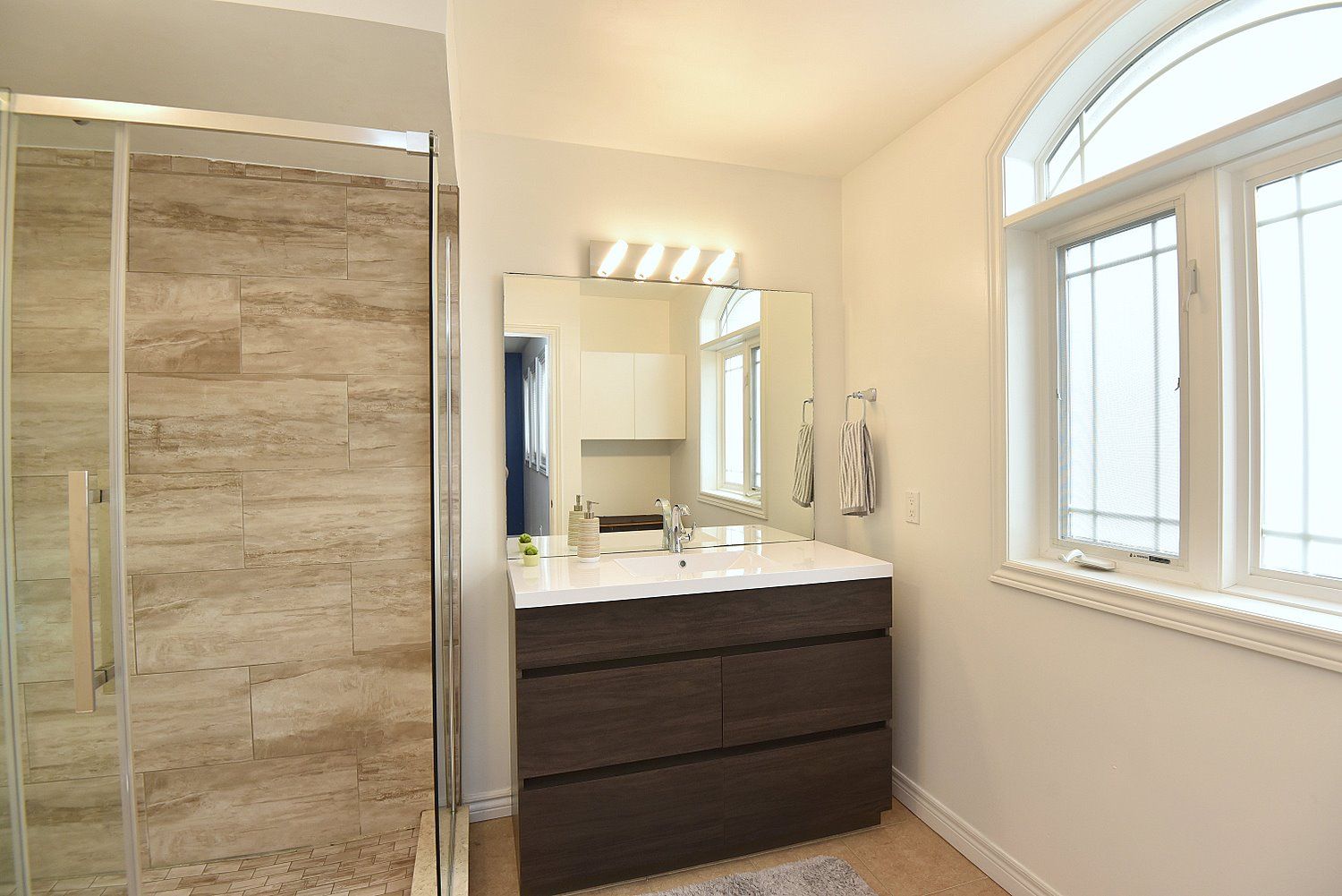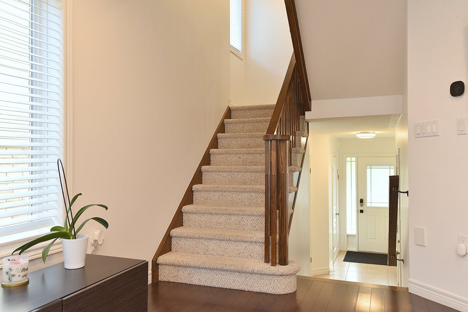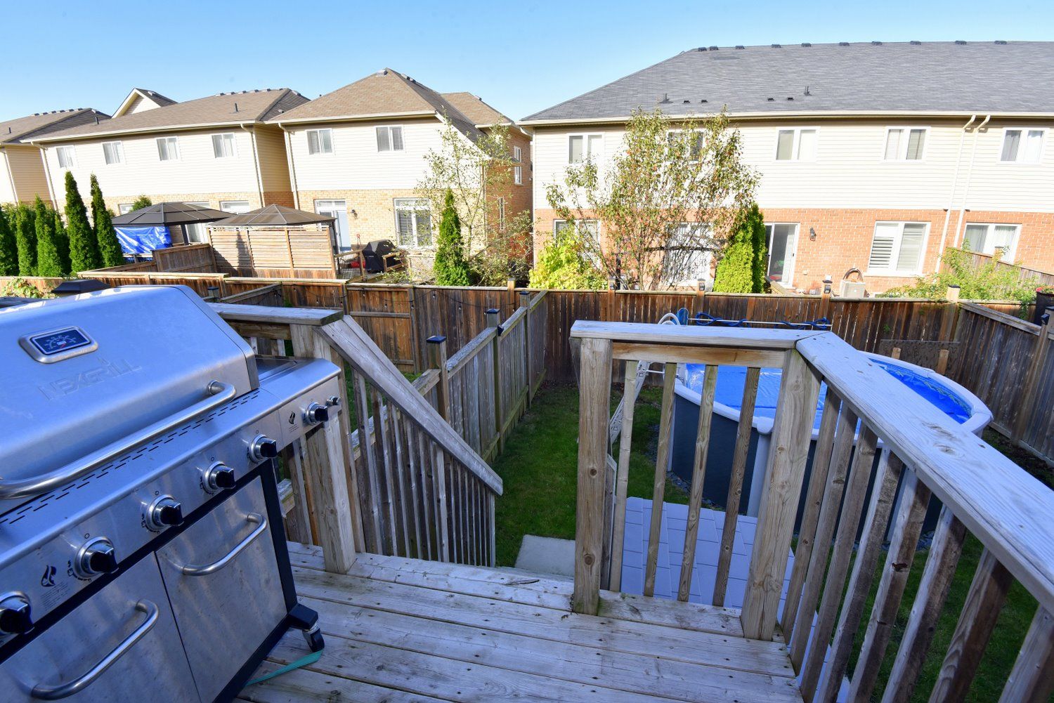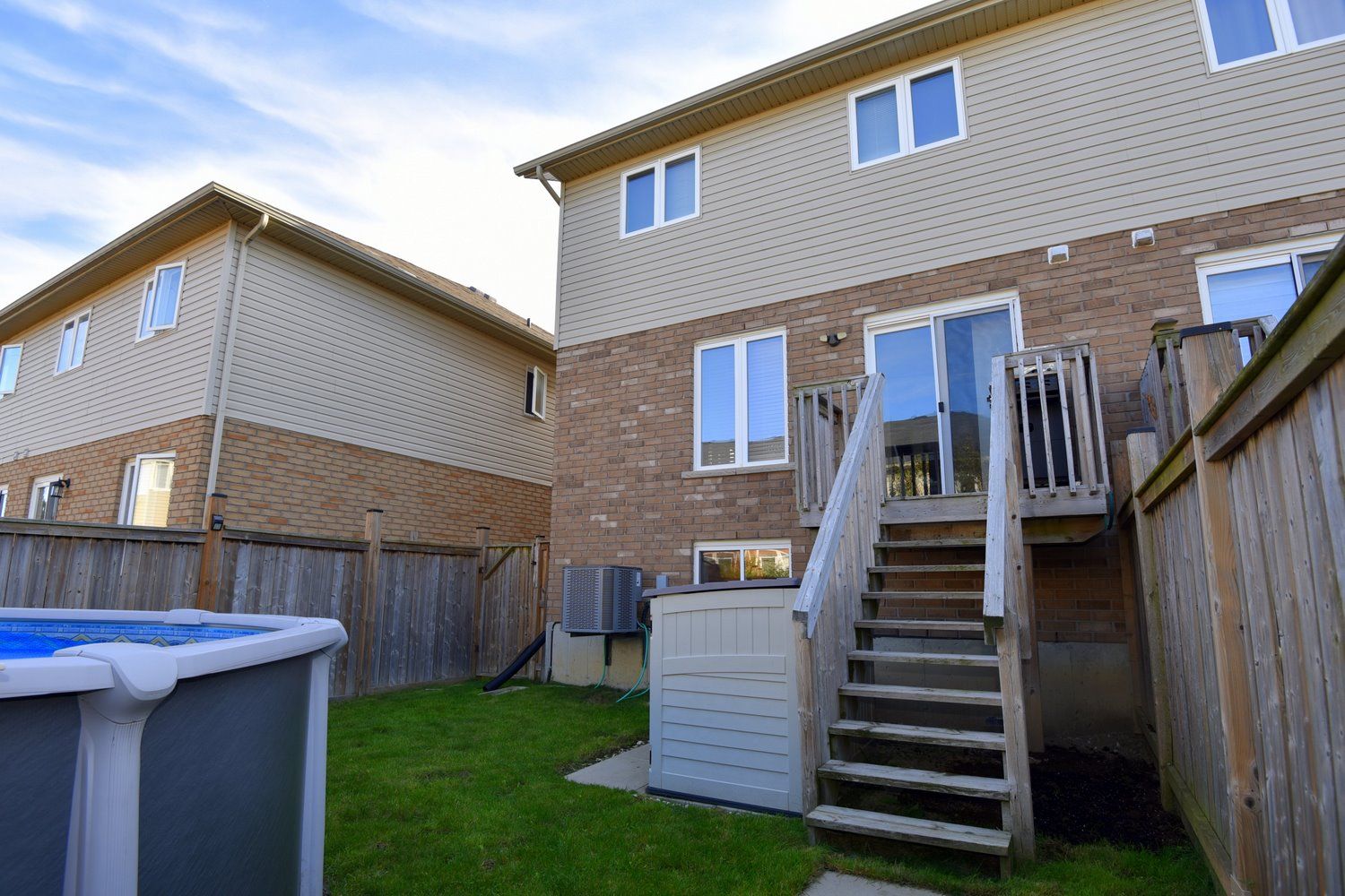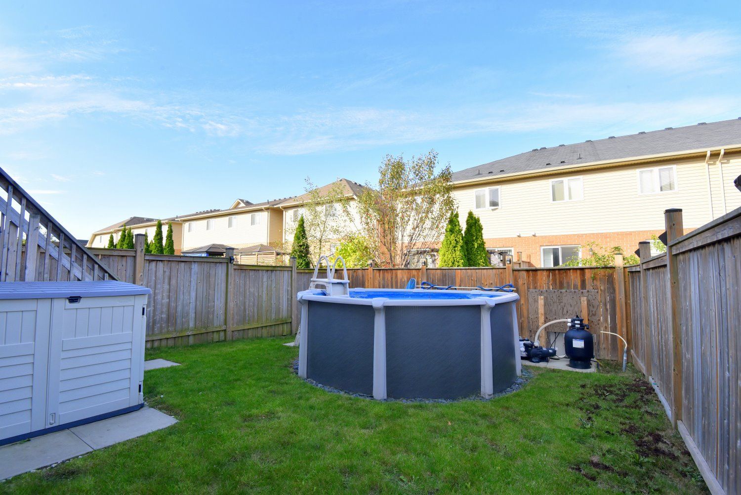 Welcome to this beautifully updated and impeccably kept end-unit townhome, offering the space and privacy you desire. This home is truly move-in ready, featuring a host of modern upgrades and fantastic amenities. The main floor boasts a bright, open-concept layout highlighted by a combination of hardwood and ceramic flooring. Enjoy the warm ambiance created by stylish pot lights and an abundance of natural light. A sliding door provides seamless access to your private, fenced backyard. The upper level is designed for family living, offering three generously sized bedrooms. The main bedroom is a tranquil retreat featuring its own private ensuite bathroom. A second full bathroom and a convenient upper-level laundry area complete this floor. The fully finished basement significantly expands your living space, including a dedicated office space perfect for remote work, a large recreation room for entertaining or relaxation, and ample storage solutions. Enjoy peace of mind knowing the furnace, central air conditioning, and water heater are owned and were all newly installed in 2024! Step outside to discover your very own private escape! The fenced backyard features a 12-foot heated above-ground pool-the perfect amenity for summer fun and relaxation. Oversized 1 car garage with access to the inside. Driveway for 2 cars. This home is situated in a highly convenient area, just steps away from schools, parks, public transportation, essential amenities, and so much more!