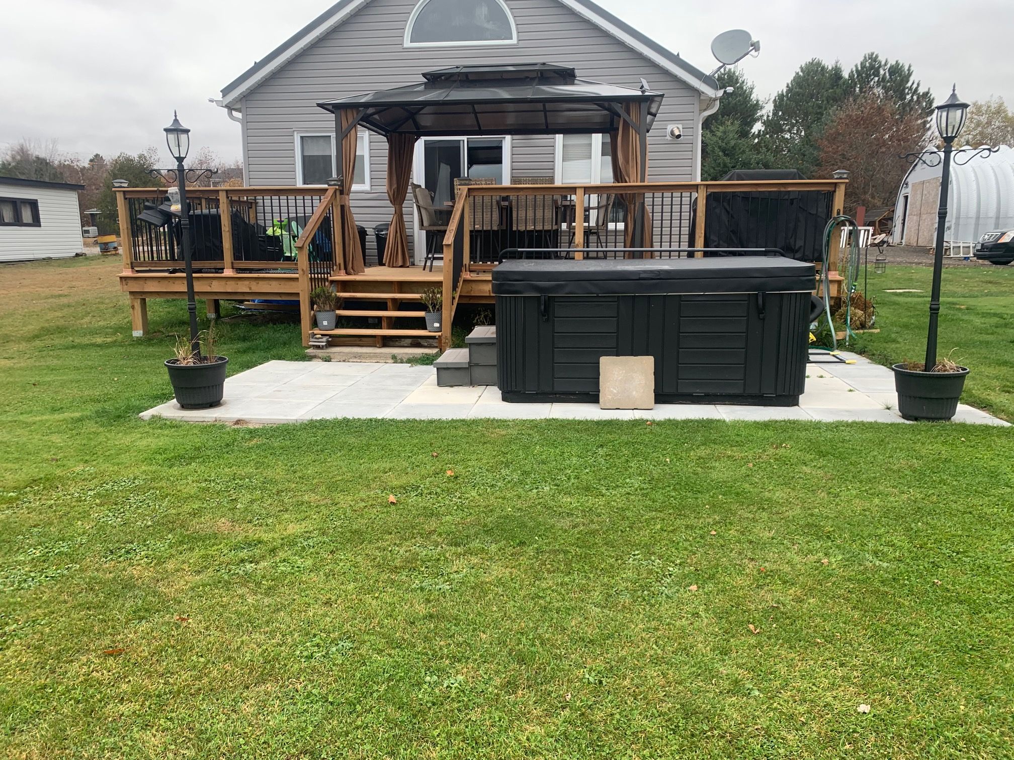 • Inviting hot tub on the lakeside deck, great for entertaining and relaxation.