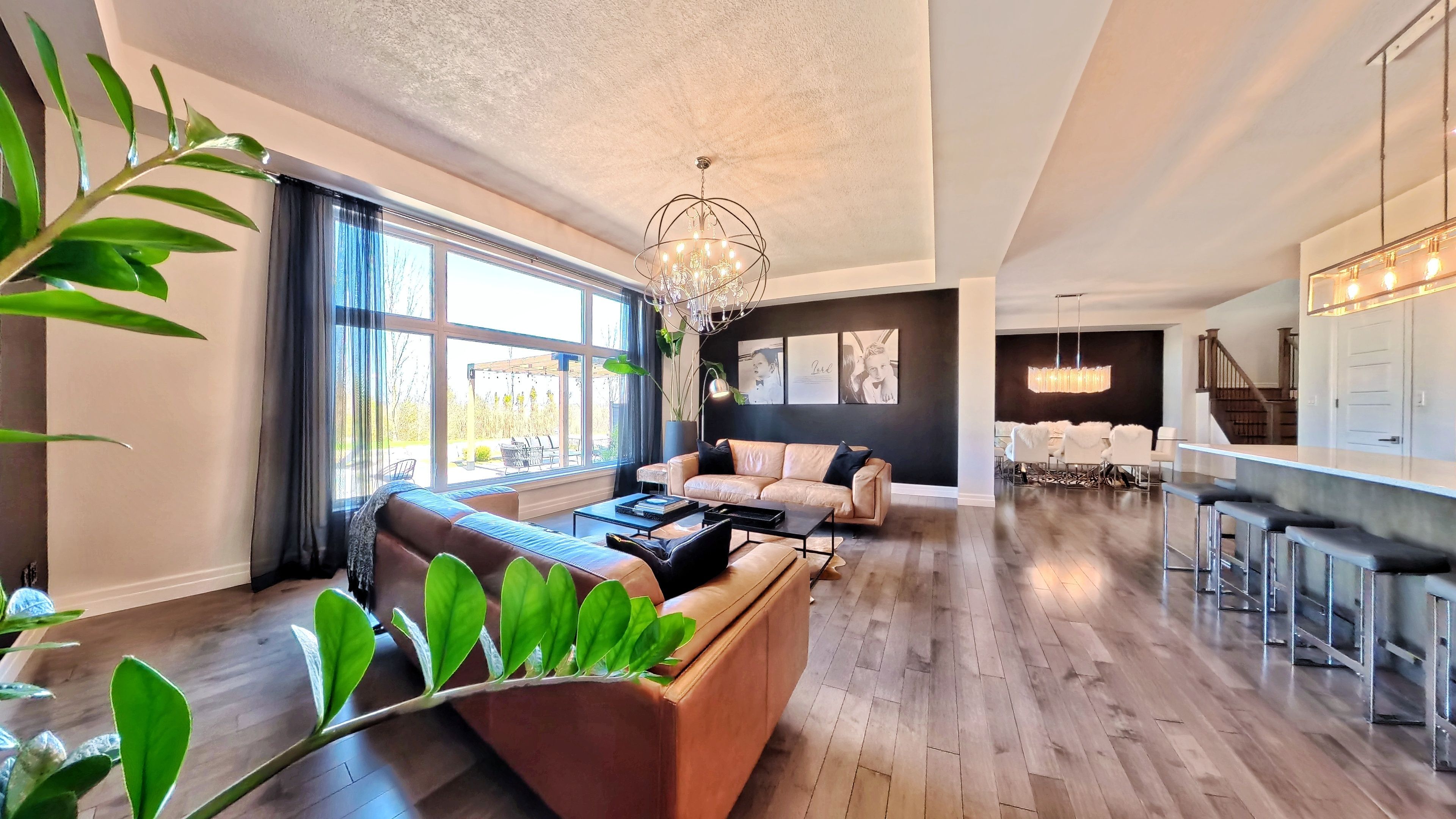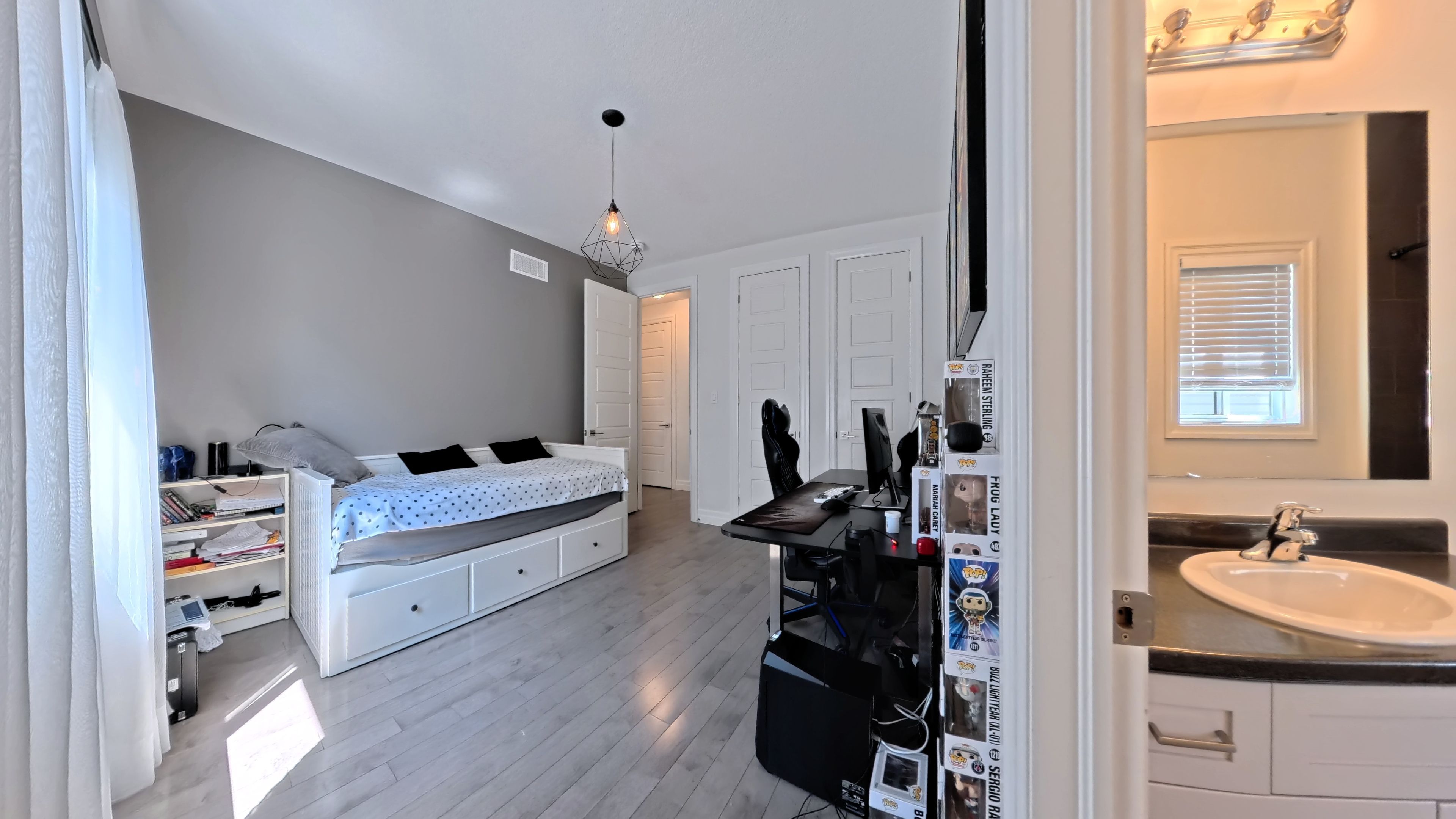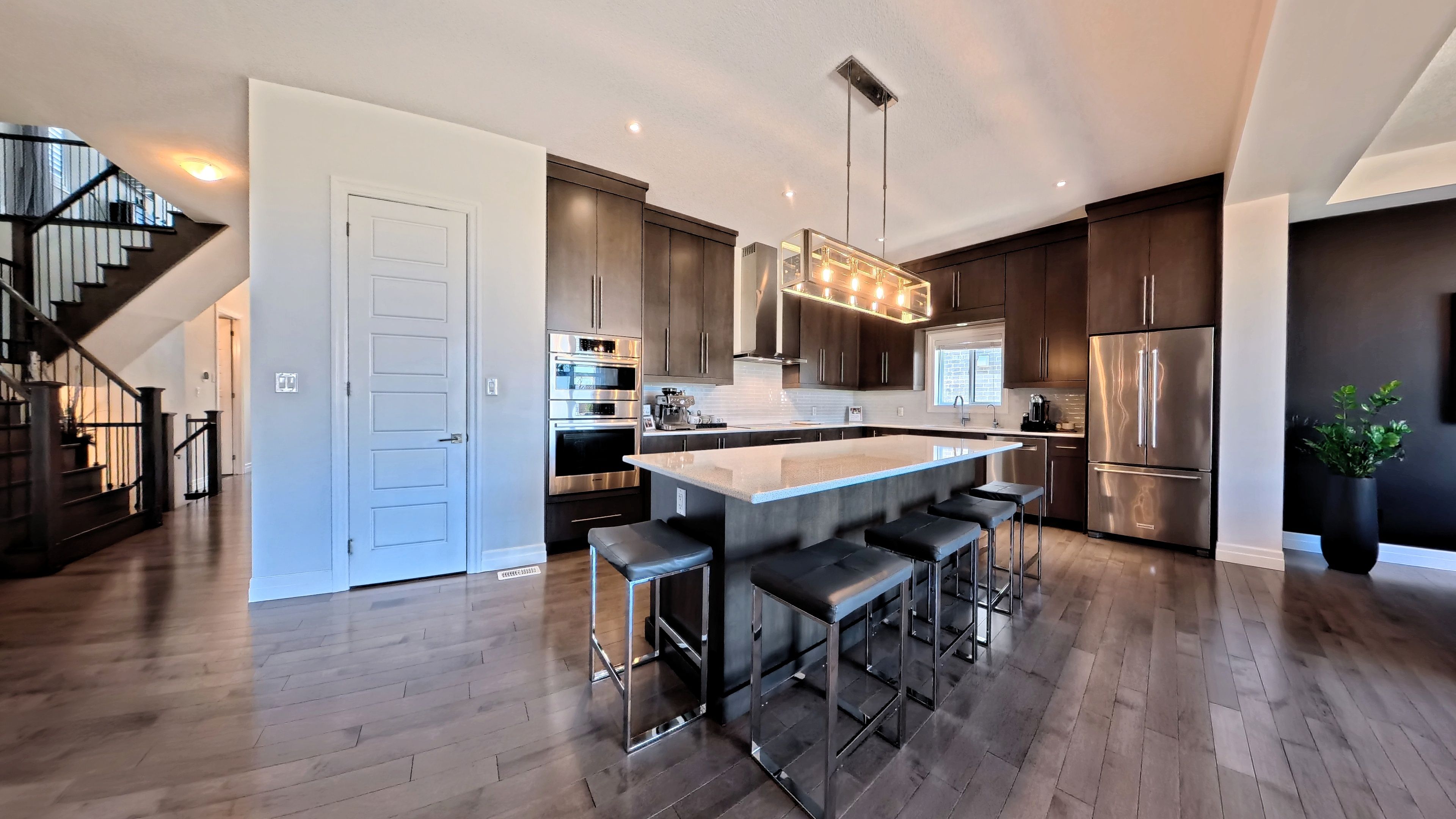 Welcome to this exceptional executive home that delivers on every level. Thoughtfully designed with an open concept layout and rich hardwood flooring throughout both levels, this residence offers the space, style, and functionality today's discerning buyer demands. The main floor flows effortlessly from the gourmet kitchen, anchored by an oversized island ideal for entertaining, to the dining area with a walkout to a covered bbq terrace and fully landscaped backyard. The front yard is equally impressive, offering outstanding curb appeal from the moment you arrive. Upstairs, four generously sized bedrooms each feature their own private ensuite, a rare and coveted feature. The primary suite is in a class of its own, complete with a spa inspired soaking tub and a walk in glass shower with a built in bench. A bonus living room on the upper level adds valuable flexibility for a home office, playroom, media room, or additional lounge space. The unspoiled open concept basement presents a blank canvas of endless potential, already boasting impressive square footage and ready to be finished to your exact vision. Every inch of this home has been designed with comfort, quality, and lifestyle in mind. Properties of this calibre rarely come to market in this neighbourhood.