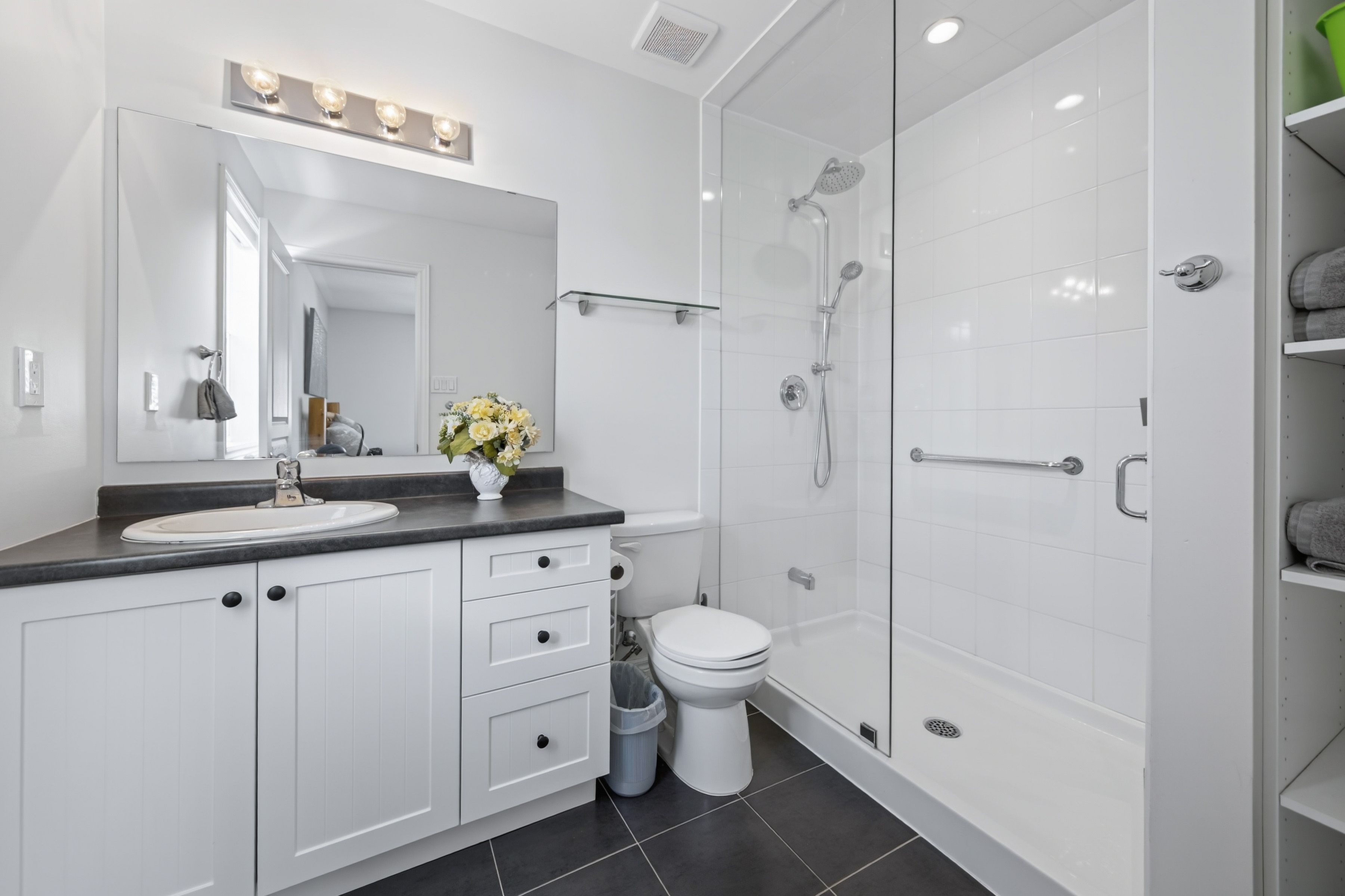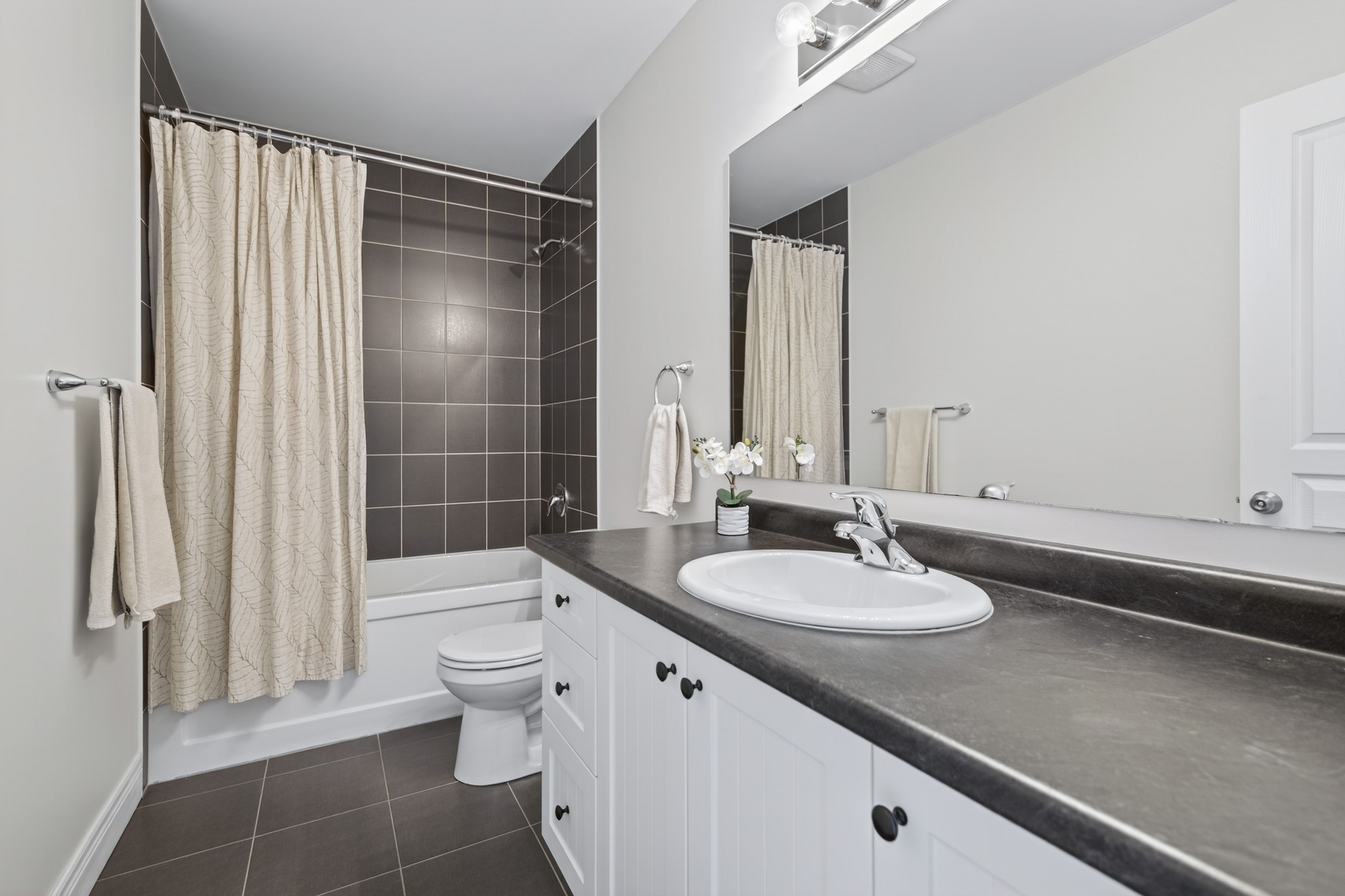 • Stunning kitchen features a large quartz island for meals and entertaining.