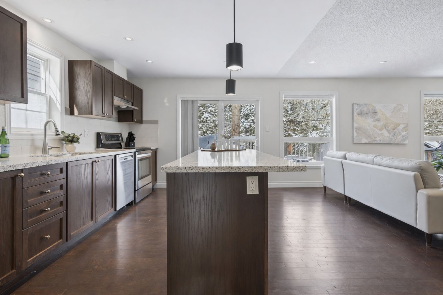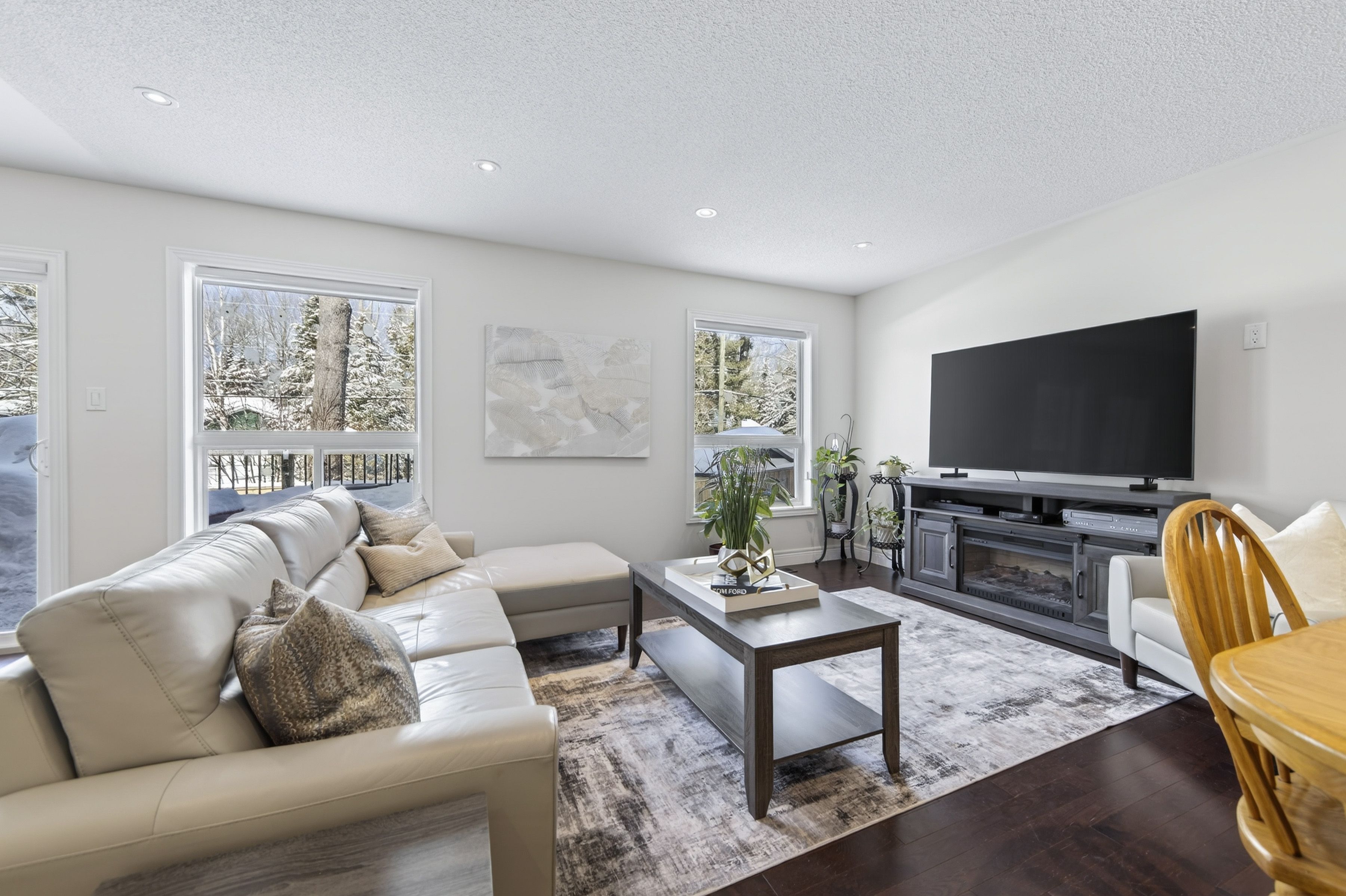 • Bright open-concept main floor with hardwood floors and expansive windows.