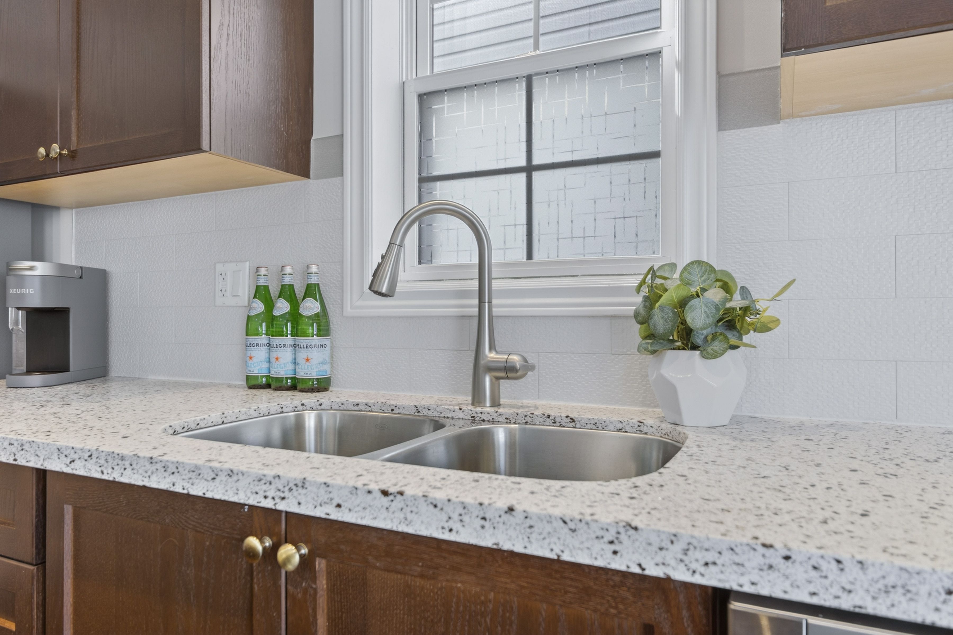 • Stunning kitchen with quartz island, perfect for casual meals and entertaining.