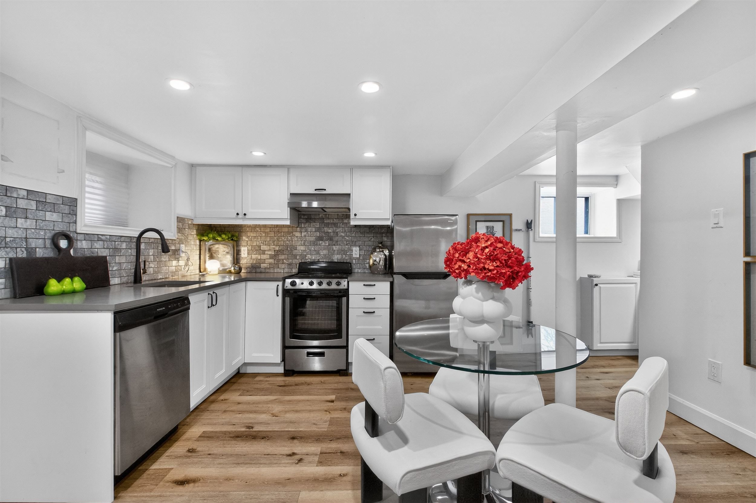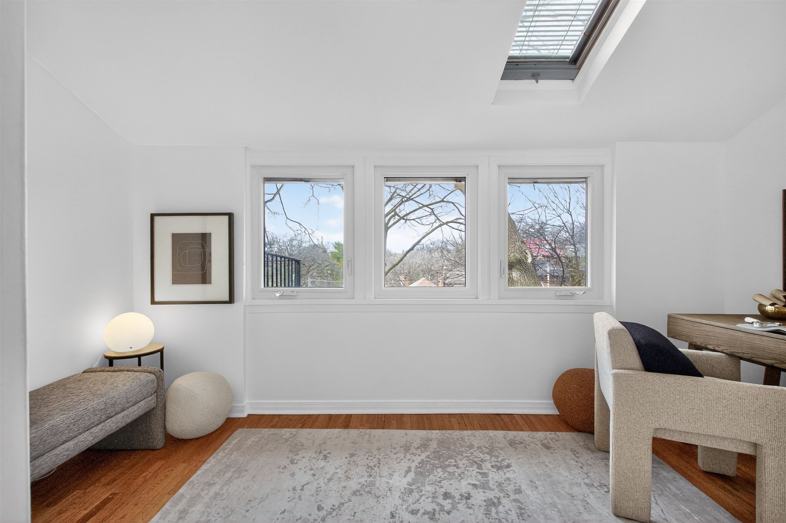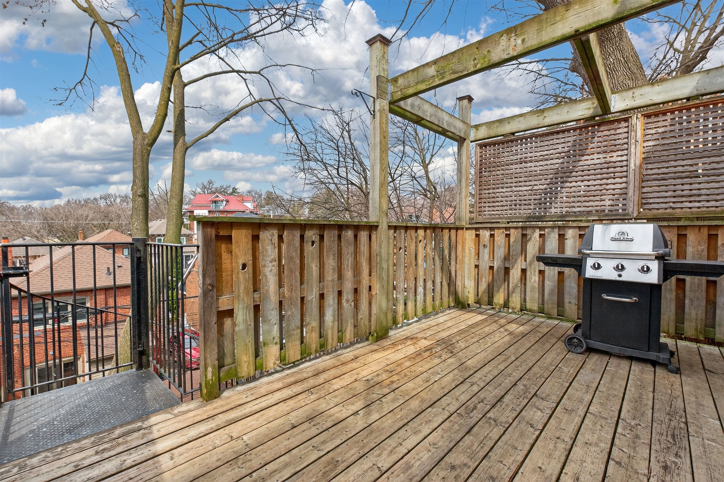 Nestled on one of the most coveted historic streets in toronto's west end, 102 gothic avenue is a masterclass in blending timeless character with contemporary luxury. This stunning 2 1/2 storey residence has been meticulously renovated and restored, offering an expansive floor plan that features 5+1 bedrooms, a dedicated home office, and an open family room. From the moment you step inside, the soaring ceilings, original stained glass accents, and gleaming hardwood floors create an atmosphere of refined elegance. The open-concept main floor is a host's dream, flowing seamlessly from the spacious living areas to a convenient main floor powder room, making it the perfect backdrop for grand entertaining or intimate family gatherings. At the heart of the home lies a renovated kitchen, designed for both style and function. It boasts a sleek breakfast bar, quartz countertops, and a sophisticated tumbled marble backsplash. The upper levels continue to impress with a spa-like family bathroom and a sun-drenched office featuring a skylight and offering breathtaking views of the treetops and vibrant sunsets. Outdoors, the lifestyle is equally impressive, with two walk-outs to private decks and terraces, providing serene spaces for morning coffee or evening relaxation. The versatility of this property extends to the fully developed lower level, which functions as a complete secondary living space. Featuring its own kitchen, living room, bedroom, washroom, and a separate entrance, it serves as an ideal nanny or in-law suite. Situated on a quiet, child-friendly cul-de-sac, you are just steps away from the lush trails of high park, the ambiance and shops of bloor west village and the convenience of the subway station. This is a rare opportunity to own a turnkey historic gem in one of toronto's most vibrant and walkable neighborhoods.