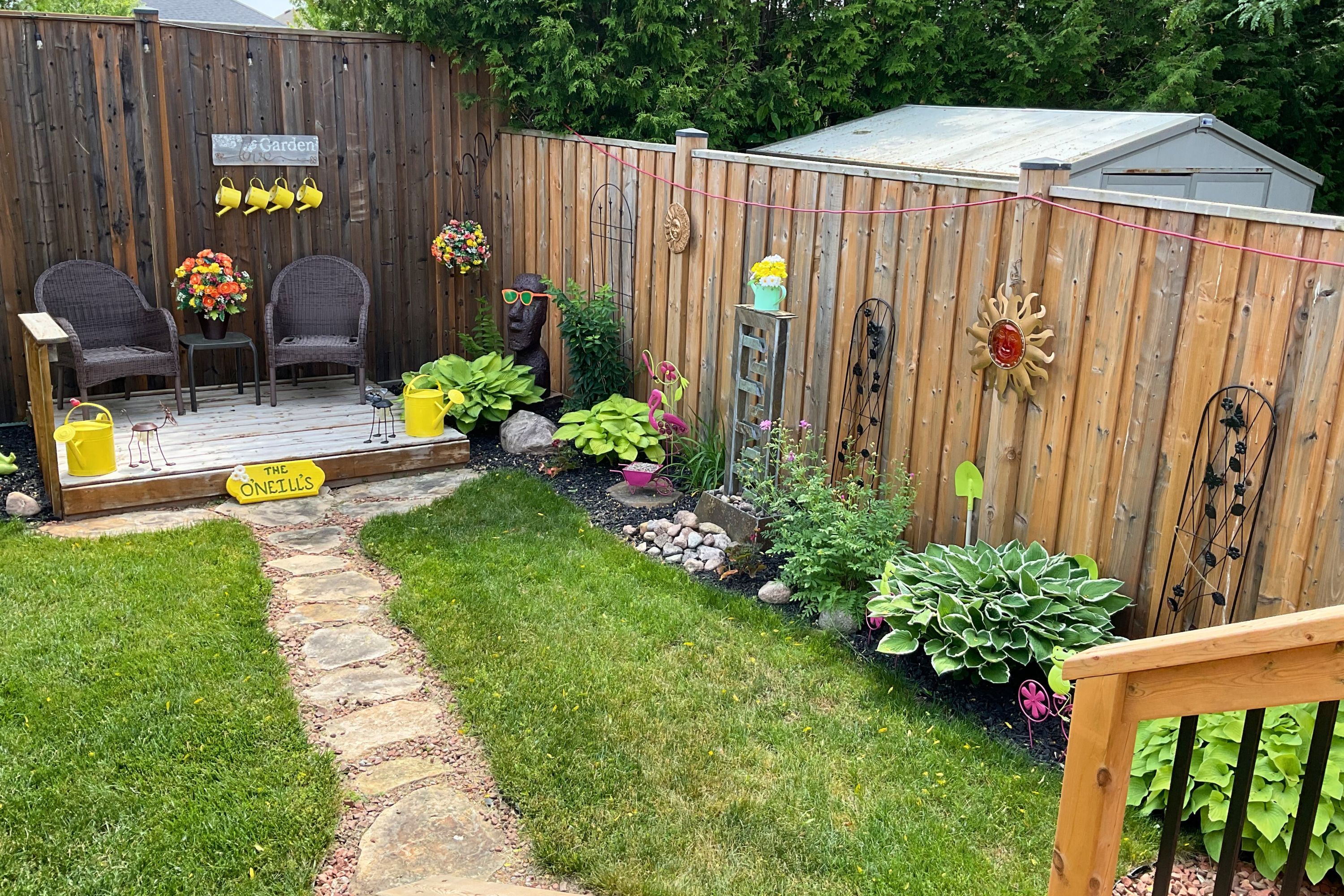 • Private backyard with a newly built large deck for relaxation.