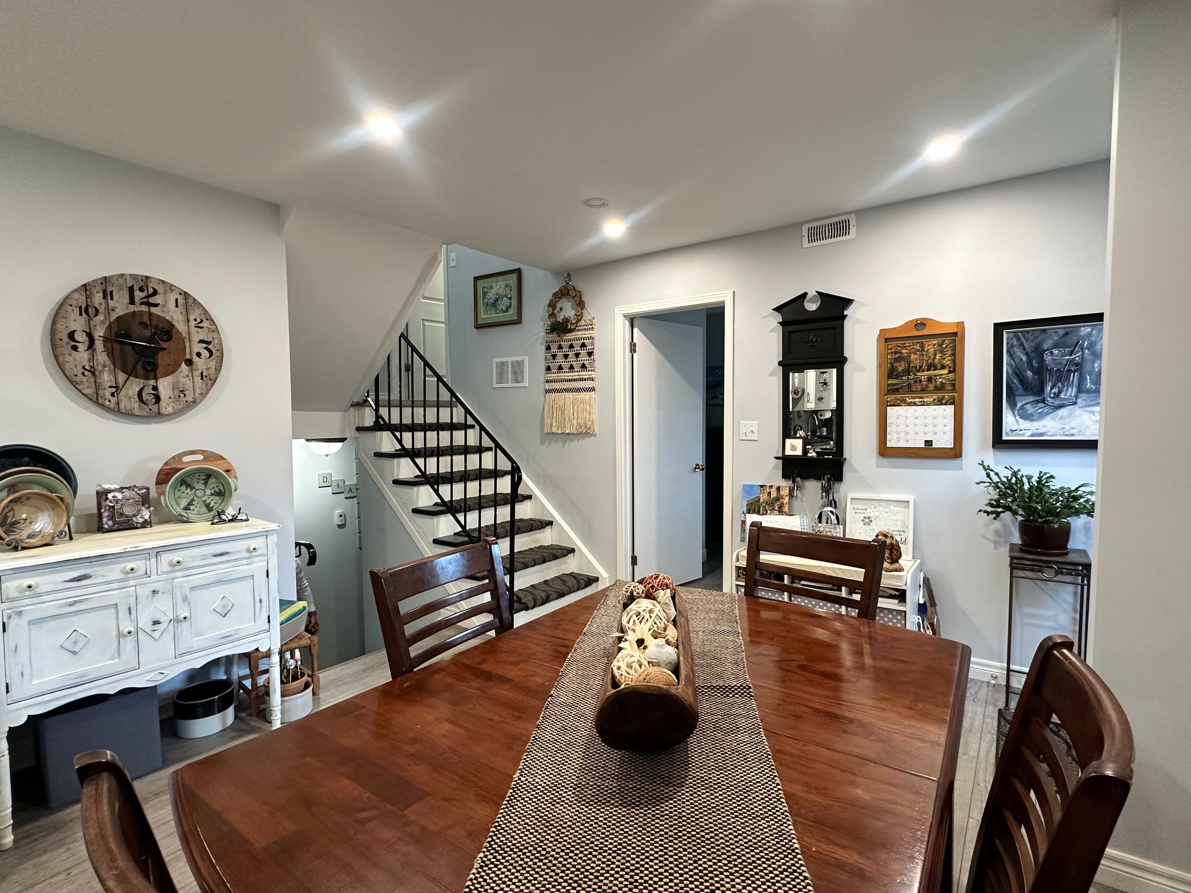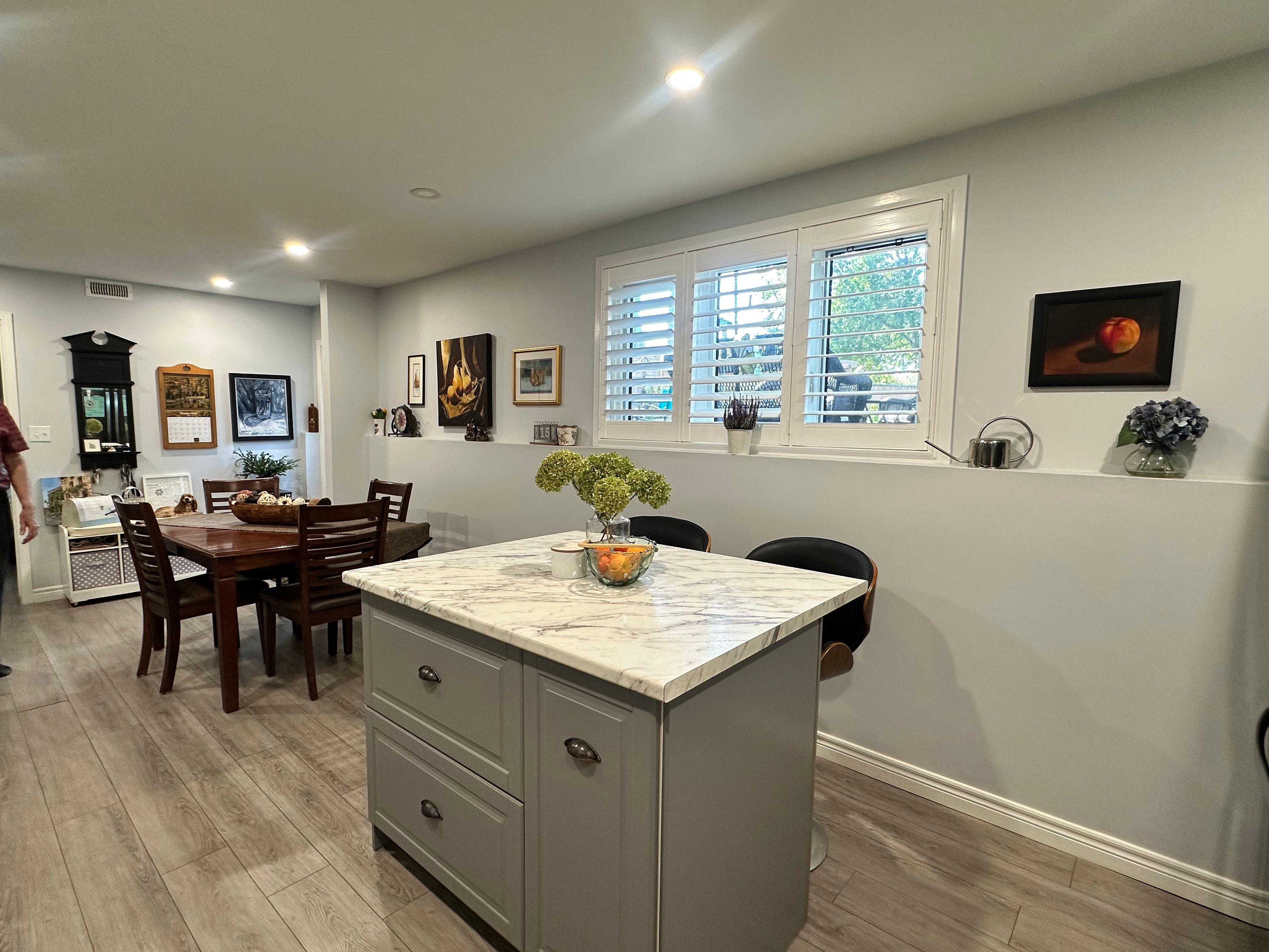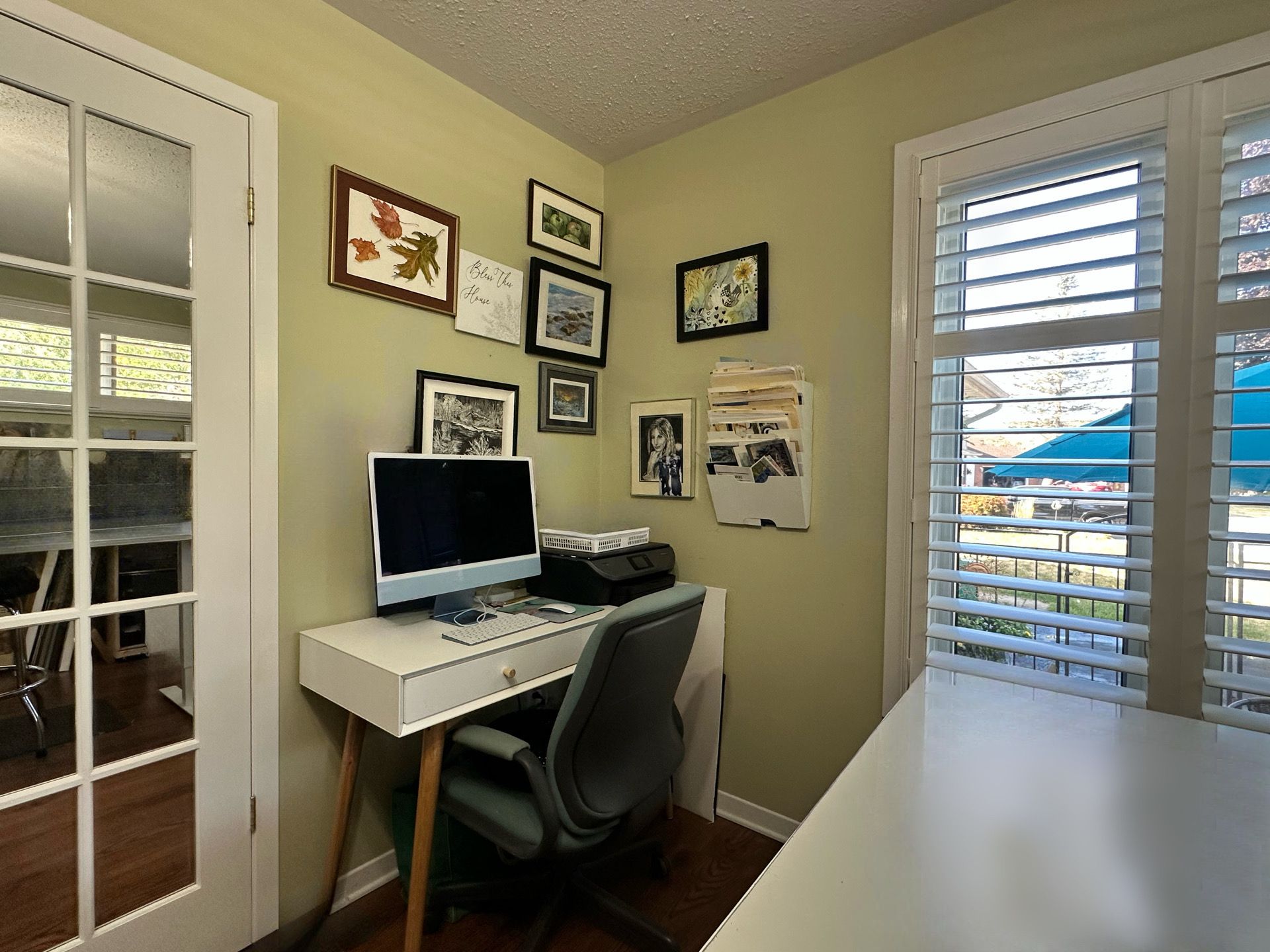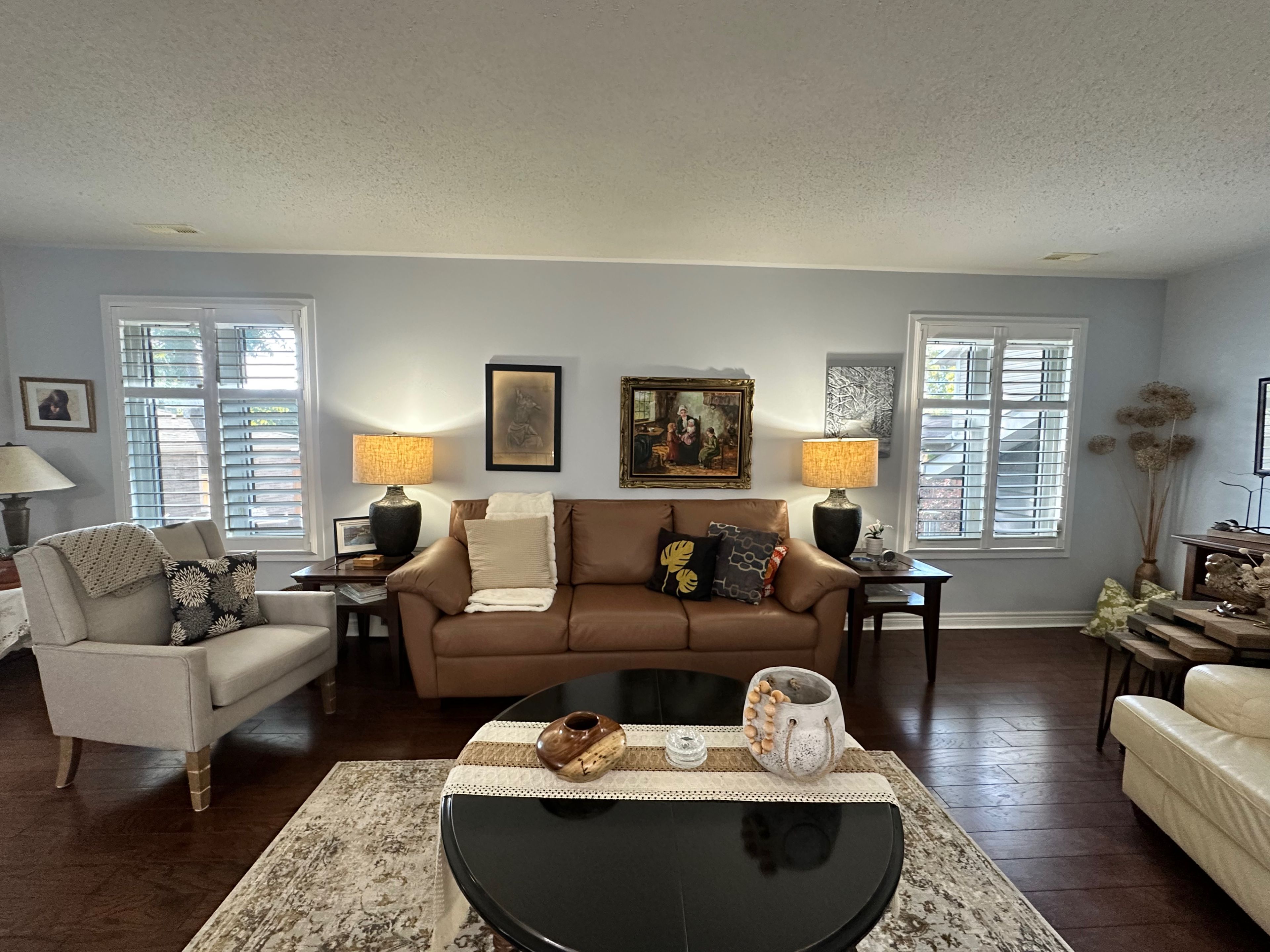 • Living room overlooks a park-like backyard, perfect for relaxation.