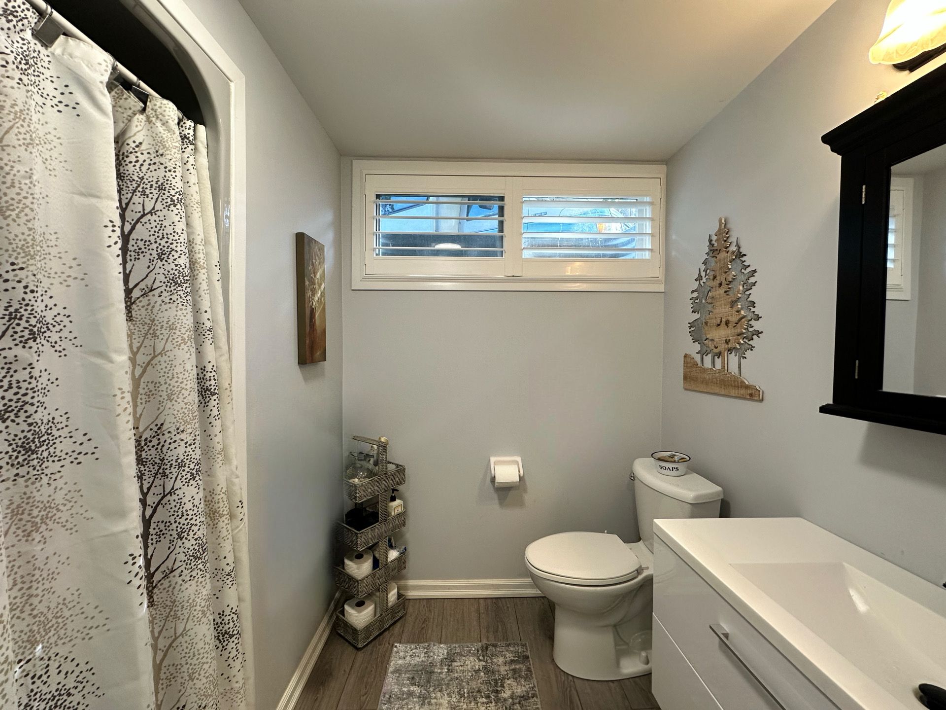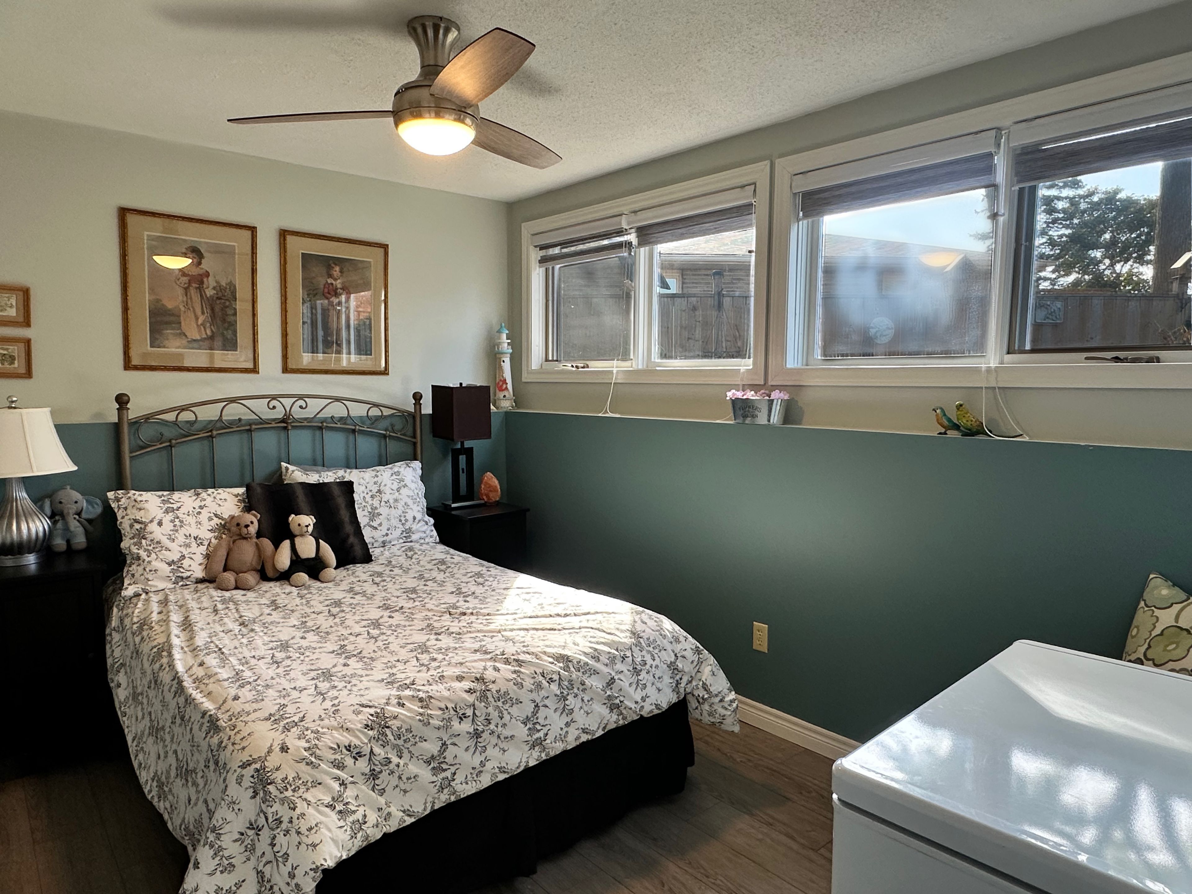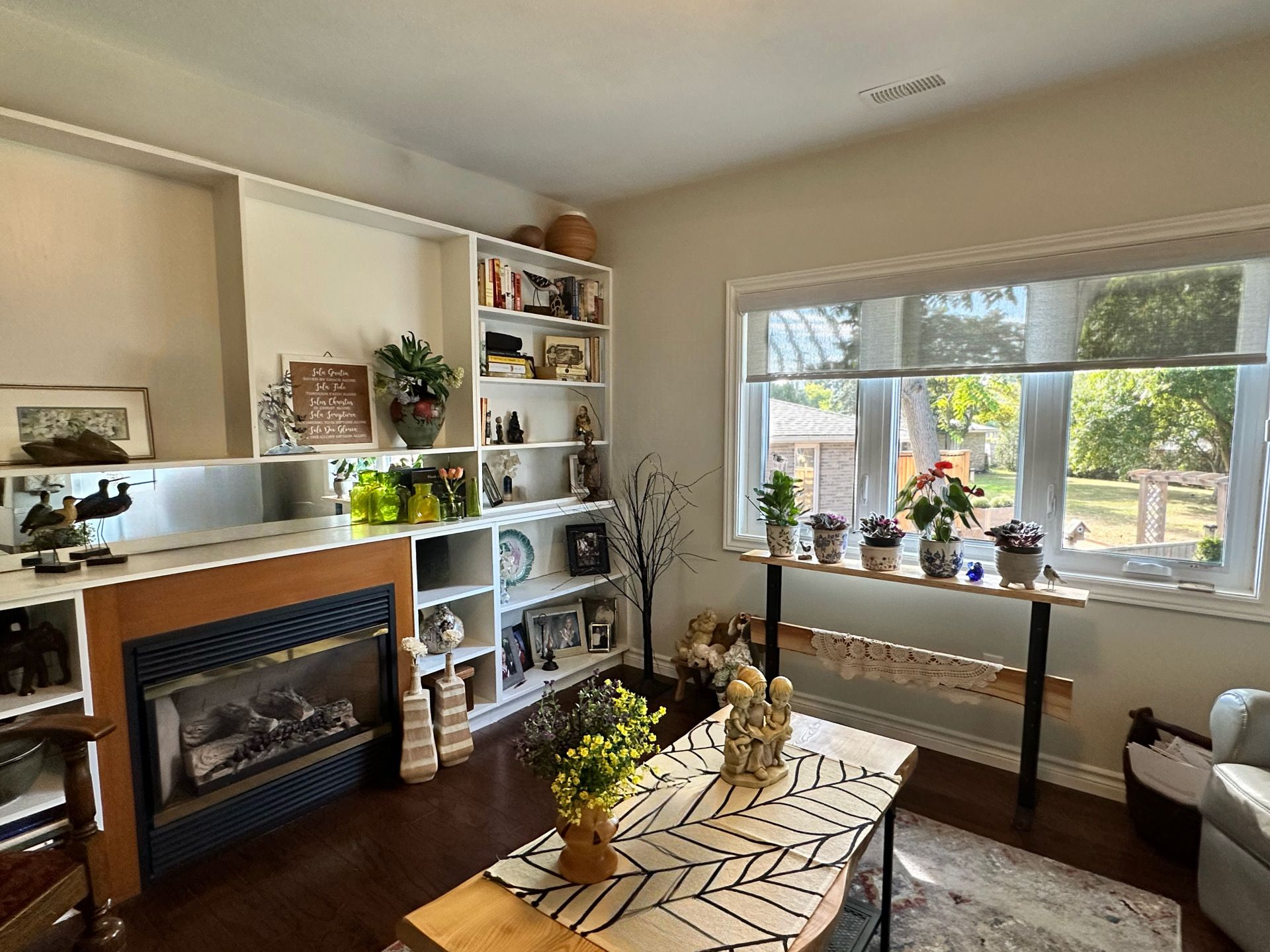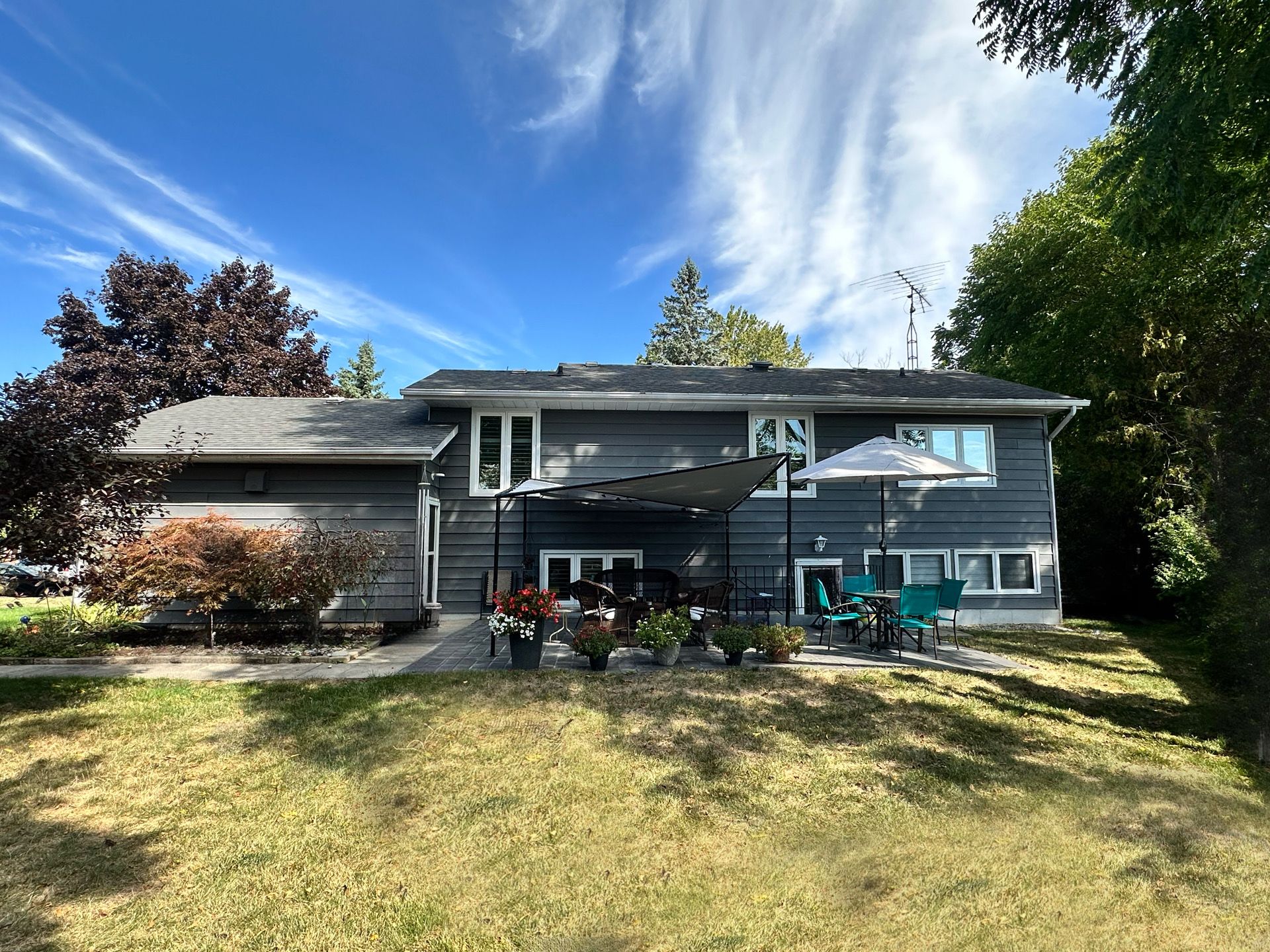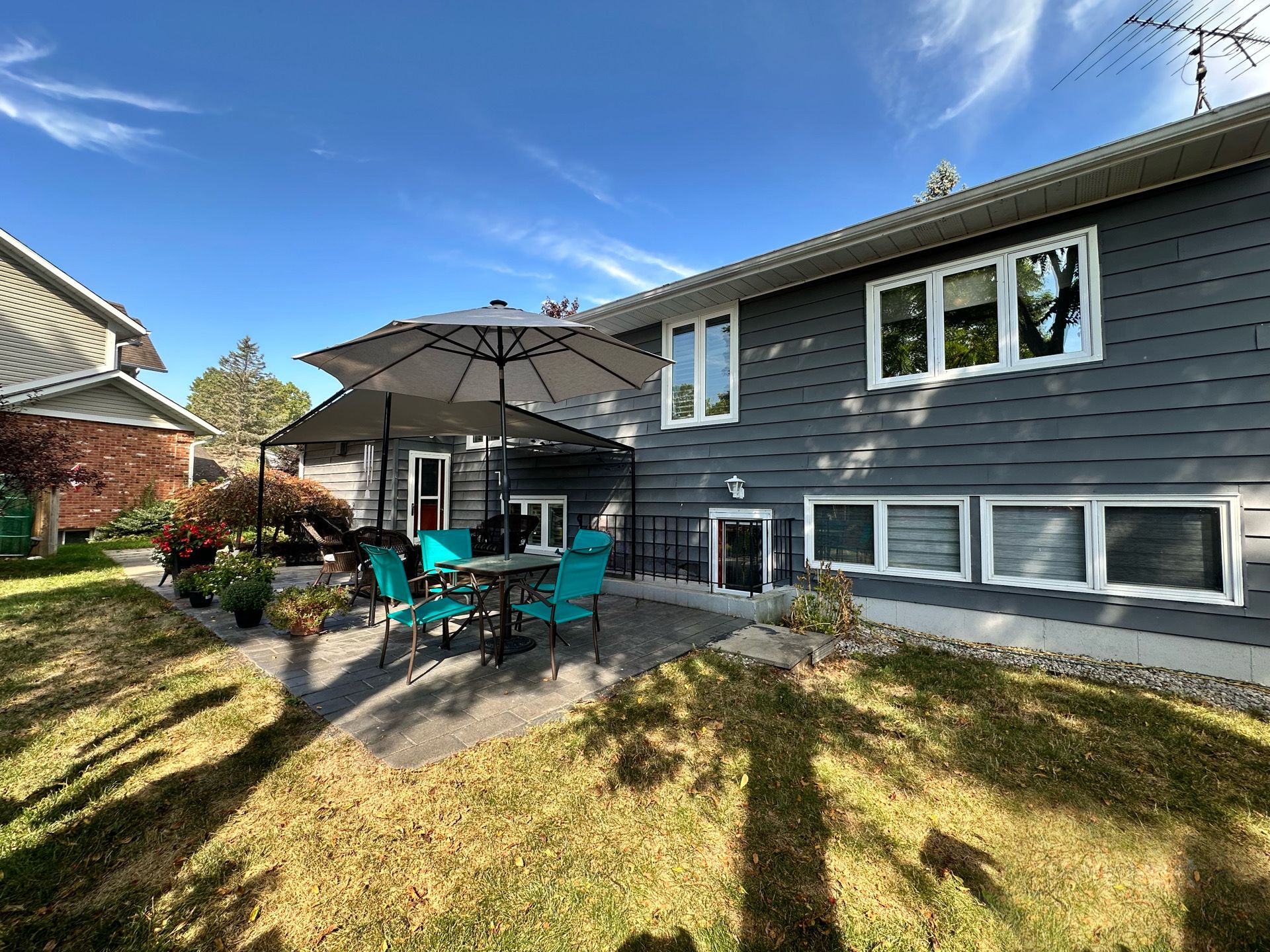 Fabulous 2+1 bed, 2 bath back split home offers bright, airy layout. Gorgeous landscaping adds to the curb appeal. The inviting courtyard and covered front porch creates a warm and welcoming first impression for your guests, and offers additional, functional space for entertaining or enjoying your morning coffee. Conveniently located just inside the front door is a spacious office (bedroom)with french doors and plenty of natural light. The main floor also hosts the primary bedroom (with ensuite privileges) and 3-piece bath with stunning glass and tile shower. The living room overlooks the main floor and offers views of the park like back yard, and the cozy den has gas fireplace and wall to wall built in bookcase. The large eat-in kitchen with island provides loads of storage and counter space (appliances and california shutters included!!) with walk out to back yard. The huge rec-room will offer space for the whole family to kick back and relax in front of the ng fireplace; there is a 3-pc bath combined with laundry and a nook with counter providing endless uses. Outside boasts a paved circular drive and attached oversized insulated, drywalled, heated 1. 5 car garage. The back yard features large patio, shed, and room for the kids to run and play. With its convenient location, updates and multiple flex spaces this home combines function and style.