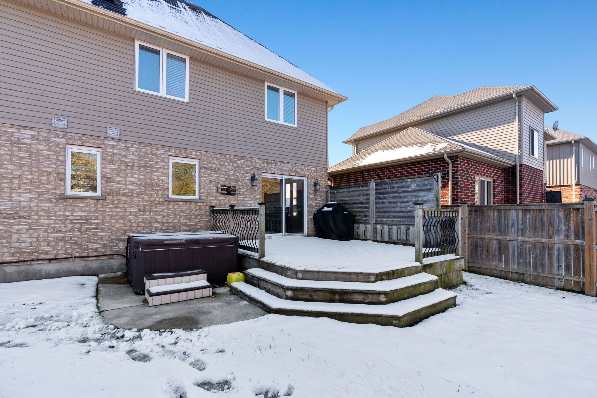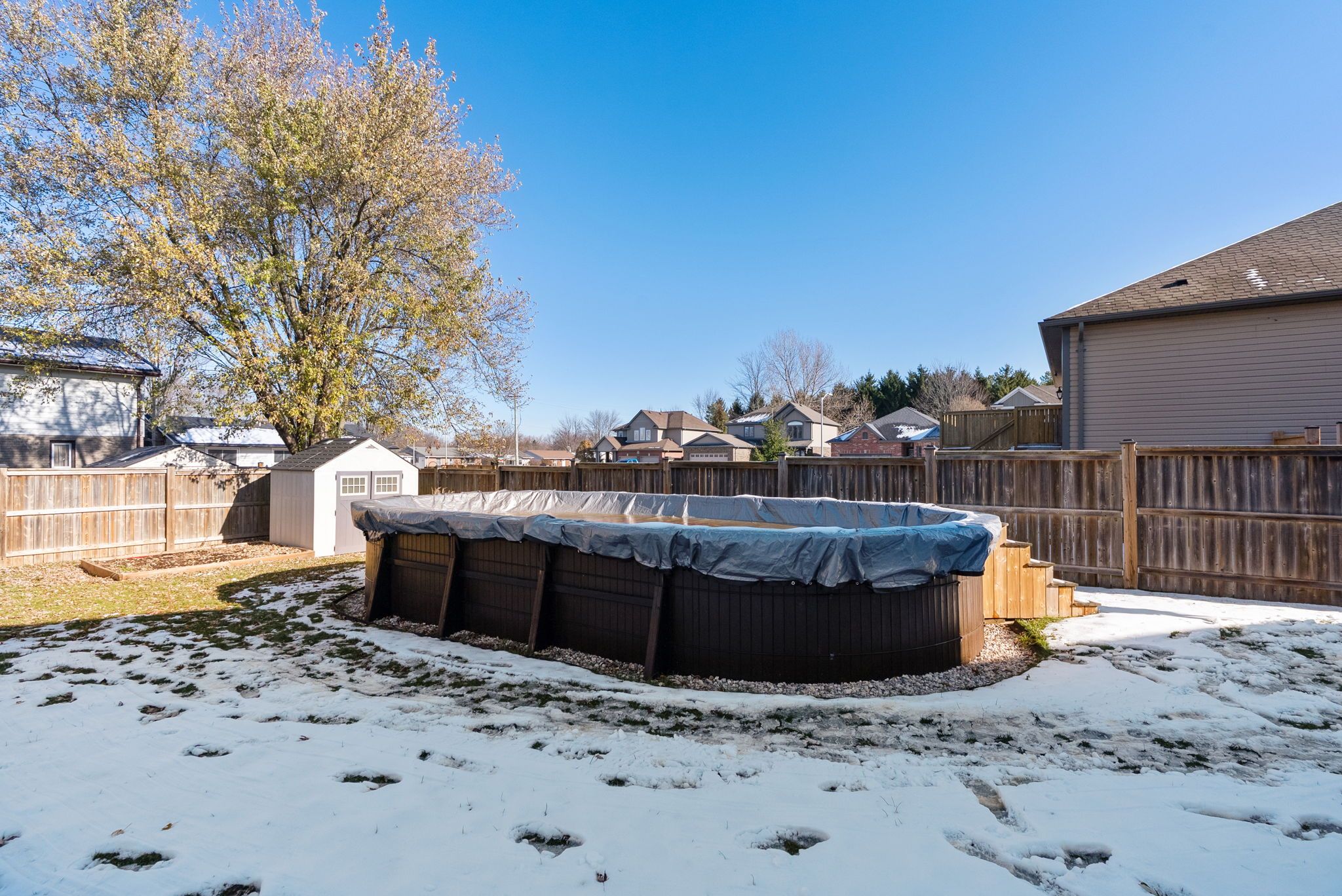 Welcome to this beautiful timothy custom-built home located in the highly sought-after saintsbury estates in lucan. Built when lots were larger, this property sits on an oversized lot crafted by a high-end builder and designed with young families in mind. Inside, the spacious open-concept main floor features tile flooring that flows through the foyer, dining area, and kitchen. The kitchen offers exceptional functionality with generous counter space, a pantry, and plenty of extra cabinetry. Bright natural light fills the dining room, complete with patio doors leading to the backyard deck. The main floor continues with a warm and inviting living room showcasing a large front window, a nicely sized laundry room with recent shelving upgrades, a convenient 2-piece bathroom, and access to the attached two-car garage. Upstairs, you'll find two comfortable bedrooms and a large cheater bathroom leading to the impressive primary bedroom, which includes a walk-in closet. The basement is mostly finished, offering a cozy recreation room with brand-new carpet and a utility/storage area with ample space. Outside, the fully fenced, oversized backyard is perfect for family fun and entertaining. Enjoy the deck, relax in the hot tub, or cool off in the 13x25 oval above-ground pool featuring a stylish wood exterior. A mounted tv near the deck lets you catch the game from the pool or hot tub-your own personal outdoor oasis. This home has wonderful curb appeal with a double-wide concrete driveway and a beautifully landscaped front yard. You'll love living in lucan, just 20 minutes from london and home to a new grocery store, restaurants, shopping, and outstanding community amenities, including soccer fields, baseball diamonds, a community centre, and a hockey arena. Book your showing today before this exceptional home in lucan's most desirable subdivision is gone!