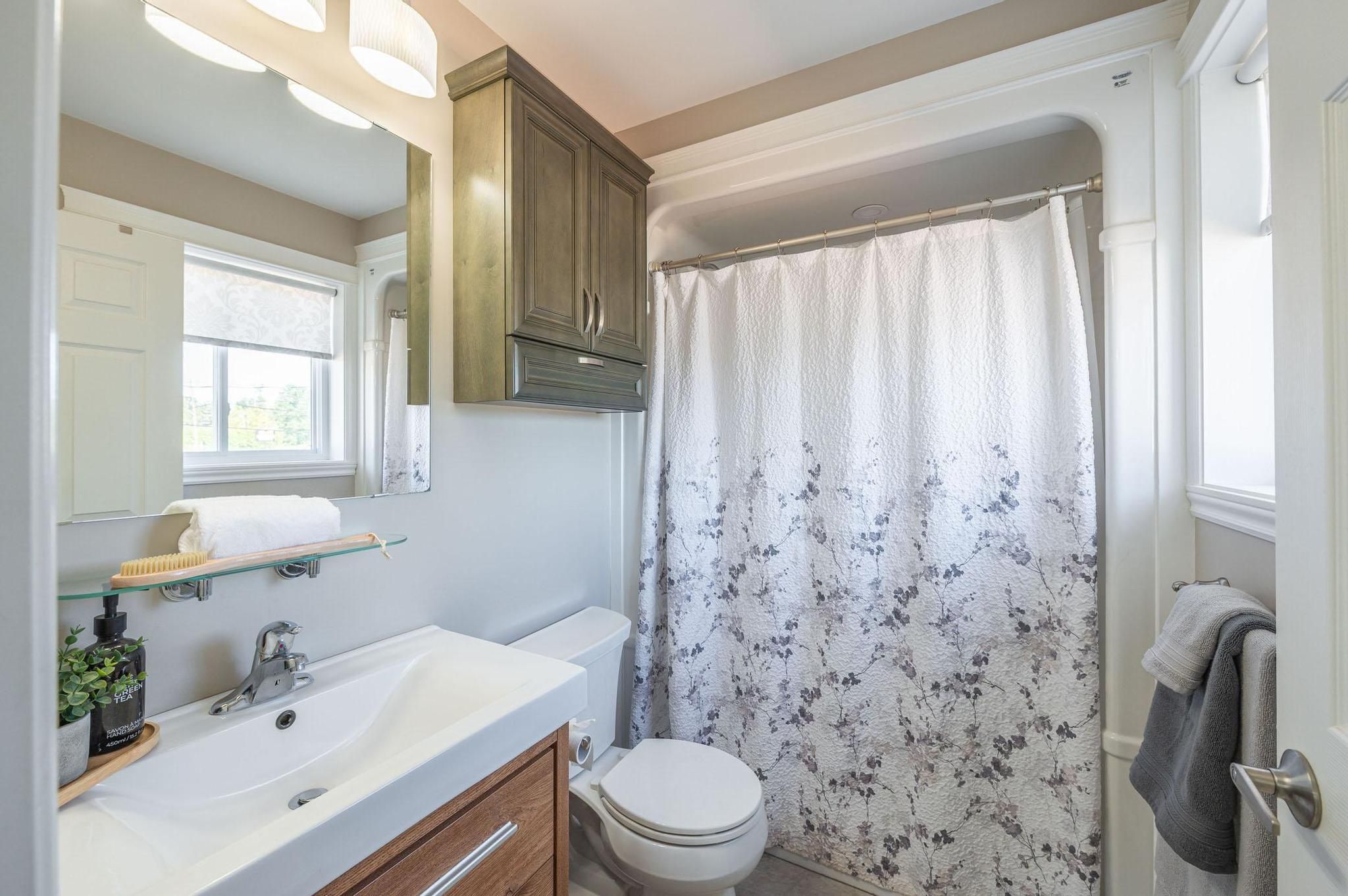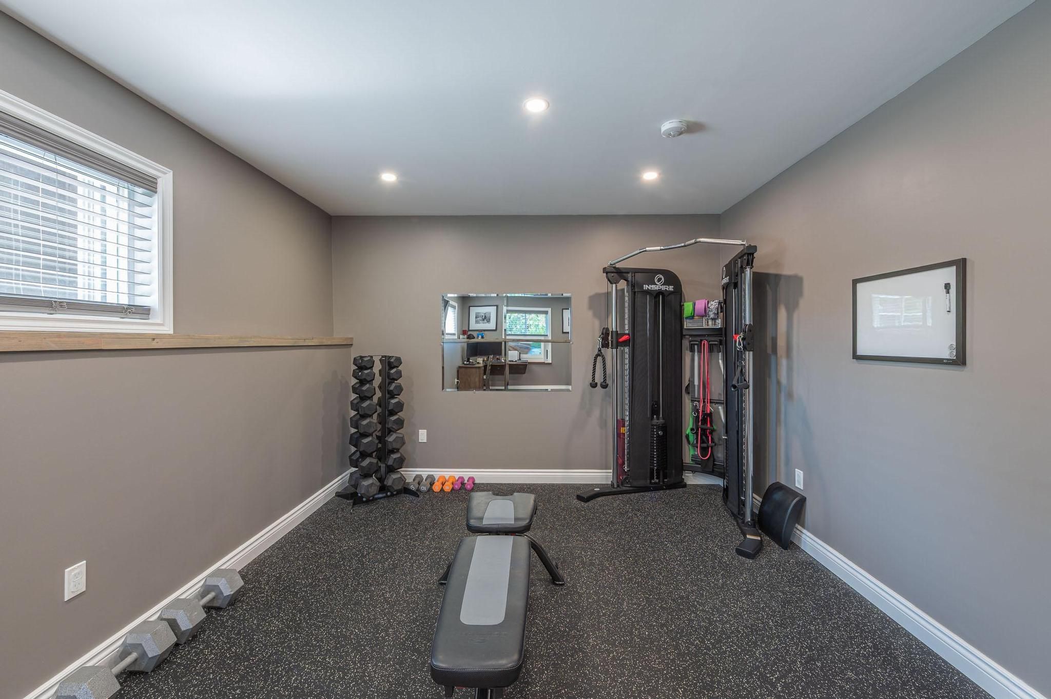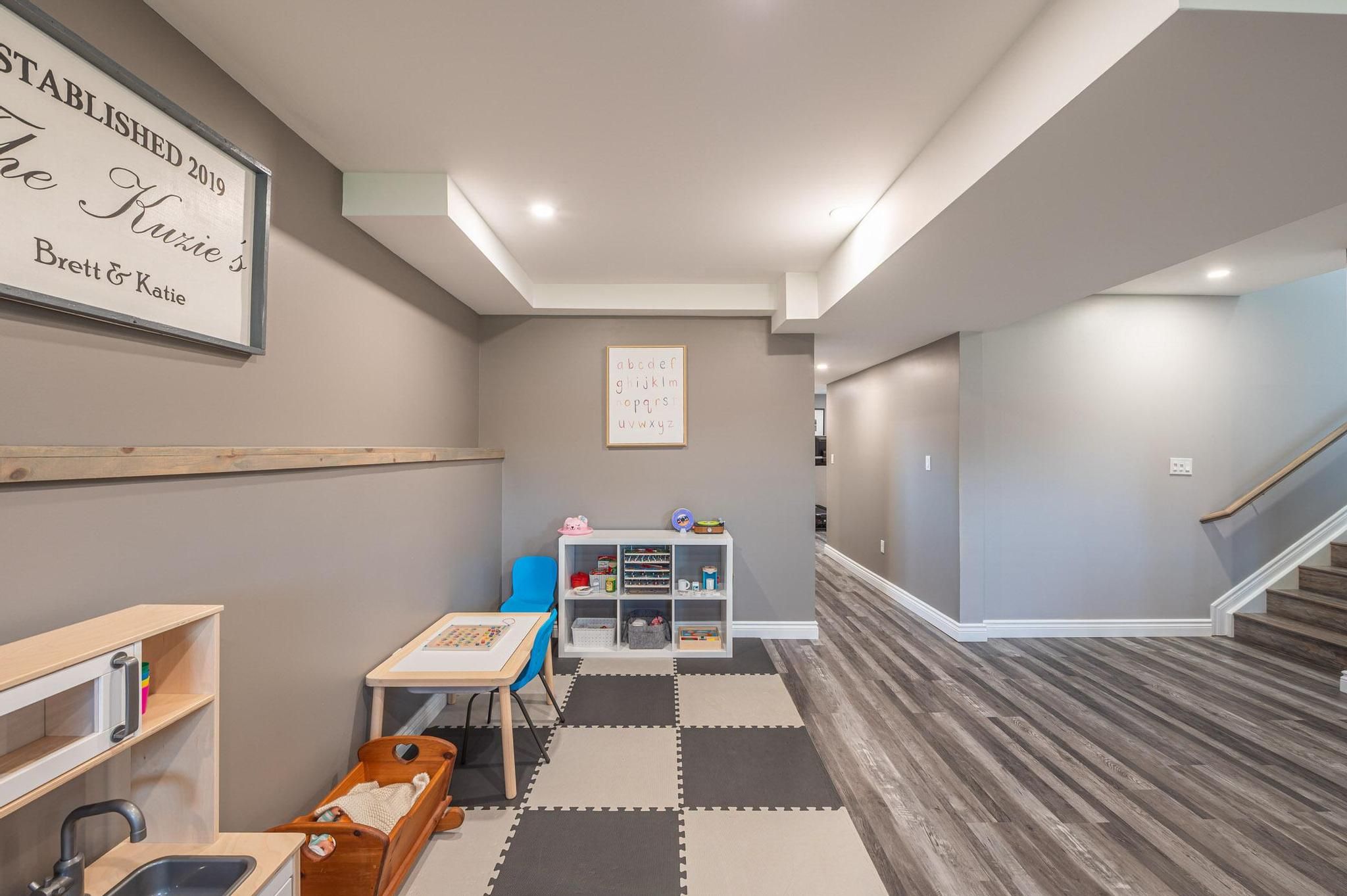 • Finished basement with family room, recreation space, and extra bathroom.