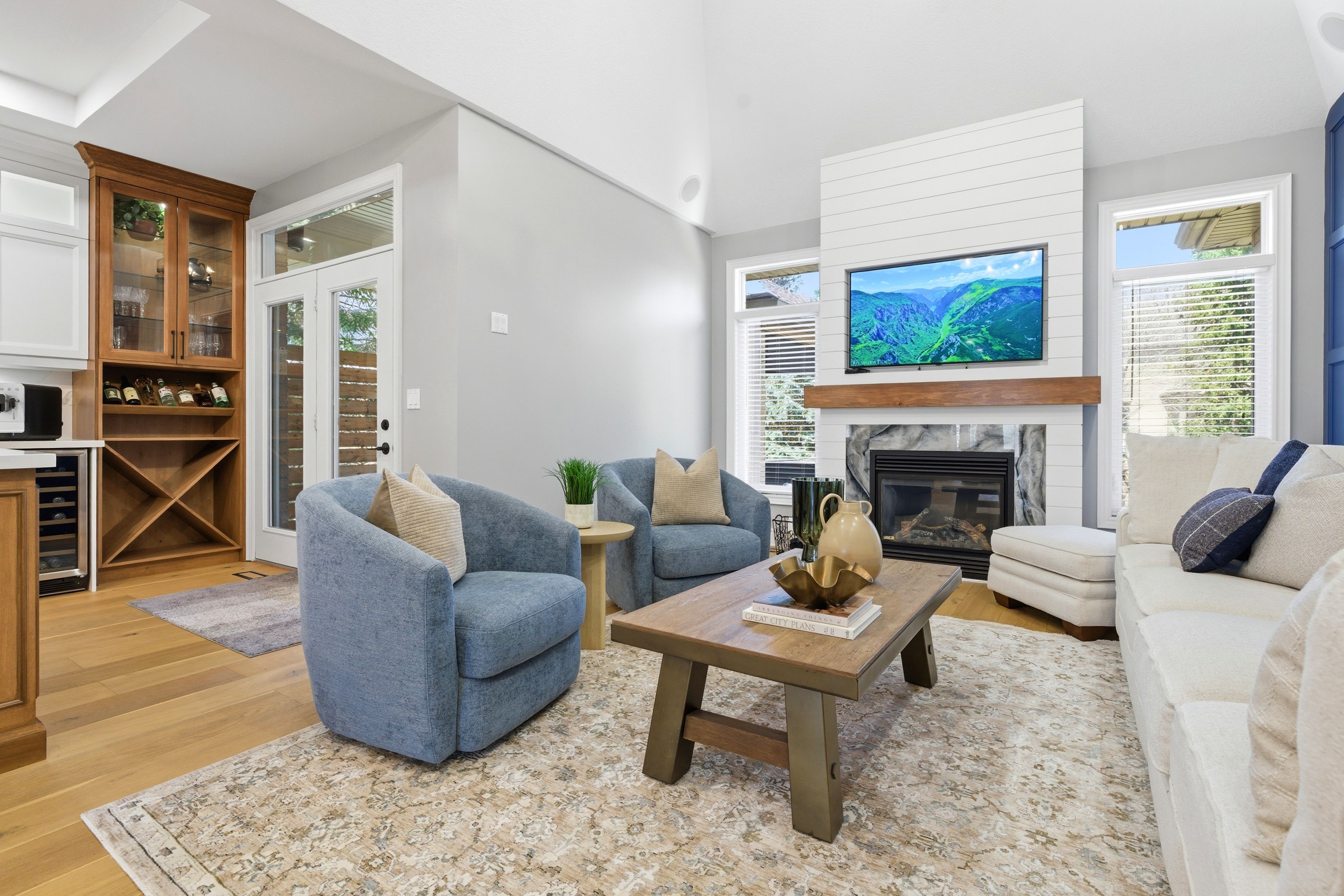 • Private backyard oasis with swim spa and mature trees, perfect for summer evenings.
