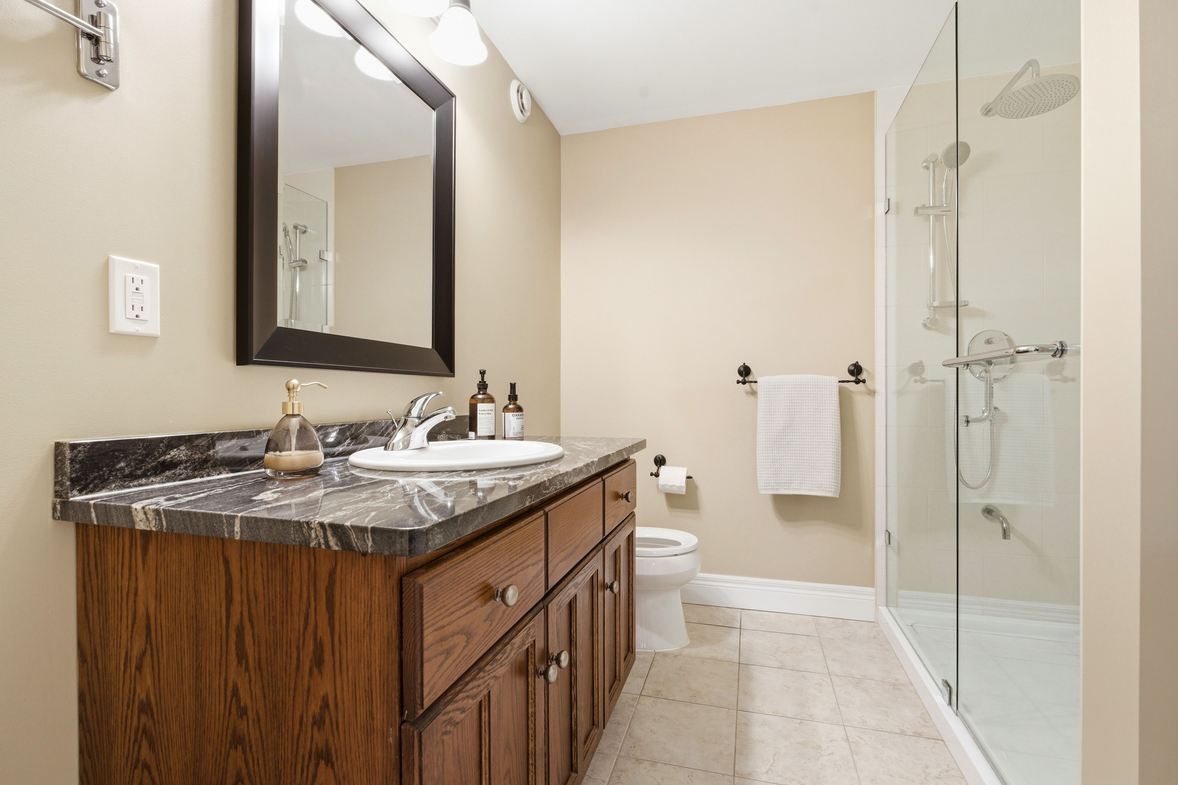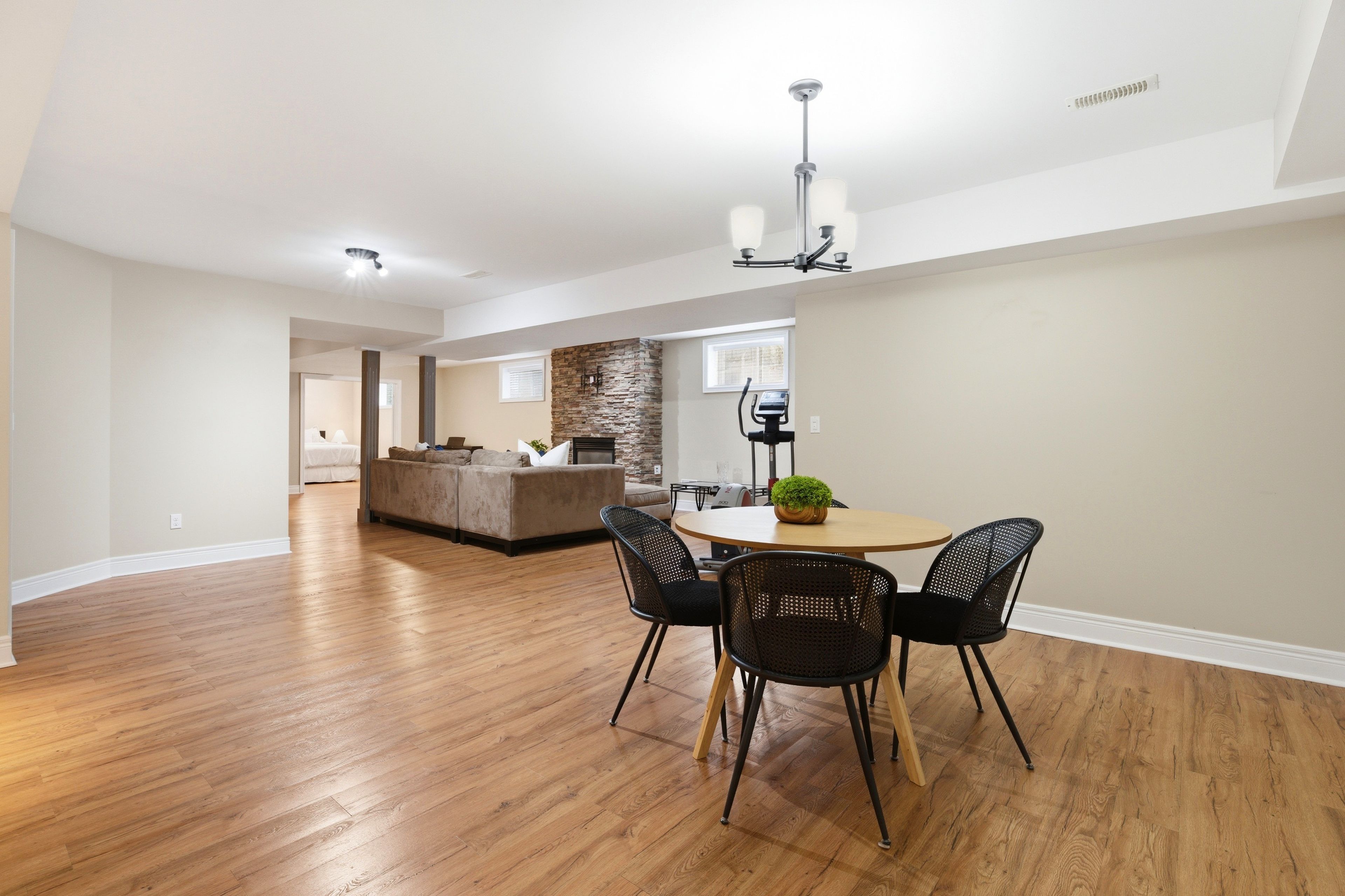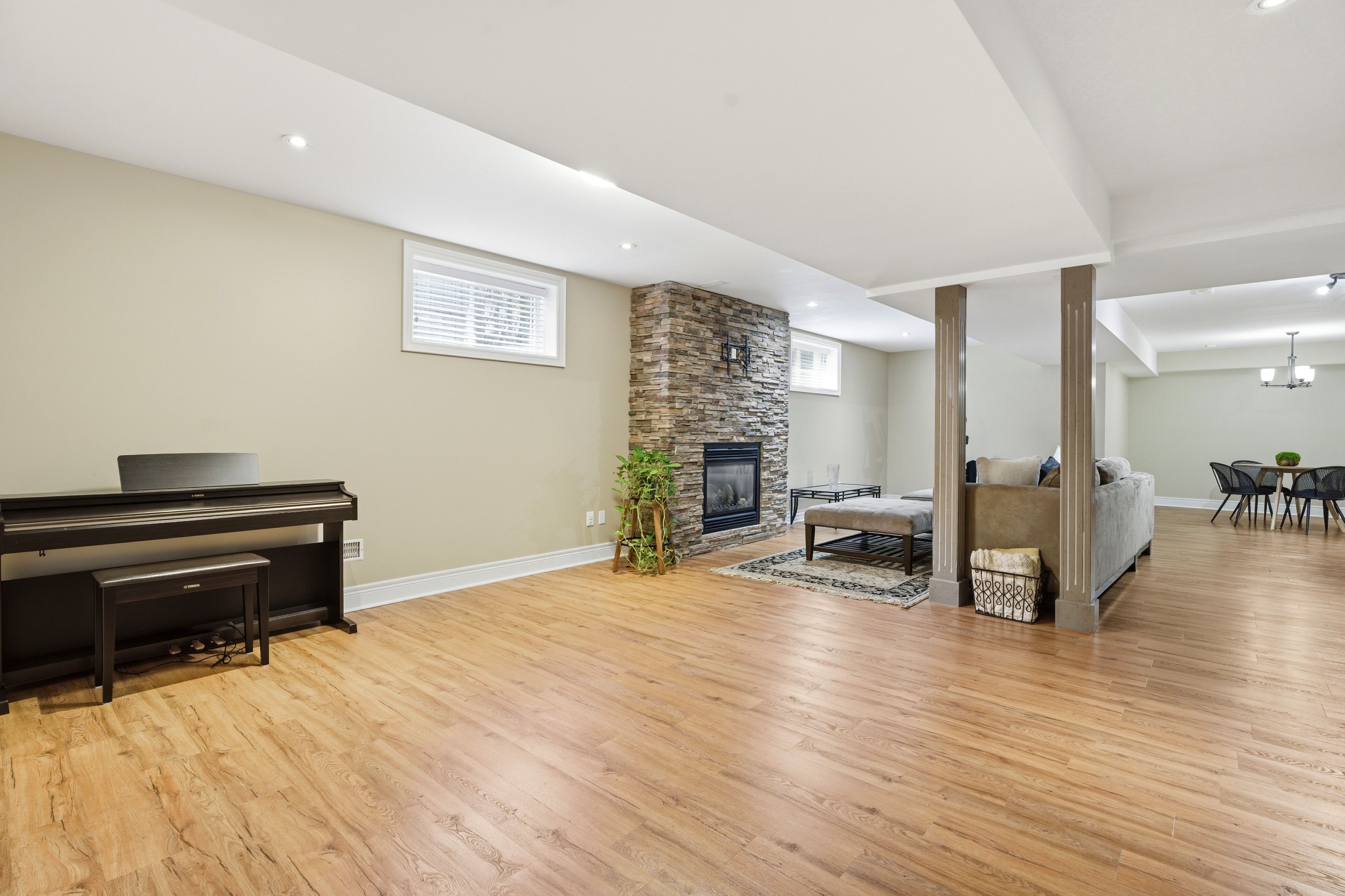 • Finished basement with separate entrance, full bath, and rec room for versatility.