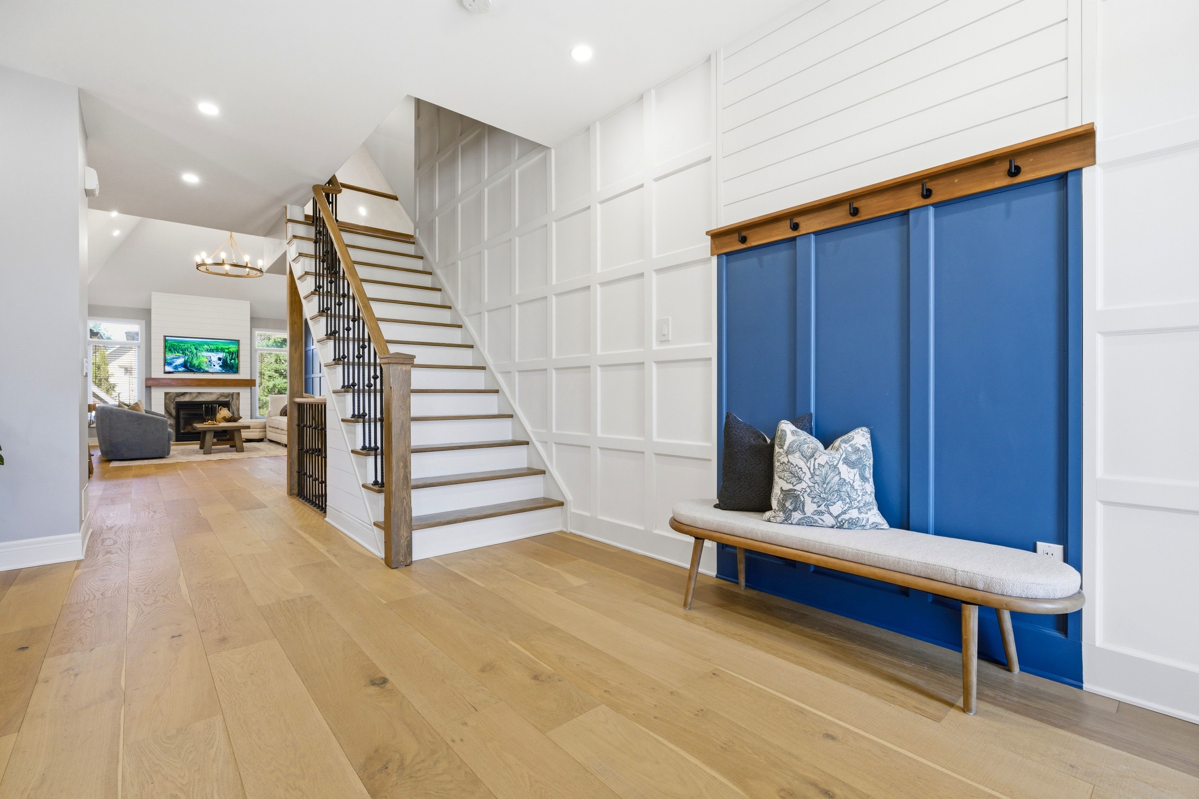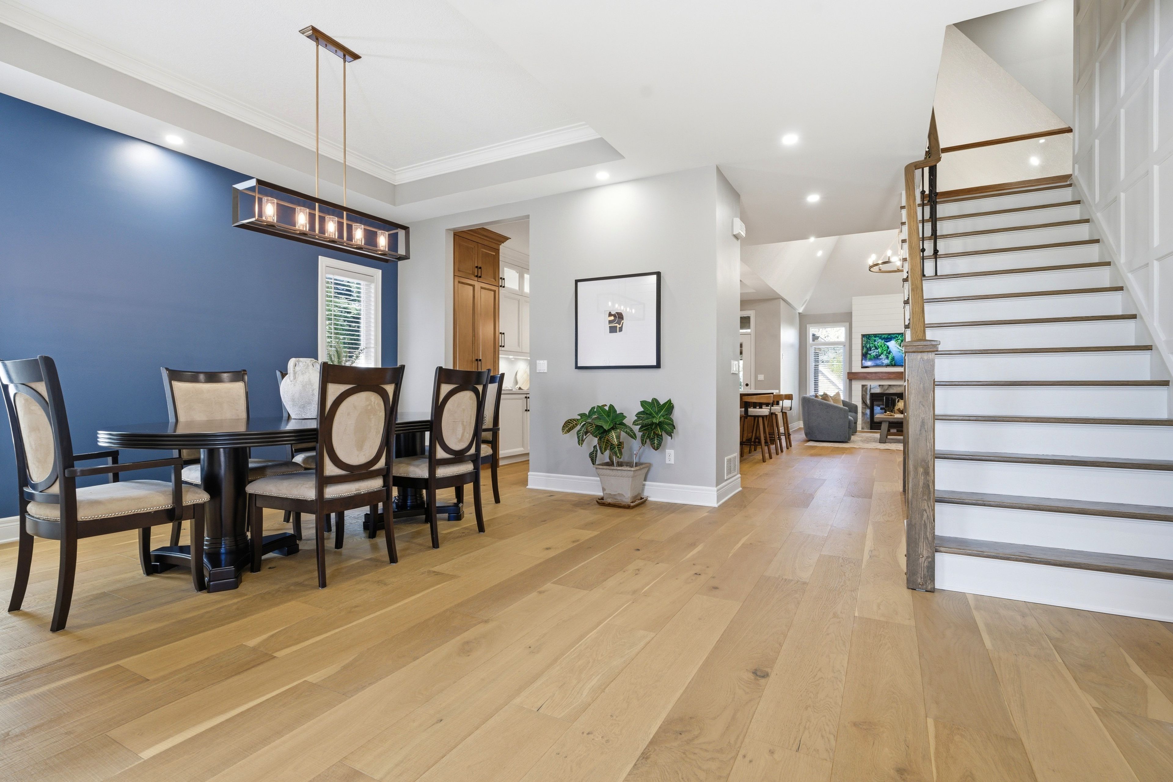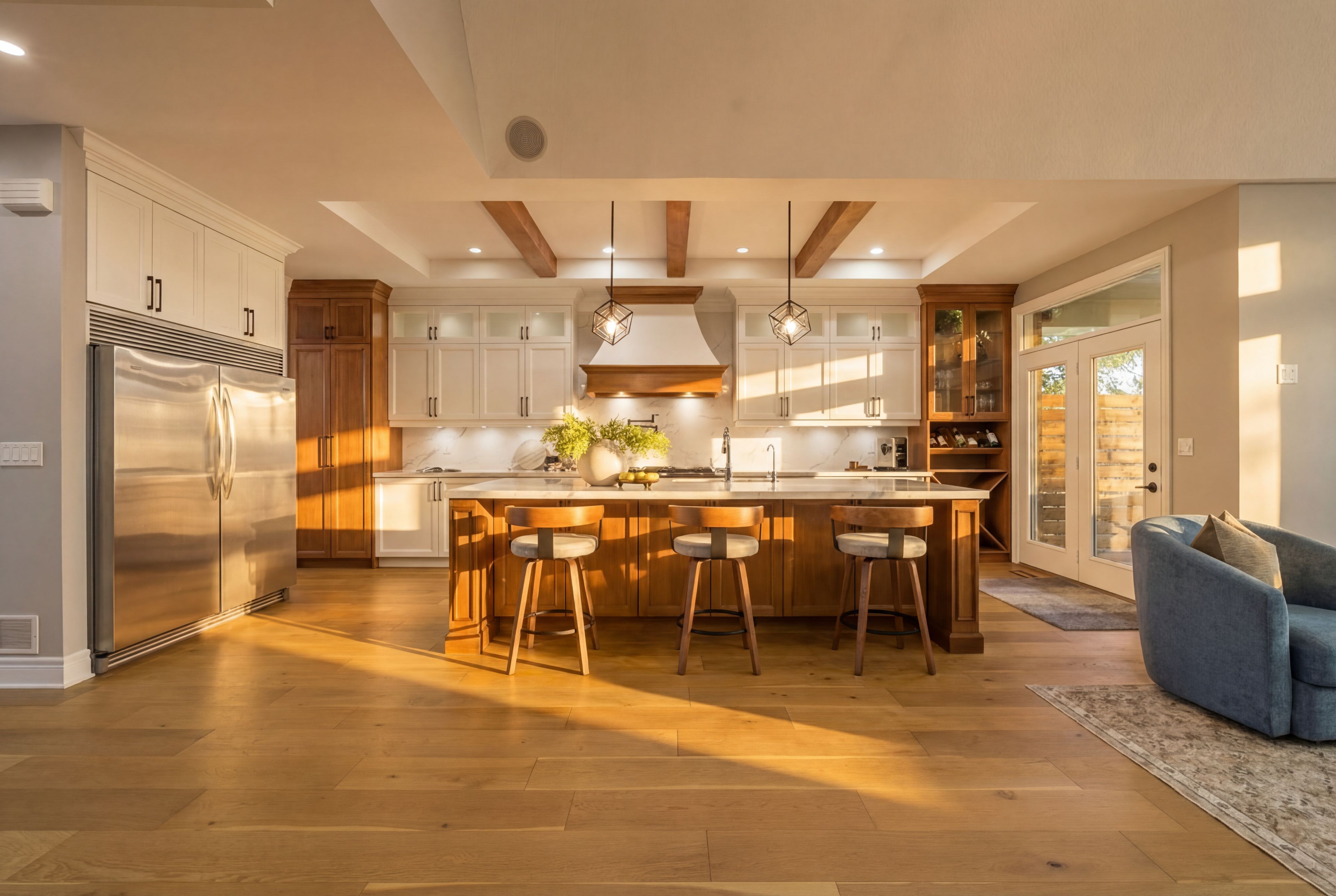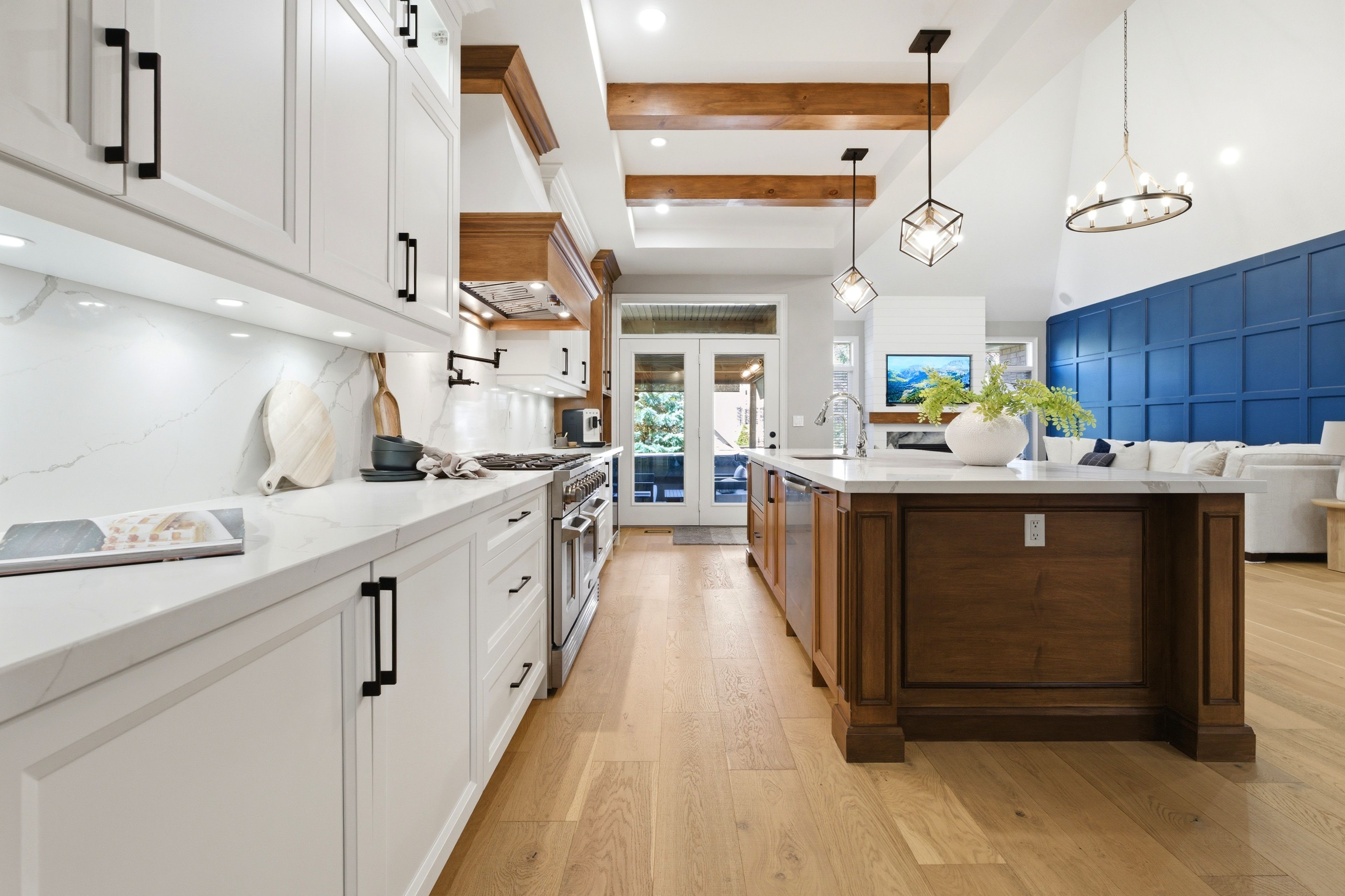 • Spacious kitchen featuring a 10-foot quartz island and professional-grade appliances.