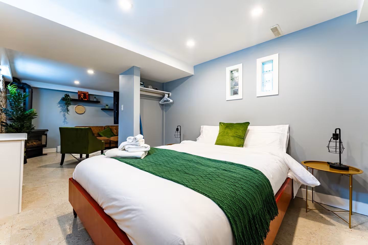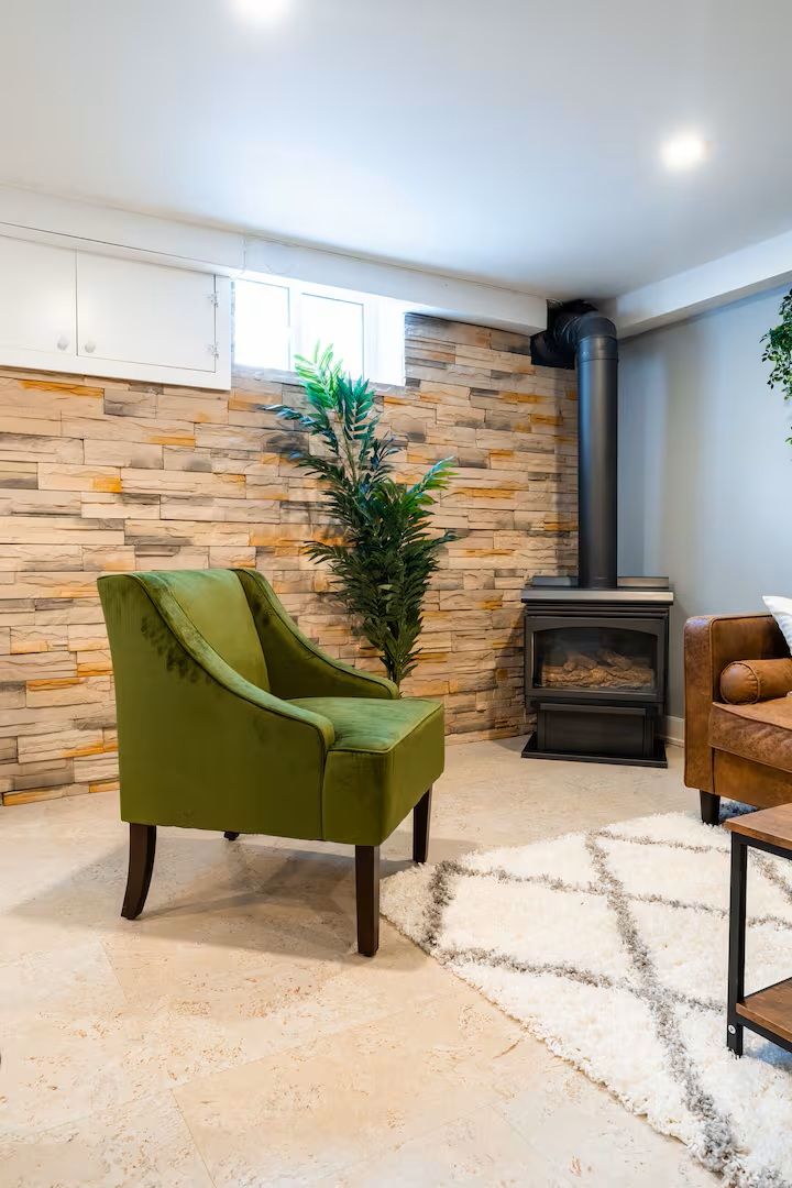 • Professionally finished lower unit featuring a gas fireplace and cork flooring.