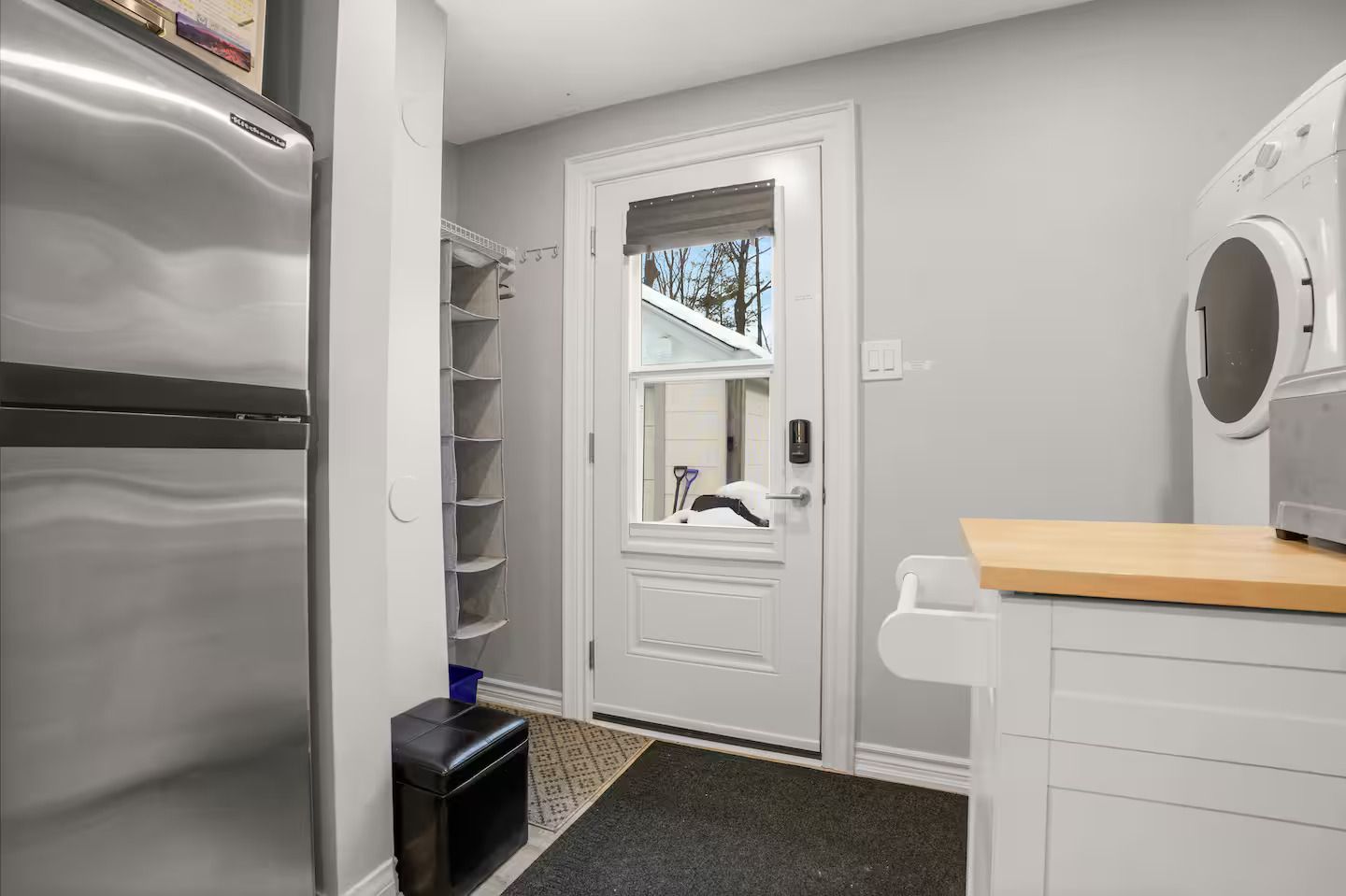 • Private backyard backing onto Woodland Park, perfect for outdoor enjoyment.
