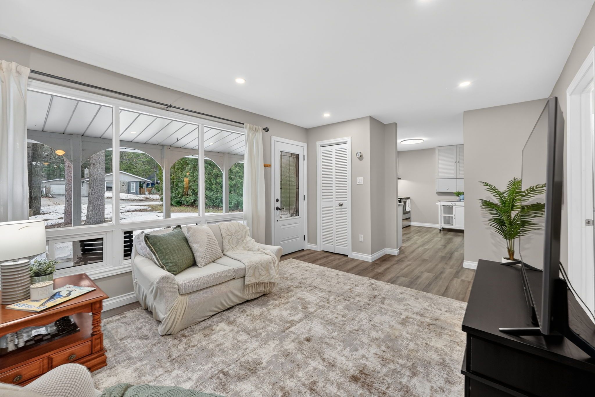 Adorable, turn-key bungalow nestled on a massive 50 x 150 ft flat lot-perfect for first-time home buyers or anyone looking to enjoy easy, low-maintenance living. This well-kept home showcases true pride of ownership throughout, featuring bright, airy interiors with pot lights and durable laminate flooring (no carpet!). The spacious layout includes a large bathroom and comfortable living spaces ready to move right in-no renovations needed. Step outside to a wrap-around deck overlooking mature trees, complete with a cozy firepit-ideal for relaxing evenings or entertaining. The east-facing backyard is perfect for enjoying peaceful morning sun with your coffee while staying comfortably shaded in the afternoons-ideal for summer lounging and outdoor dining. The long driveway and 10' x 24' carport provide parking for 4+ vehicles with ease. Major updates have already been taken care of offering peace of mind for years to come. Located just a 5-minute walk to wasaga beach area 6, you'll enjoy quick access to one of the world's longest freshwater beaches, known for its soft sand, shallow waters, and stunning sunsets. Whether it's summer beach days, biking trails, or year-round outdoor activities, this location truly offers the best of wasaga beach living. *extras* crawl space spray foamed (2025) water treatment system (2025) new washer & dryer (2026) flooring (2020), kitchen counters (2017) bathroom reno (2018); front door (2019); central a/c (2019) enlarged driveway (2017); natural gas furnace (2016), metal roof*