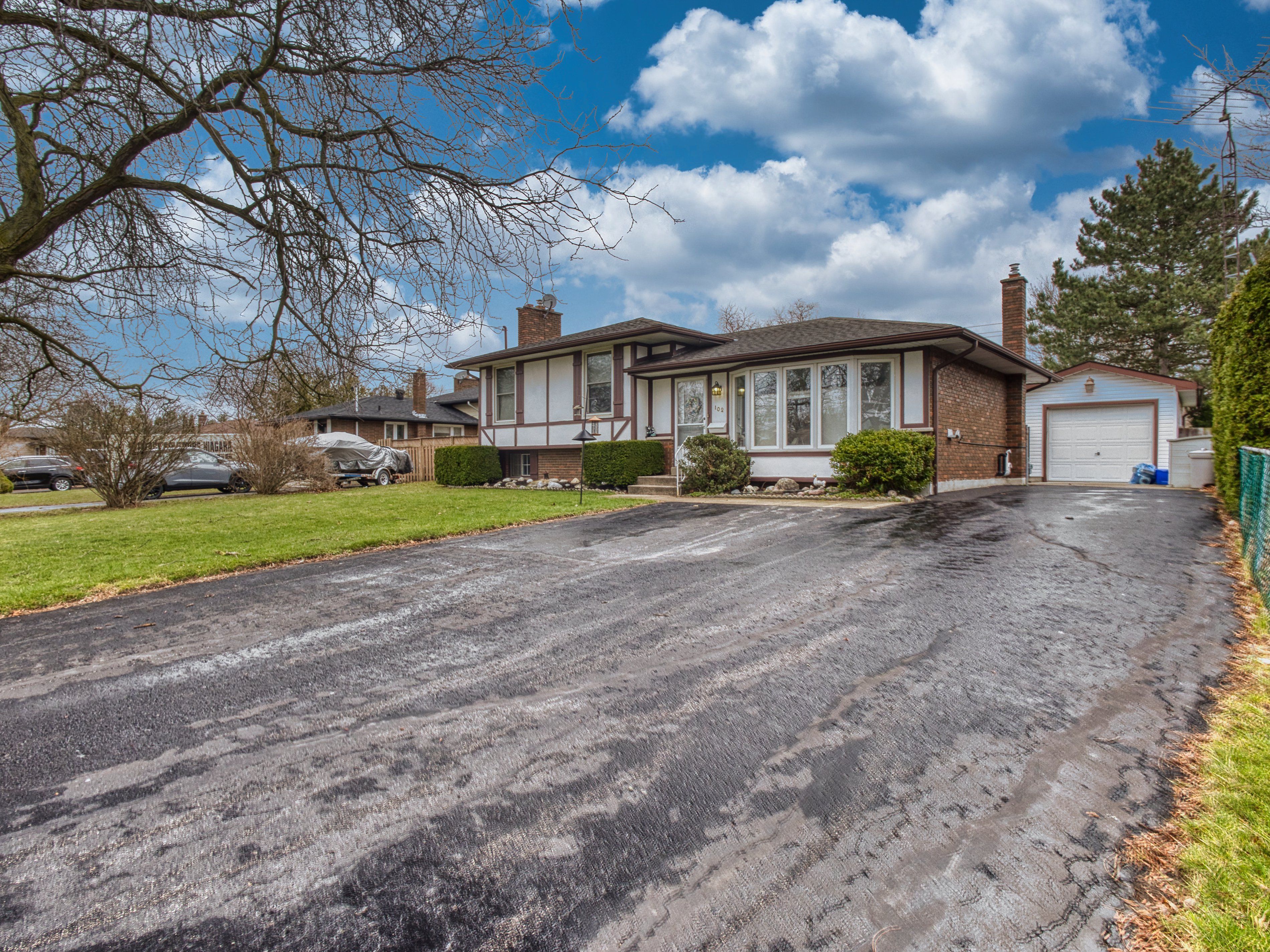 When you pull in the driveway of this tudor-style 4-level side-split, you know you have arrived! Great curb appeal on a large lot with no direct rear neighbors. Large fenced yard great for pets and games or just relax on your patio with views of the ships sailing through the welland canal. Inside offers 4 levels of finished living space. The front door welcomes you into the main level living room/dining room and kitchen. Upper level has 2 bedrooms and a 4pc bathroom (upper level was originally 3 bedrooms and is easily converted). Lower level offers an office/den + rec room with gas fireplace. The basement is finished with another office/den, 3pc washroom, laundry and utility area. 120 amp electrical panel. There is a separate entrance at the back of home, for convenience, or use it for a potential in law setup. To top it all off, the insulated and heated detached garage built in 2008 makes for a great mancave (or sheshed) or just use it for extra parking. Must see!