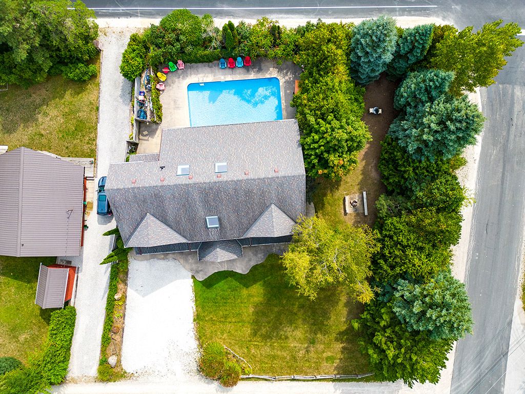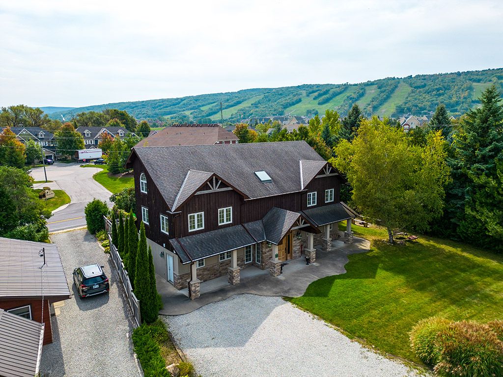 Client remarkslocated on a private lane, this architecturally designed chalet offers refined living within walking distance to blue mountain resort and monterra golf. Situated on a 1/4 acre lot, this property features a private inground pool, spa amenities including a sauna, wet room, and steam shower, with no additional fees. The spacious foyer leads to a gourmet kitchen with quartz countertops and an oversized island. The main level features a primary bedroom with a luxury ensuite and walk-in closet. The great room boasts vaulted ceilings, a stone gas fireplace, and a walkout to a covered deck overlooking the 27' x 40' pool. The side yard provides space for outdoor activities, while the upper level offers 5 additional bedrooms, a 5-piece bathroom, and a sauna. Close to hiking, skiing, and the amenities of blue mountain village, and just minutes from collingwood, this property offers year-round enjoyment.