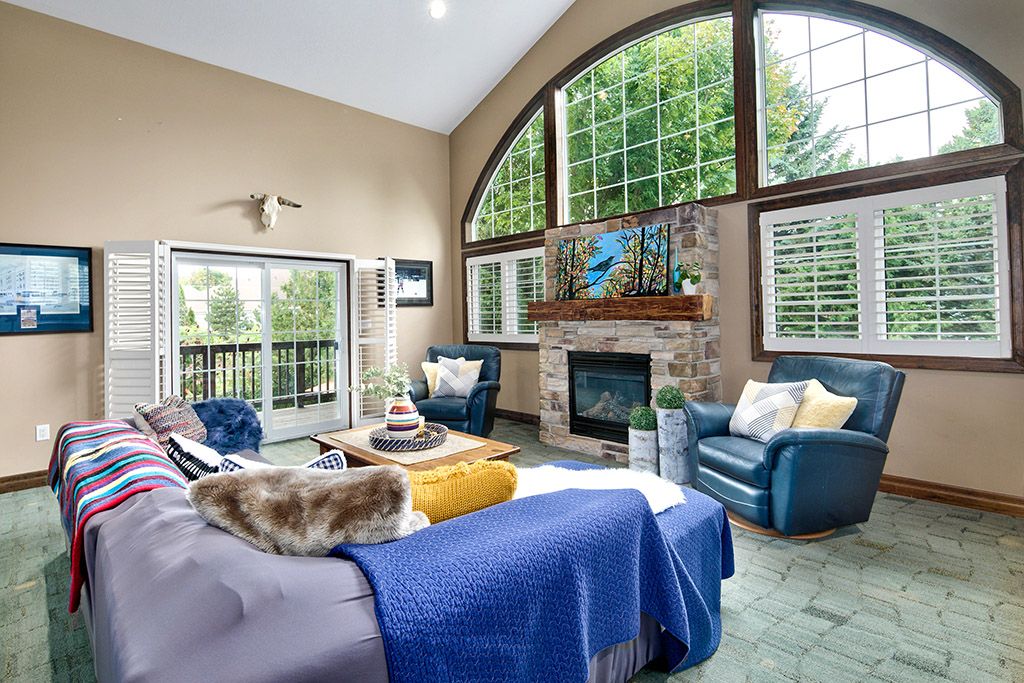 • Great room with vaulted ceilings and a stone gas fireplace.
