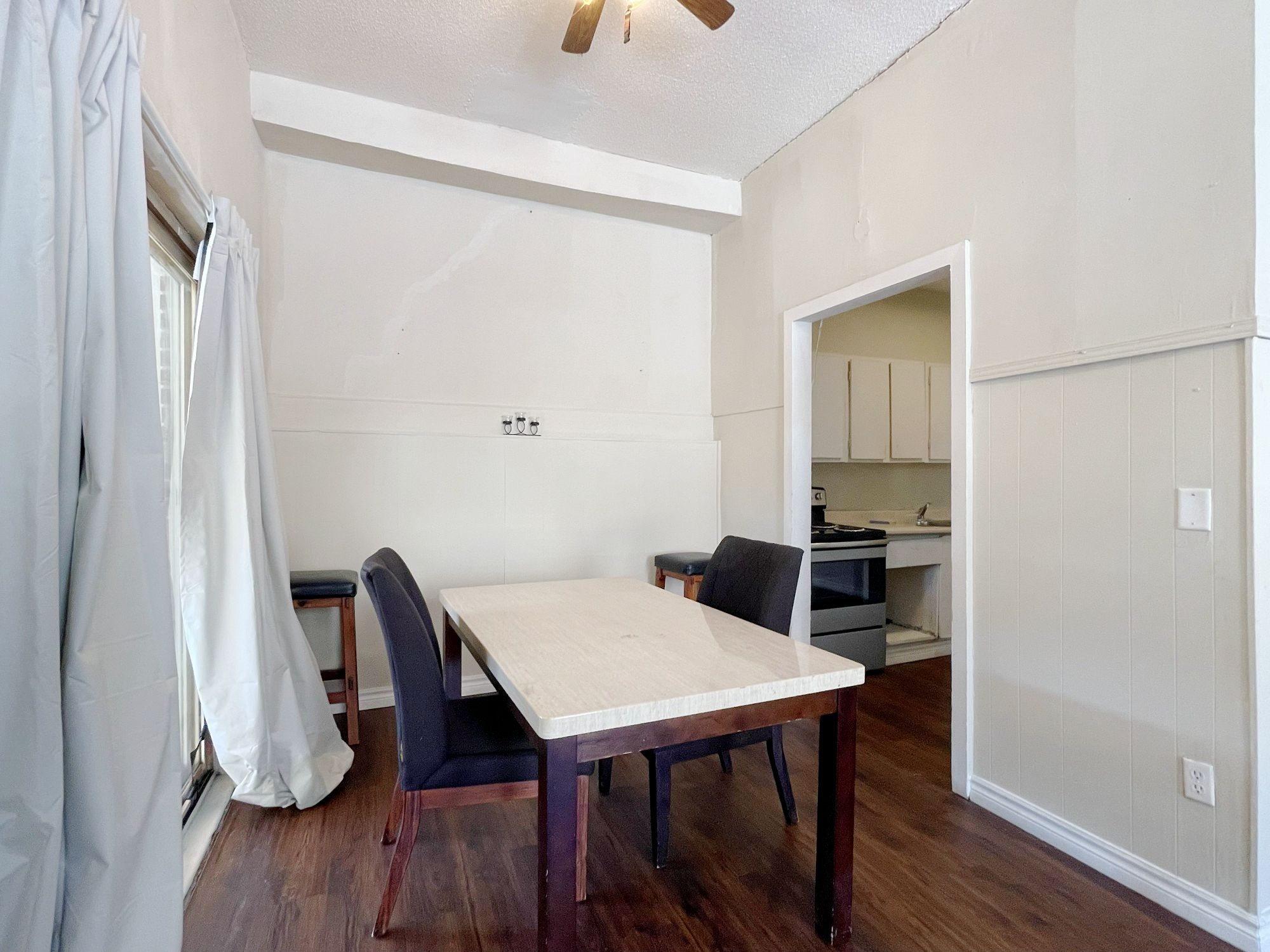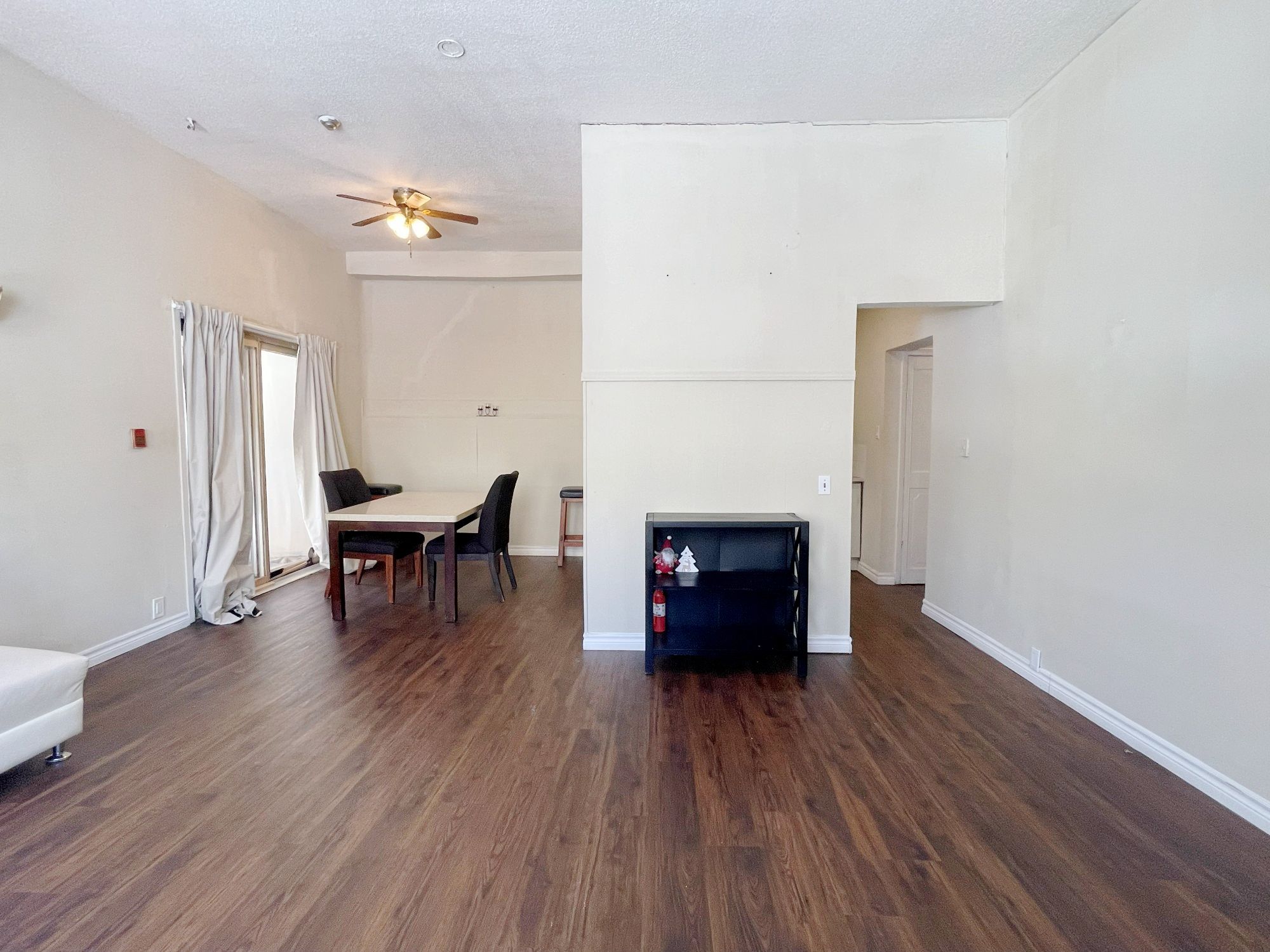 • Partially furnished option with a large living room and dining area.