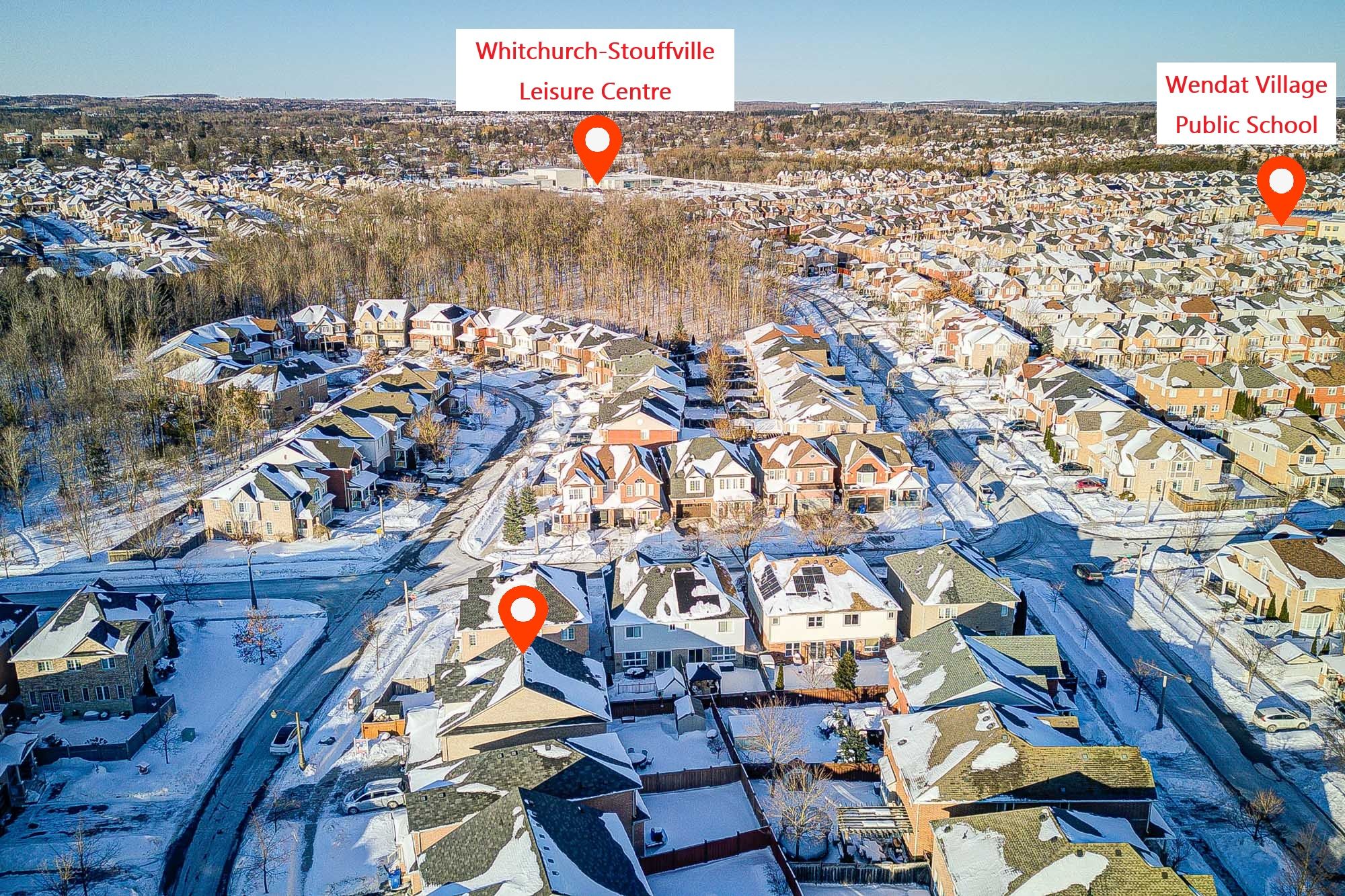 Welcome to 102 wilf morden rd, whitchurch-stouffville! Built by starlane home to a higher standard. This stunning 2,282 sq ft premium detached home offers exceptional space, brightness, and comfort in a quiet, family-friendly neighborhood. Proudly owned by the original owner and meticulously maintained, 4+2 bedroom, 4-bathroom residence features a double garage plus driveway parking for three. Enjoy an open-concept layout with 9-ft ceilings, hardwood flooring throughout the main level, elegant wainscoting, pot lights, fresh paint, upgraded light fixtures, california shutters throughout, a double-door entry, and a cozy gas fireplace. The upgraded chef's kitchen is equipped with granite countertops, extended cabinetry, stone backsplash, gas stove, and stainless steel appliances, complemented by a sun-filled breakfast area with walk-out to beautifully interlocked front and backyard - perfect for entertaining and relaxing. Backyard shed for extra seasonal storage. The second floor offers a functional den area and stylish laminate flooring. The professionally finished basement includes two additional bedrooms, a 3-piece bathroom, laminate flooring, and pot lights - ideal for extended family or income potential. Recent upgrades & improvements: top-to-bottom renovation, upgraded bathrooms, iron metal balusters, attic insulation (2023), water softener, hot water tank (rental), and new ac (2025). Prime location: minutes to wendat village ps, stouffville district ss, parks, trails, library, leisure centre, go train, hwy 404, york-durham line, and 9th line. A perfect blend of luxury, functionality, and convenience - don't miss this incredible opportunity to call it home!