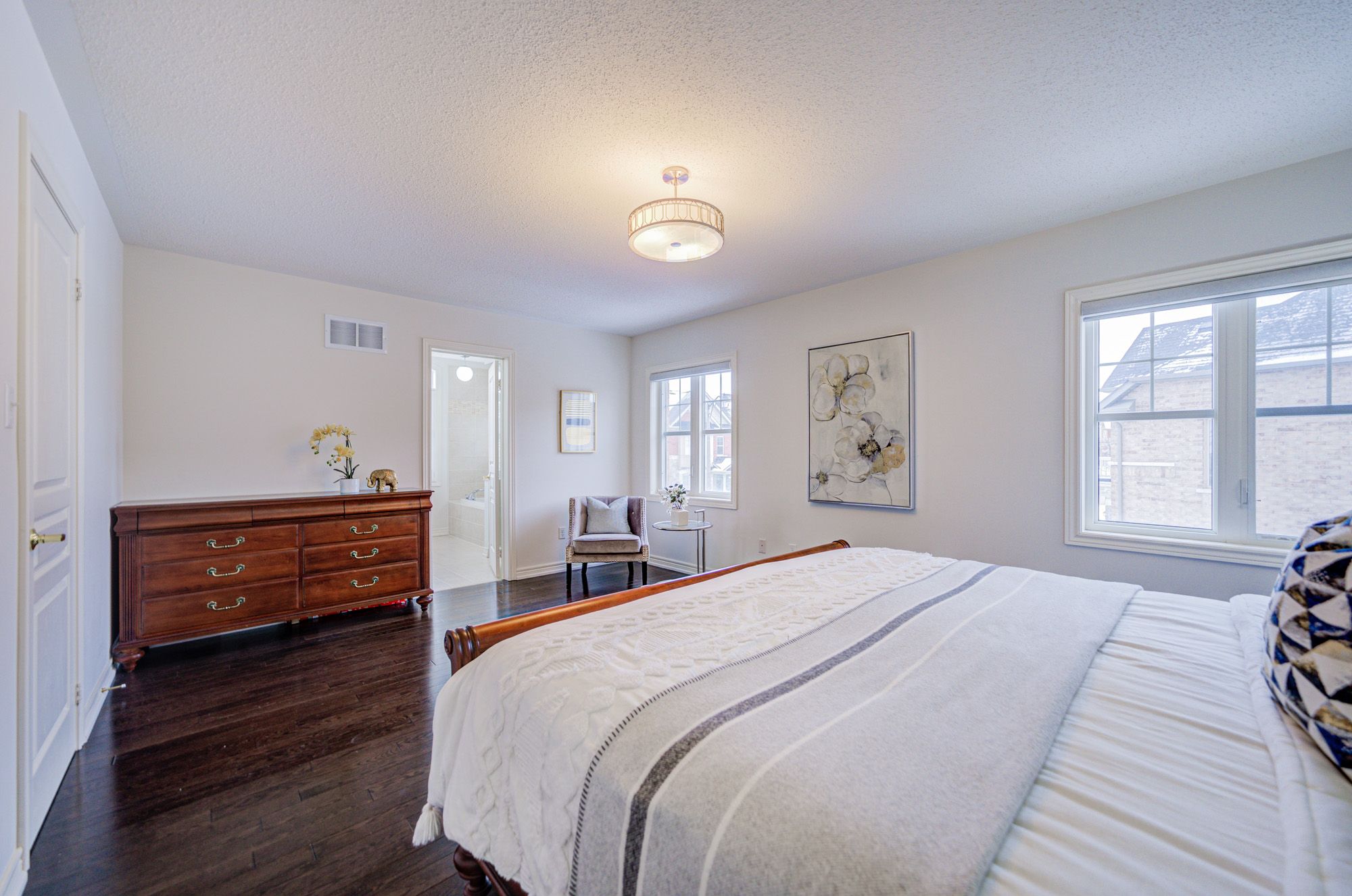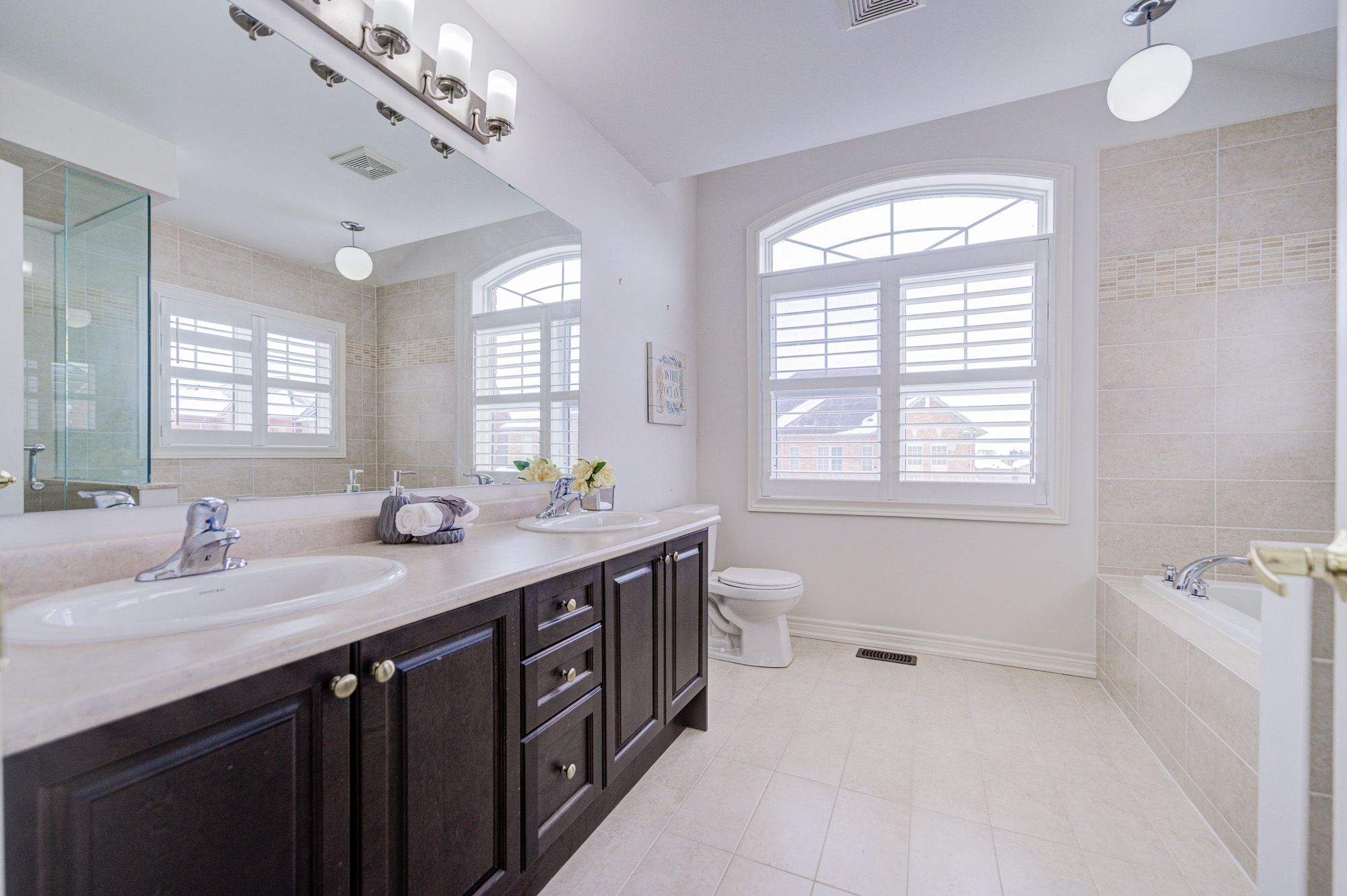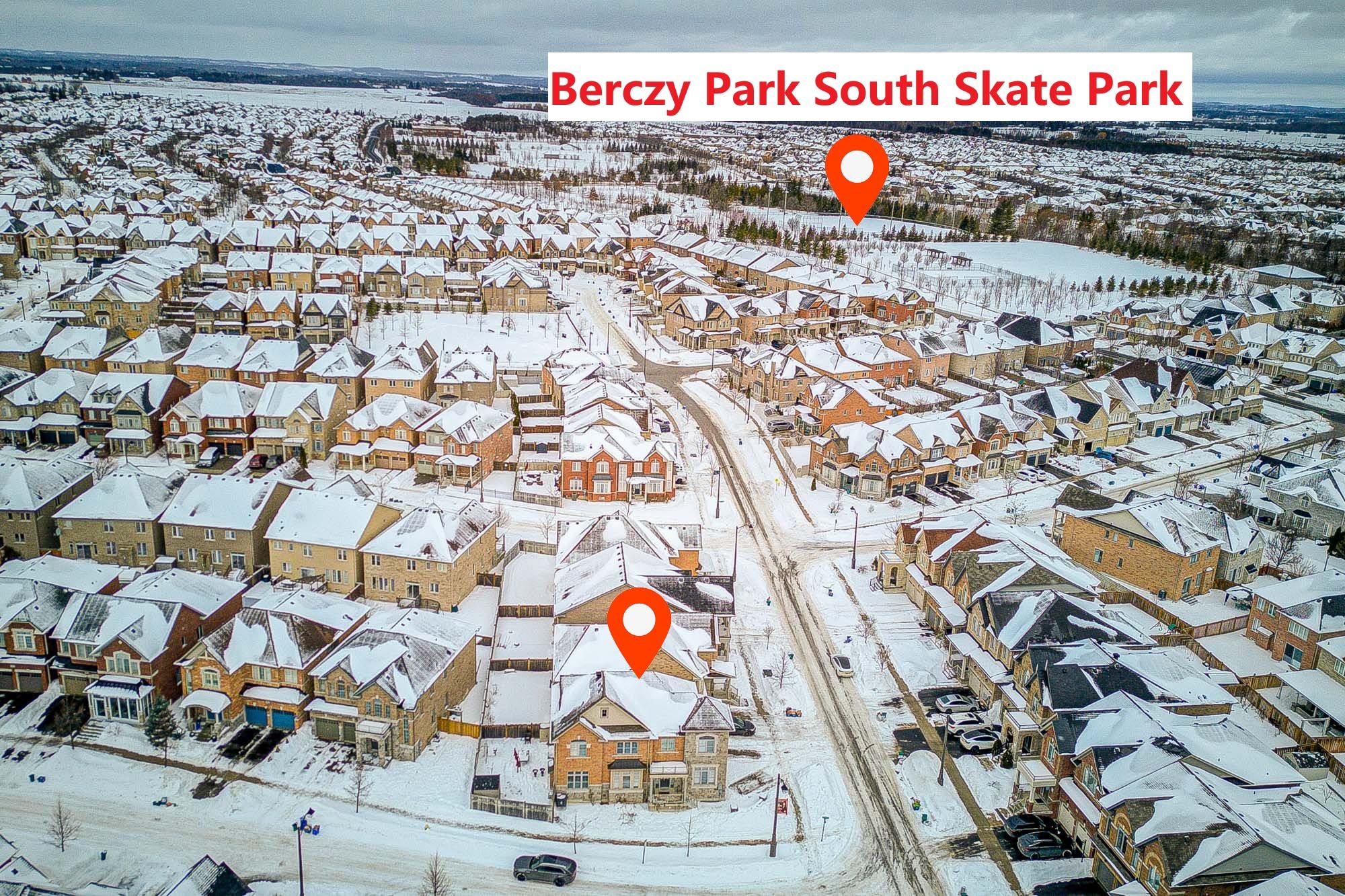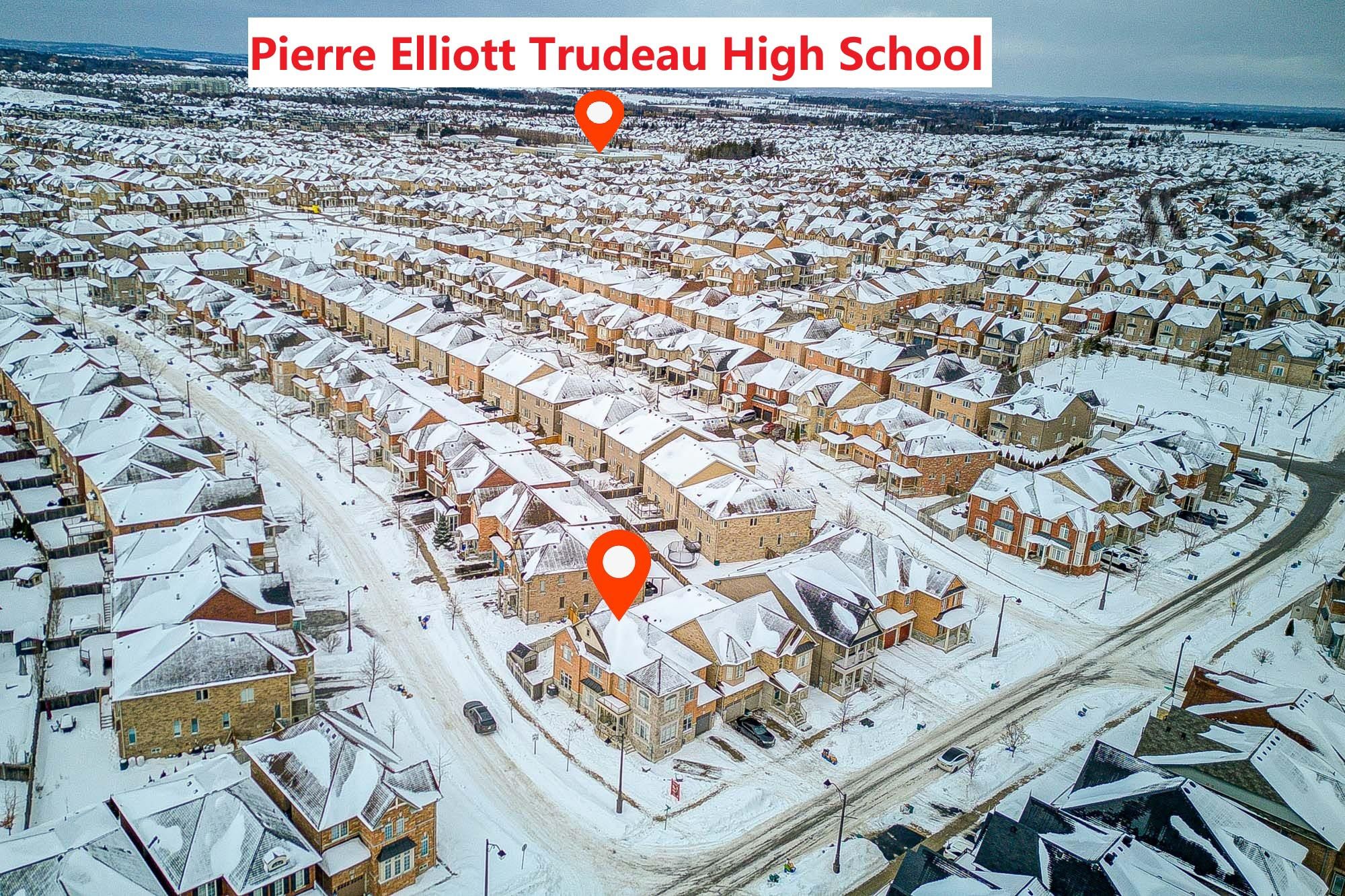 Walking distance to top-rated pierre elliott trudeau high school and beckett farm p. S., premium corner lot featuring over 2,500 sq ft above grade with 4 bedrooms layout, nestled on one of the most sought-after berczy community in markham. Gorgeous modern interior features designer upgrades everywhere, hardwood flooring thru-out, stone feature fireplace, high-end stainless steel appliances, upgraded window coverings, and custom interlock front and backyard, accommodating total 3 parkings. This exceptionally maintained, open concept home welcomes you into an open airy space with soaring ceiling, huge windows that flood the space with natural light. Main floor features a functional living room, a formal dining area, the open-concept family room with a cozy gas fireplace creates a warm and inviting atmosphere, perfect for gatherings and everyday living. The generous kitchen features large countertops, stylish backsplash, stainless steel appliances, and a center island overlooking the breakfast area with walkout to a spacious backyard, ideal for outdoor entertaining. Rarely offered 4 bedrooms model, including a private primary suite with walk-in closet and an ensuite. A second bedroom features a closet and its own ensuite bath access, while two additional spacious bedrooms share another bathroom. Top-ranked school district, close to hwy 7/404, main street unionville, go station, markville mall, 3 goodlife fitness nearby including 1 women goodlife fitness, grocery stores, restaurants, parks, and more.