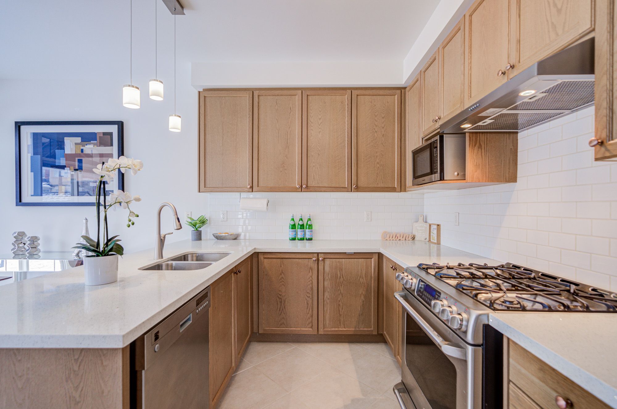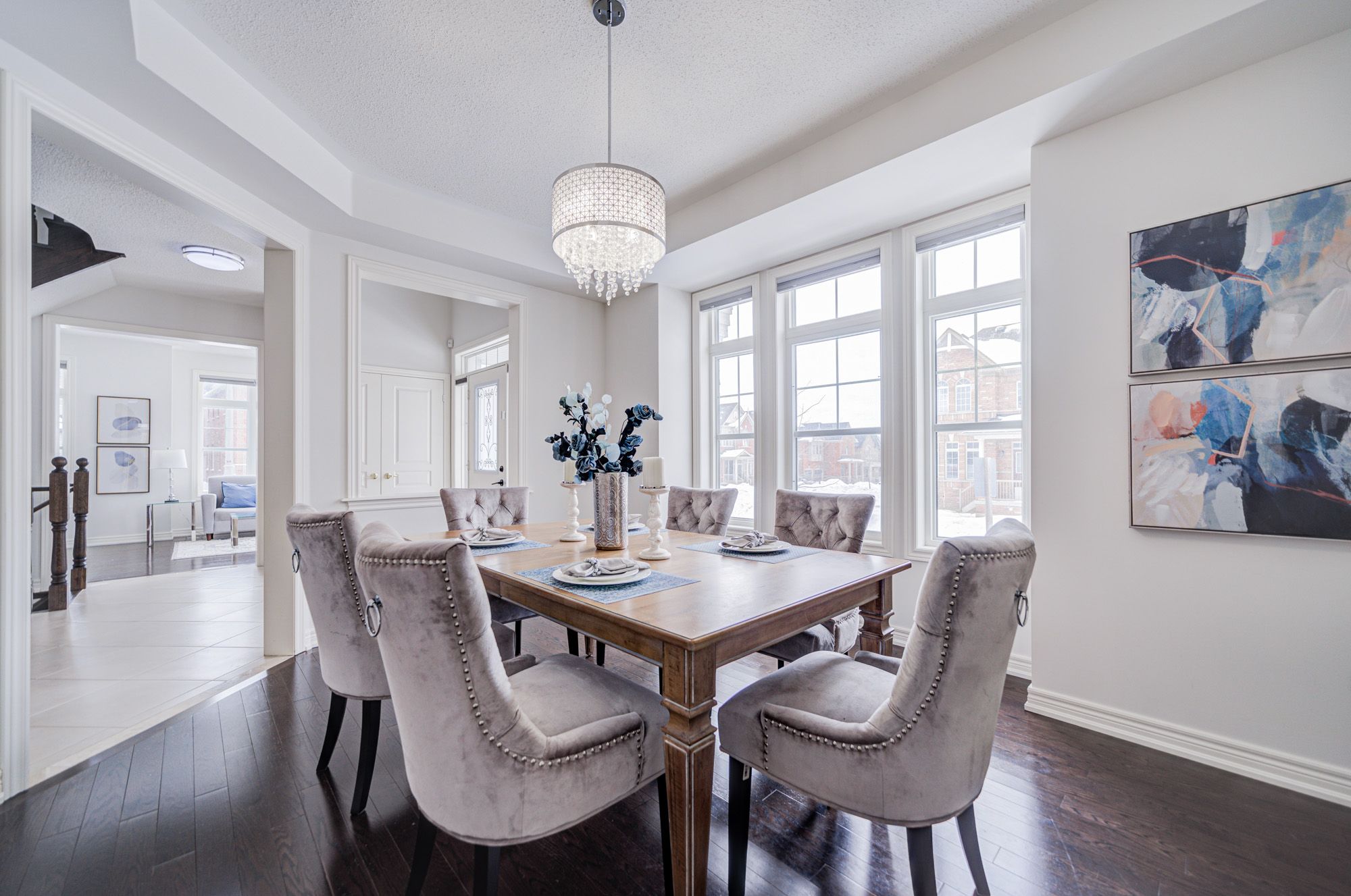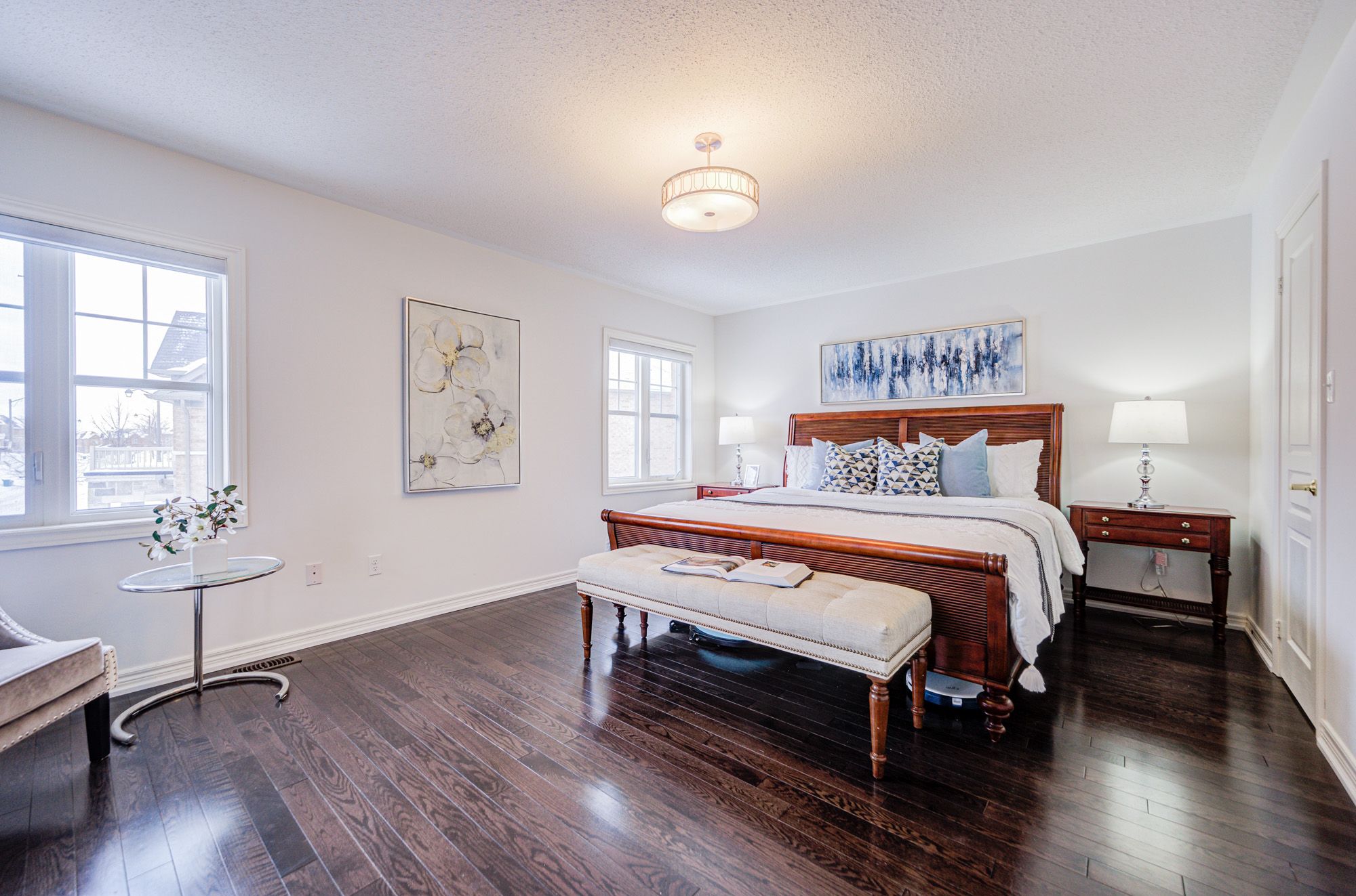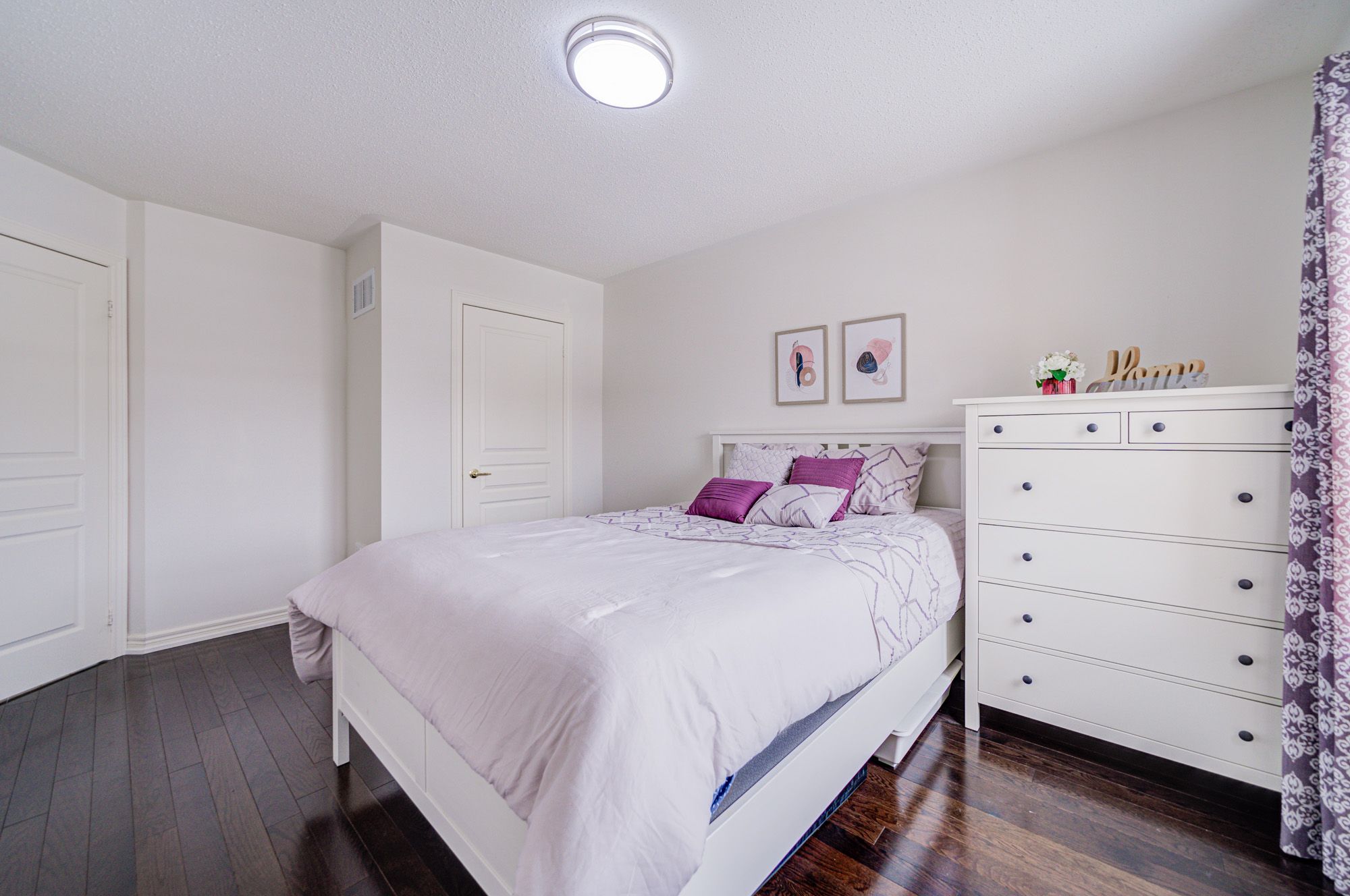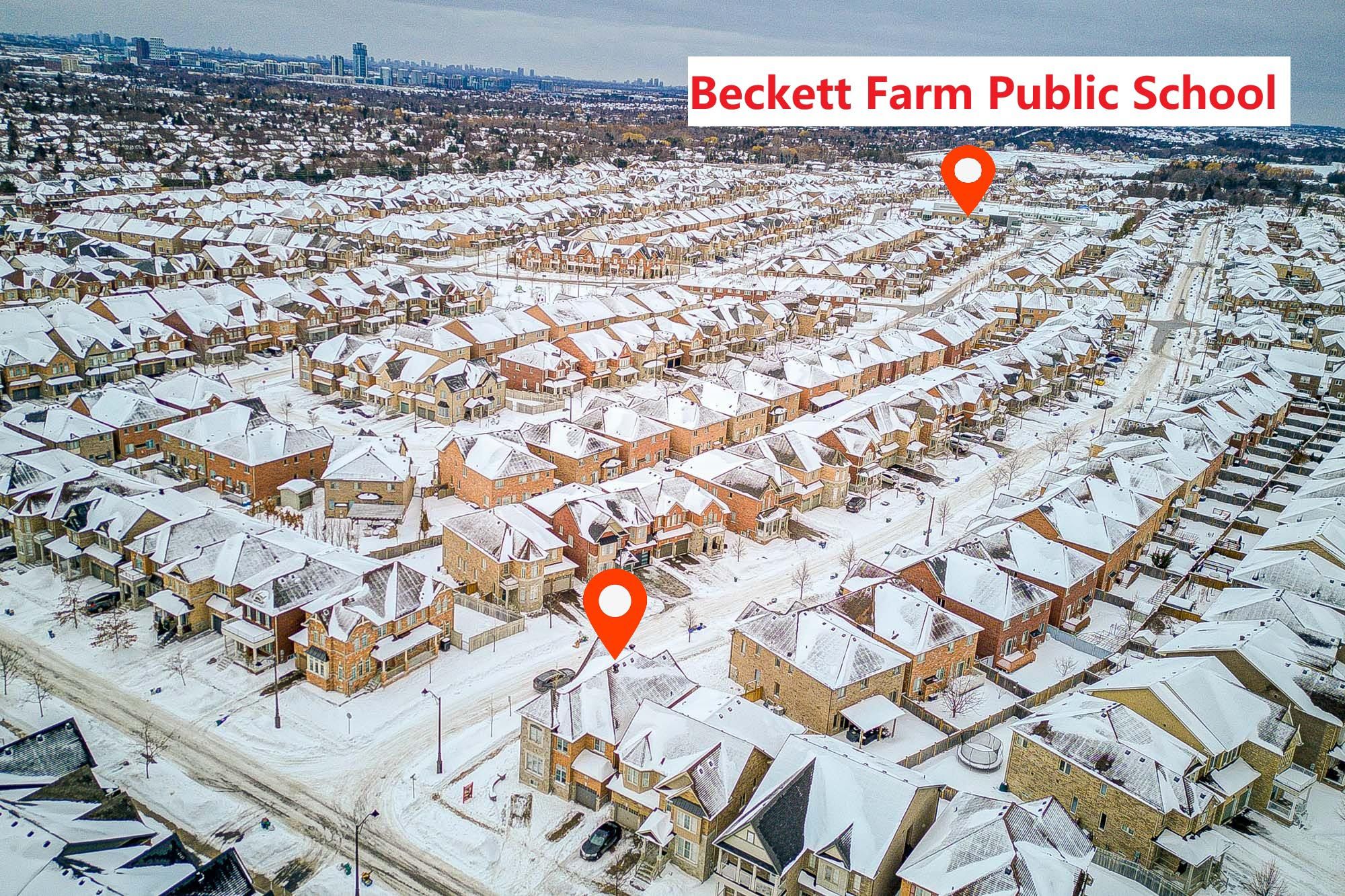 Walking distance to top-rated pierre elliott trudeau high school and beckett farm p. S., premium corner lot featuring over 2,500 sq ft above grade with 4 bedrooms layout, nestled on one of the most sought-after berczy community in markham. Gorgeous modern interior features designer upgrades everywhere, hardwood flooring thru-out, stone feature fireplace, high-end stainless steel appliances, upgraded window coverings, and custom interlock front and backyard, accommodating total 3 parkings. This exceptionally maintained, open concept home welcomes you into an open airy space with soaring ceiling, huge windows that flood the space with natural light. Main floor features a functional living room, a formal dining area, the open-concept family room with a cozy gas fireplace creates a warm and inviting atmosphere, perfect for gatherings and everyday living. The generous kitchen features large countertops, stylish backsplash, stainless steel appliances, and a center island overlooking the breakfast area with walkout to a spacious backyard, ideal for outdoor entertaining. Rarely offered 4 bedrooms model, including a private primary suite with walk-in closet and an ensuite. A second bedroom features a closet and its own ensuite bath access, while two additional spacious bedrooms share another bathroom. Top-ranked school district, close to hwy 7/404, main street unionville, go station, markville mall, 3 goodlife fitness nearby including 1 women goodlife fitness, grocery stores, restaurants, parks, and more.