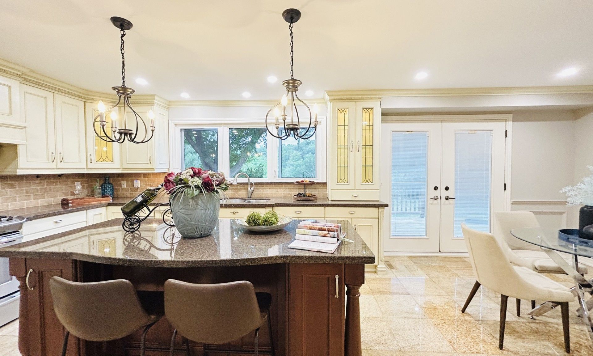 • Gourmet kitchen featuring marble flooring, custom cabinetry, and built-in appliances.