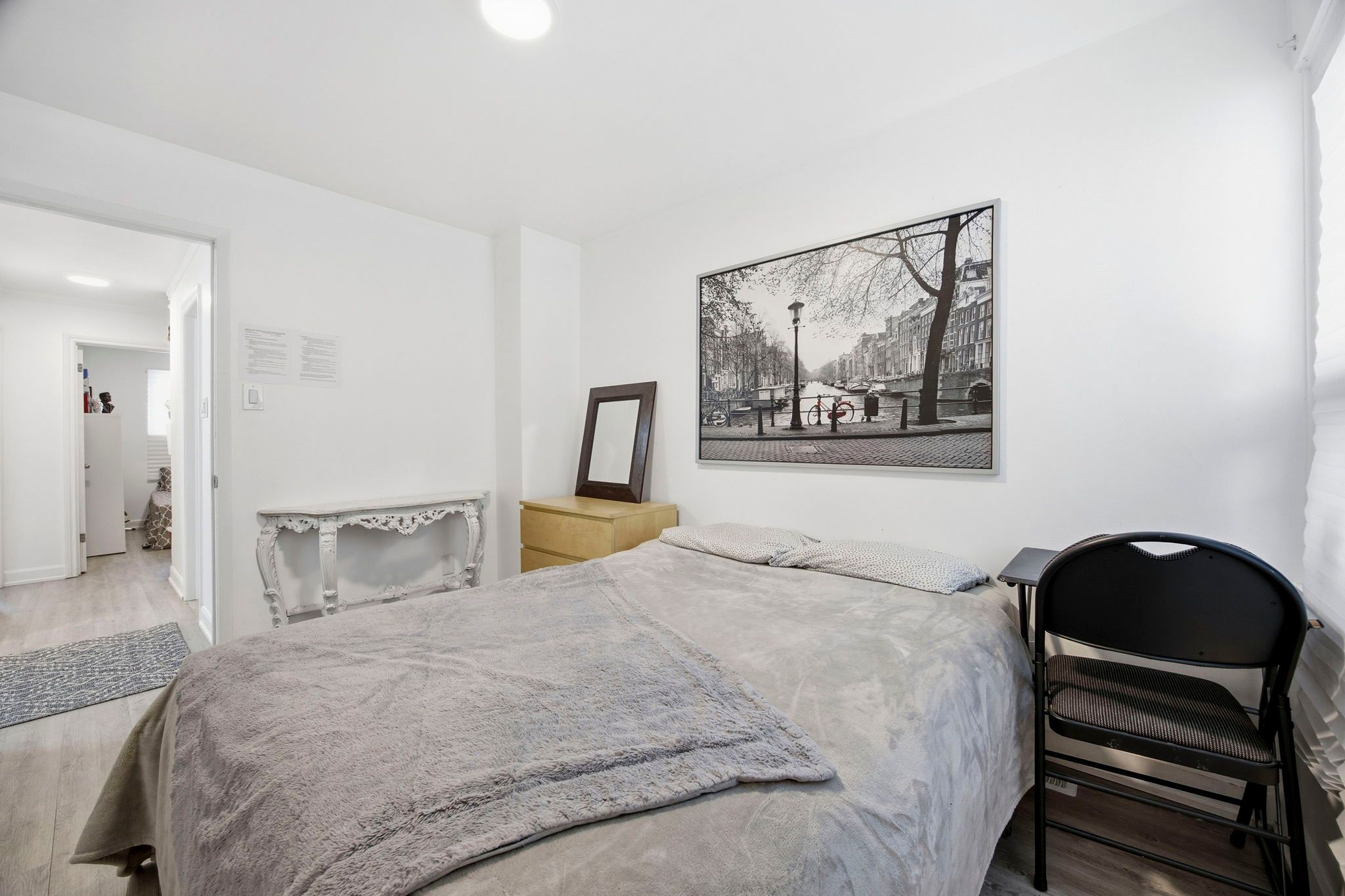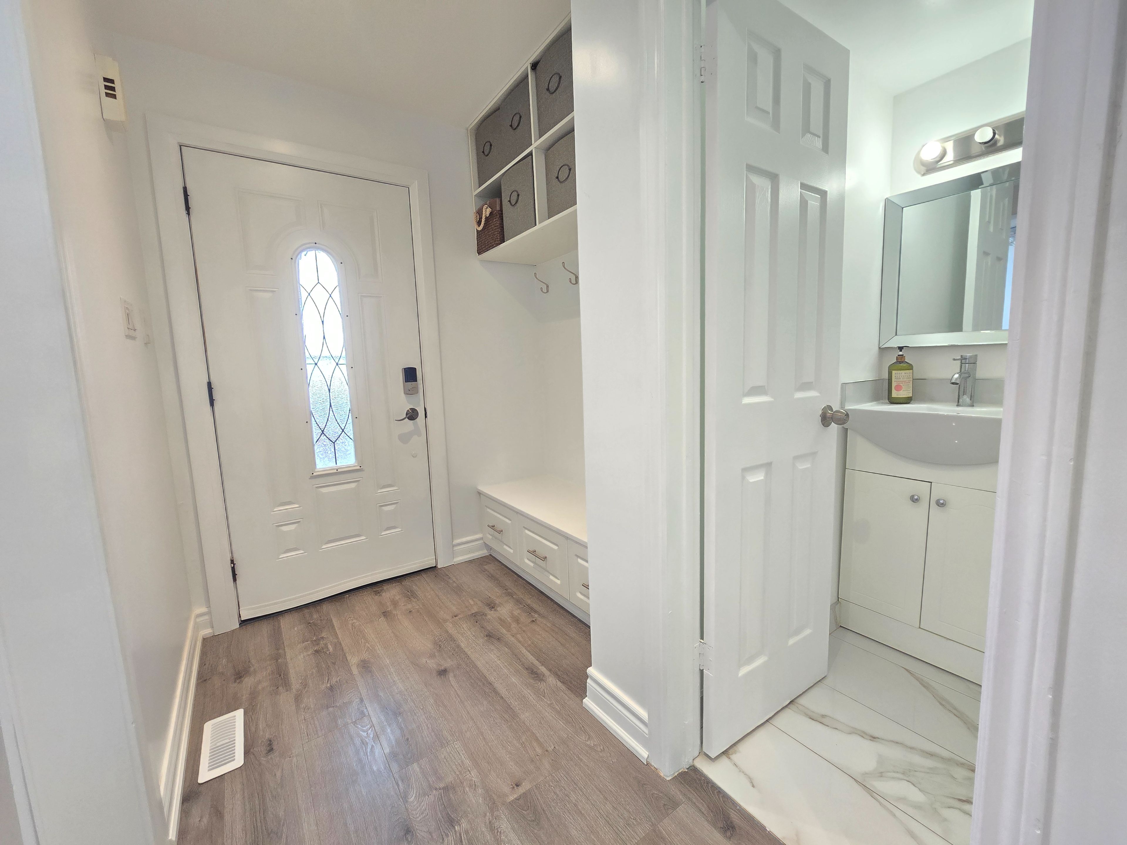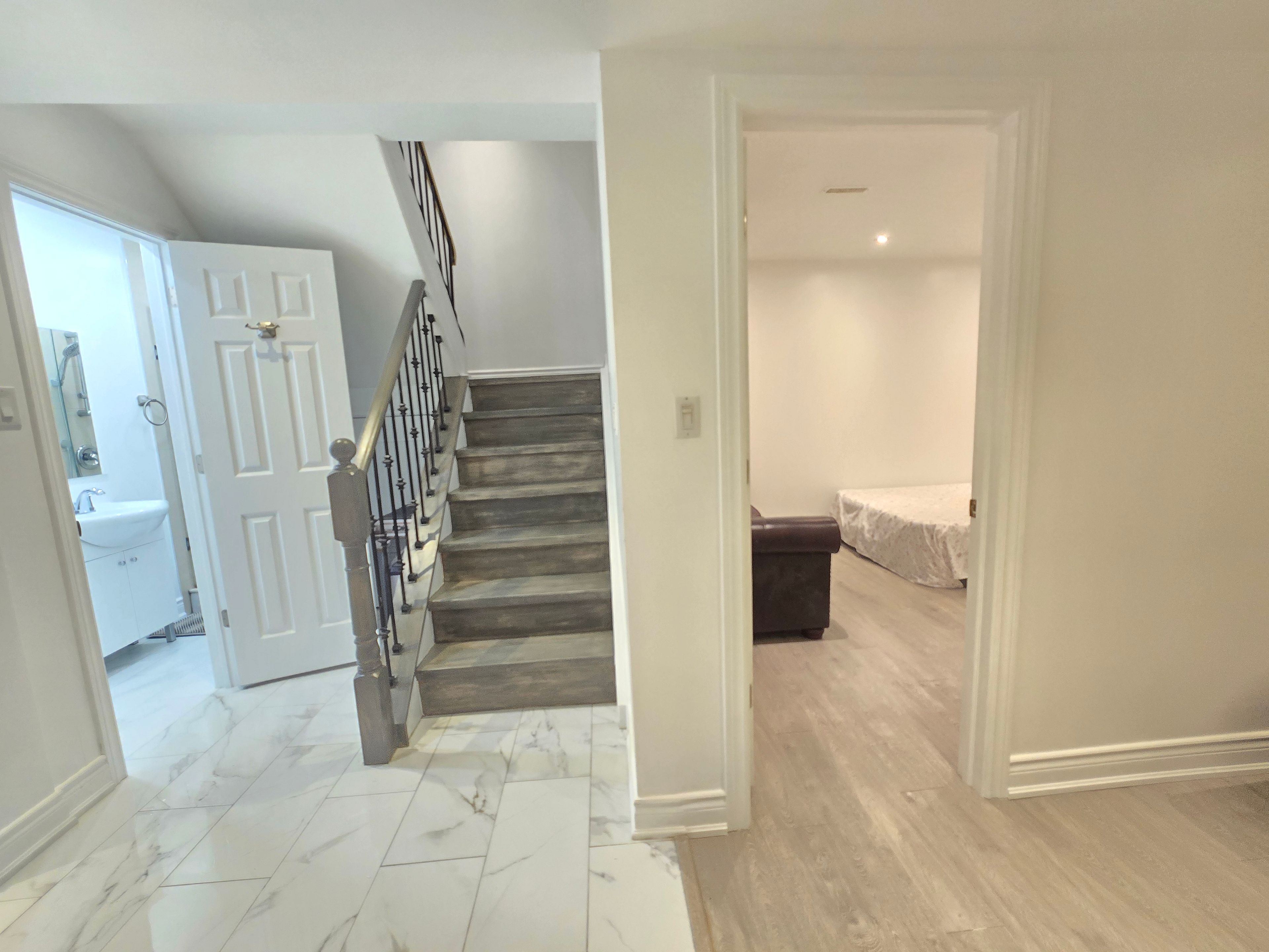 • Bright primary bedroom with his and hers closets and modern washrooms.