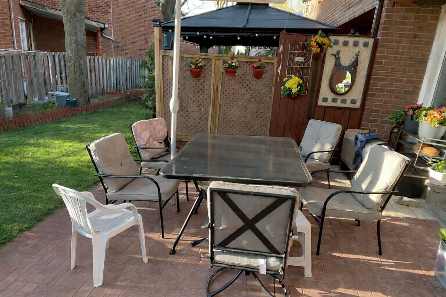• Large private backyard with a built-in gazebo for year-round enjoyment.