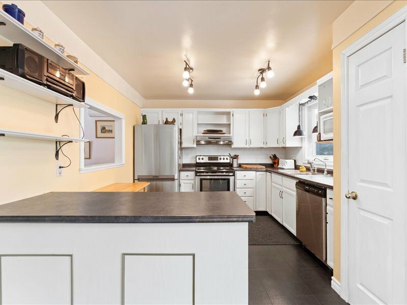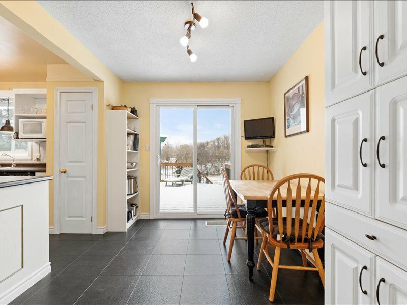 Visit realtor website for additional information. This lovely home is in a fabulous location and offers 2400 sq/ft of finished living space! The main floor boasts a living room, kitchen/dining area, 3 bedrooms and a 4-piece bath. The living room has large windows that flood the room with natural light. The kitchen/dining area is bright and sunny with white cabinetry, large windows, opening through to the living room and a walkout to the back deck. All three bedrooms are carpeted with large closets with organizers. The lower level features a great sized rec room with a wett certified wood stove, bedroom, 3-piece bath, utility room and laundry room with a walkout to the garage. The garage has a large steel top workbench. The fully fenced backyard has a large deck, shed, plus a covered lean-to built for firewood. So close to everything but it's your private escape to the country.