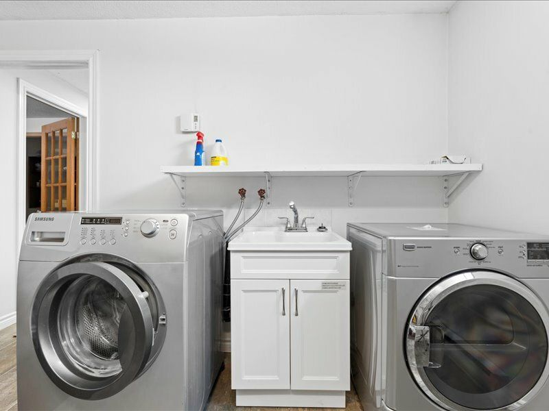 • Fully fenced backyard with deck, shed, and firewood lean-to.