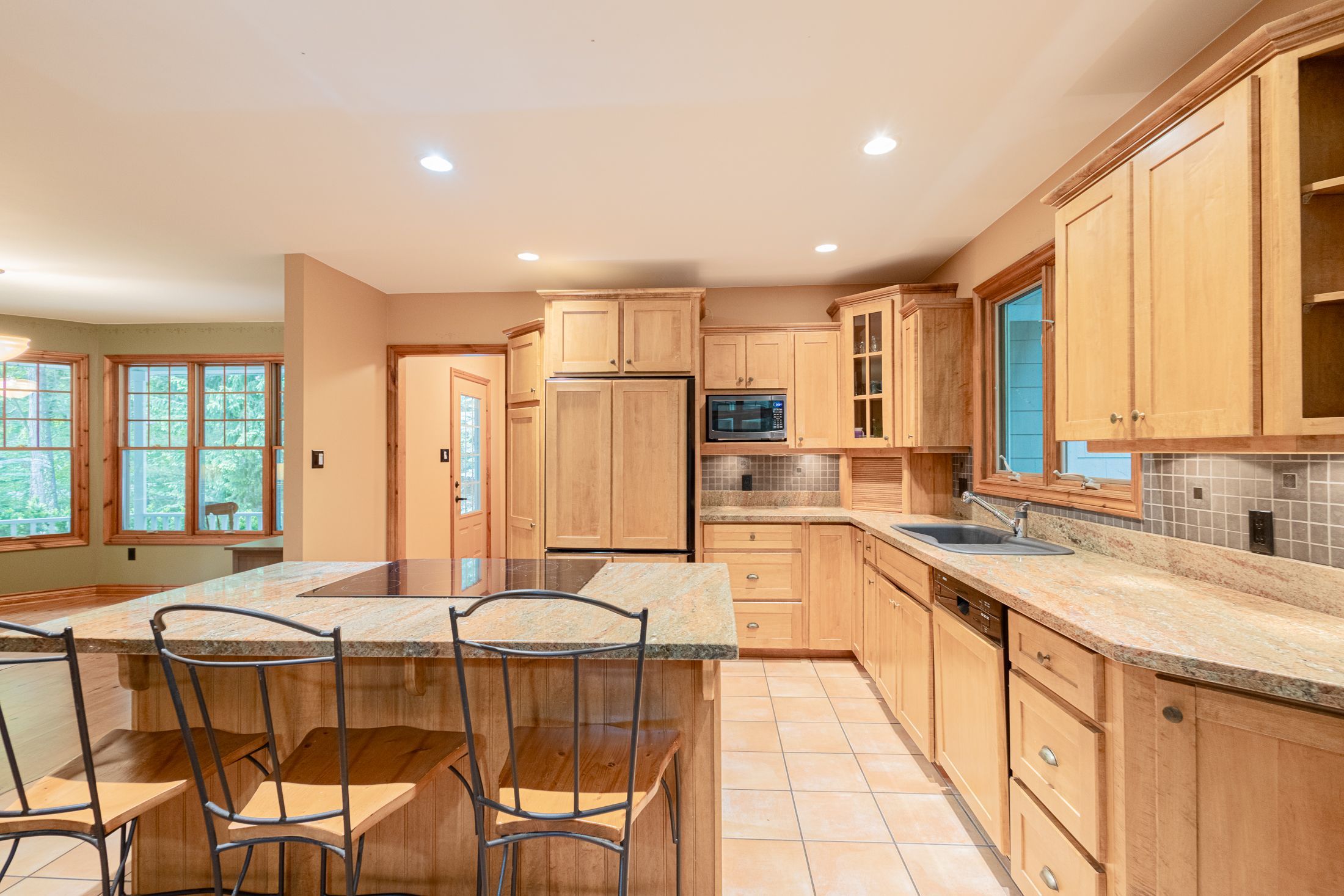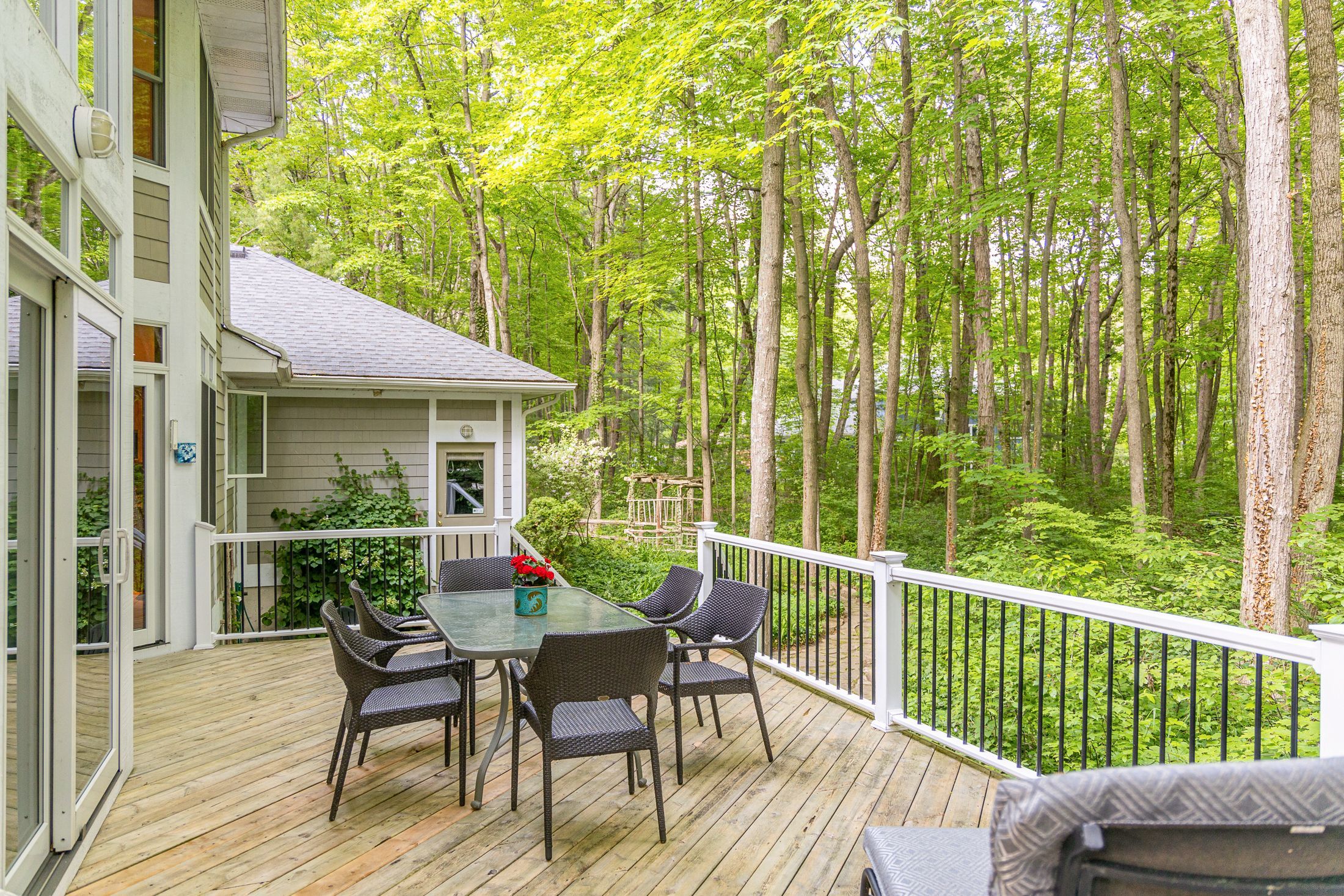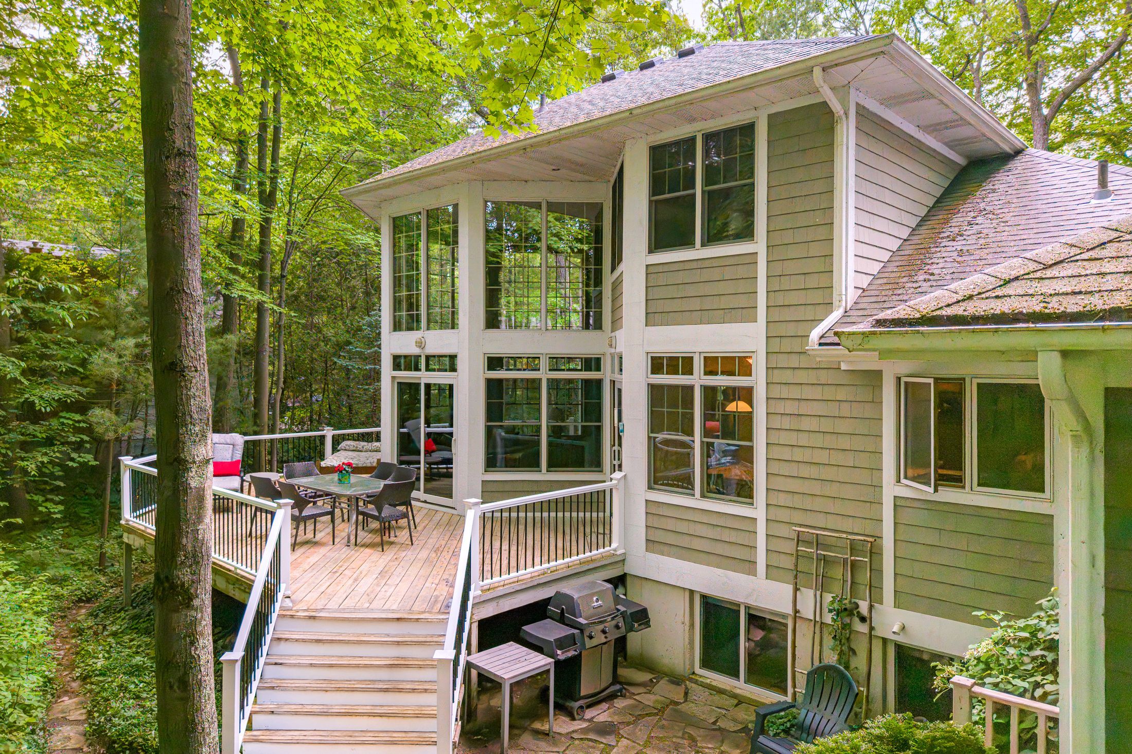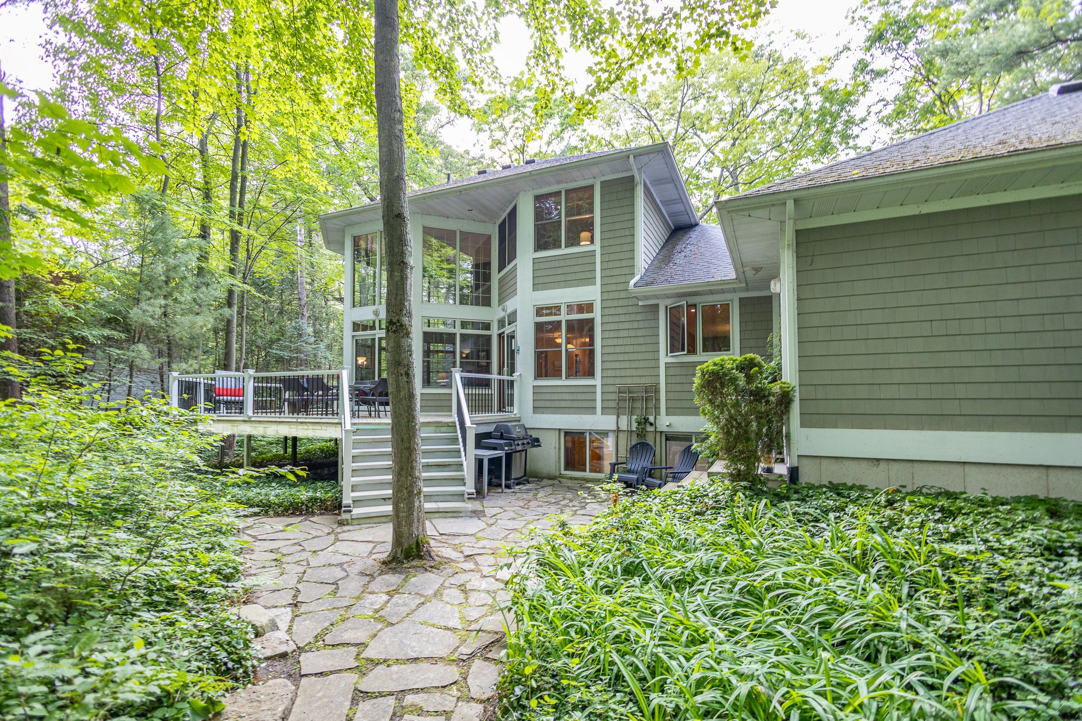 Southcott pines premium location 1 row from lakefront | grand bend deeded beach living at its best w/ master bed window 100 mtrs from the sound of waves lapping up on shoreline | exquisite & young arts & crafts 4 season custom home by steeper | 2 master suites | in-floor heat | sensational octagonal 21 ft fireplace great room w/ floor to ceiling windows framing in a private forest | exceptionally secluded lot! This 4 bath 3 bed (+ "4th bed" bunky/sleeping area in lower) offers 2800 sq ft of impeccably well-kept & well-finished living space w/ another 600 sq ft of unfinished floor space to grow into in lower (3452 sq ft floorspace total). The layout offers something for everyone in the family w/ a main level master w/ ensuite bath, a spacious cherry kitchen/dining area walking out to the natural gas serviced bbq deck & featuring tasteful granite & a large island + tons of cabinet space & a premium cabinet ready fridge, a large sitting room/formal dining room/or 4th bed, mud room, addt'l bathroom, & main level laundry. The most impressive main level space however, which is possibly one of the most extraordinary rooms in southcott pines, is the 21 ft high octagonal fireplace great room walking out to a large sundeck & overlooking mature pines & oaks w/o a neighbor in sight! This room alone is a feature that was a significant upgrade on this impressive custom home, along w/ the romeo & juliette balcony style bedroom looking down into this incredible space from the 2nd floor. Also on floor 2, you get a 2nd master suite w/ ensuite bath & walk-in closet + a handy office area at the top of the open staircase. The lower level, all over in-floor radiant gas heat, offers a large open space w/ a family room + a sleeping area (4th bed), a full bath (4th bath) along w/ a separate entrance from the garage fostering massive potential for a 2nd suite! Serious value here folks, w/ low maint. Gorgeous stone & perennial landscaping to enjoy as you take that 1 min walk to the beach!