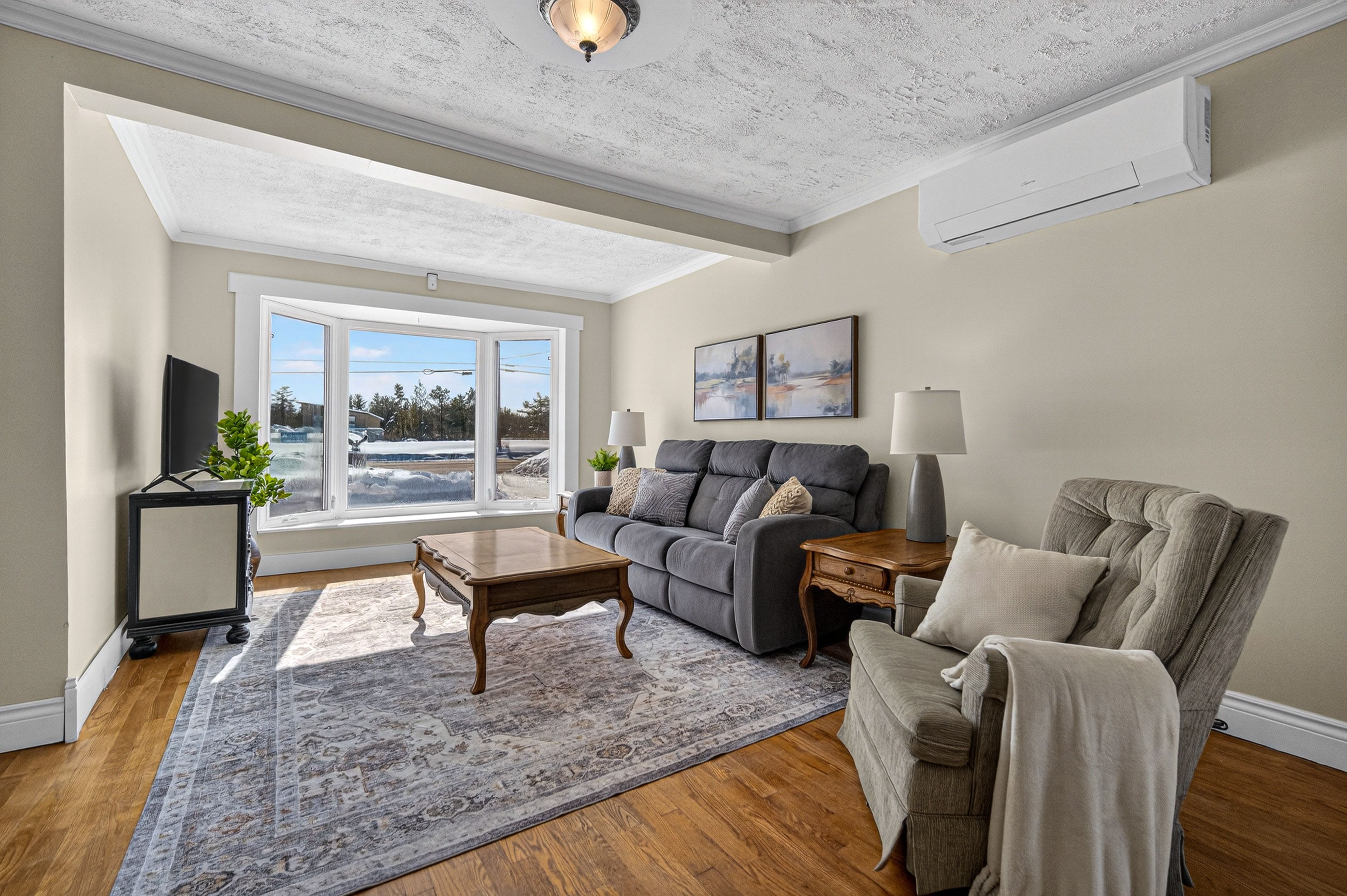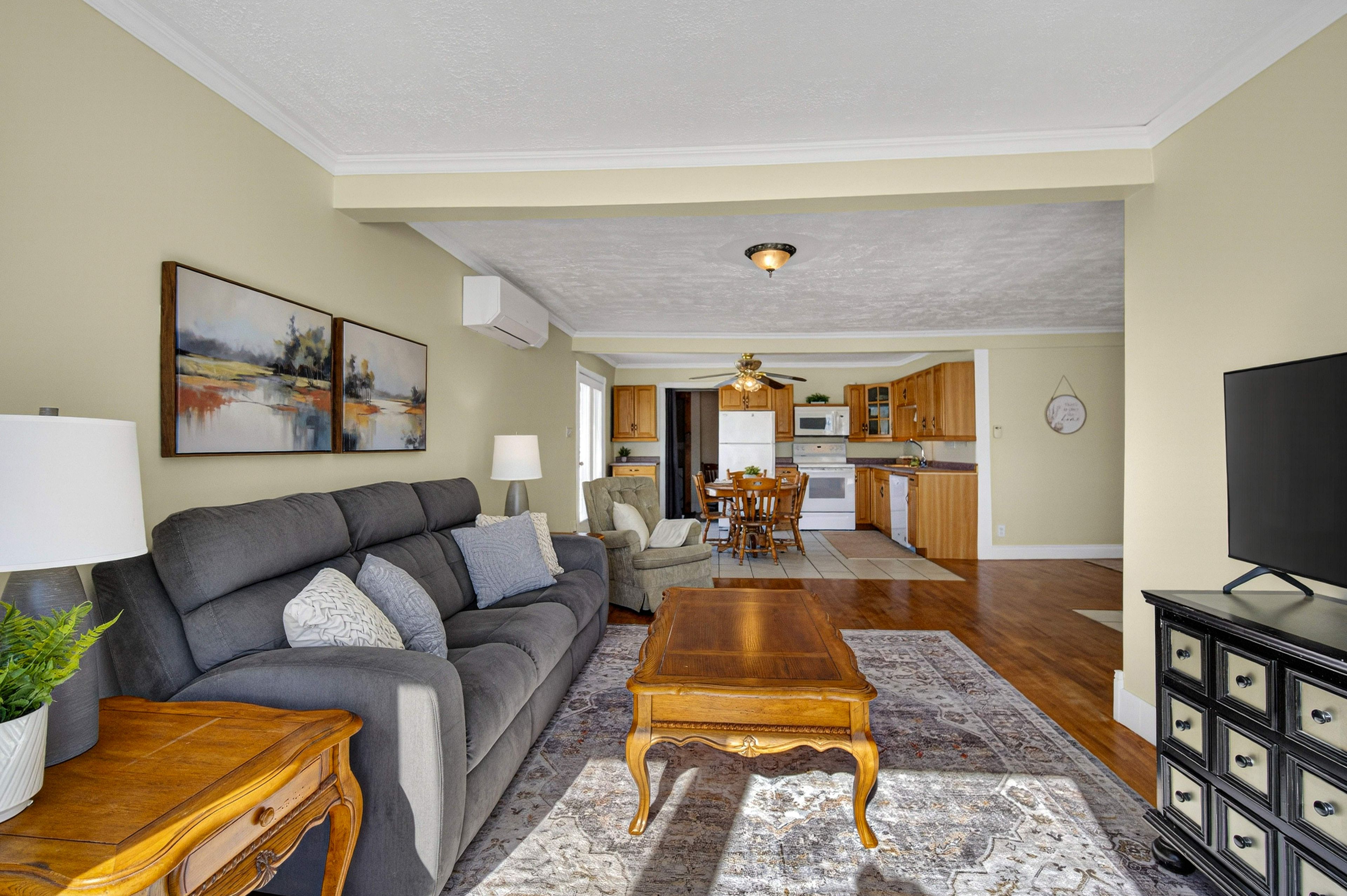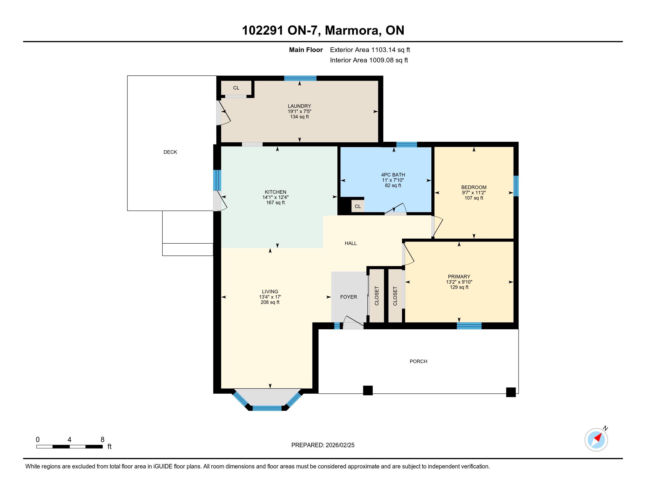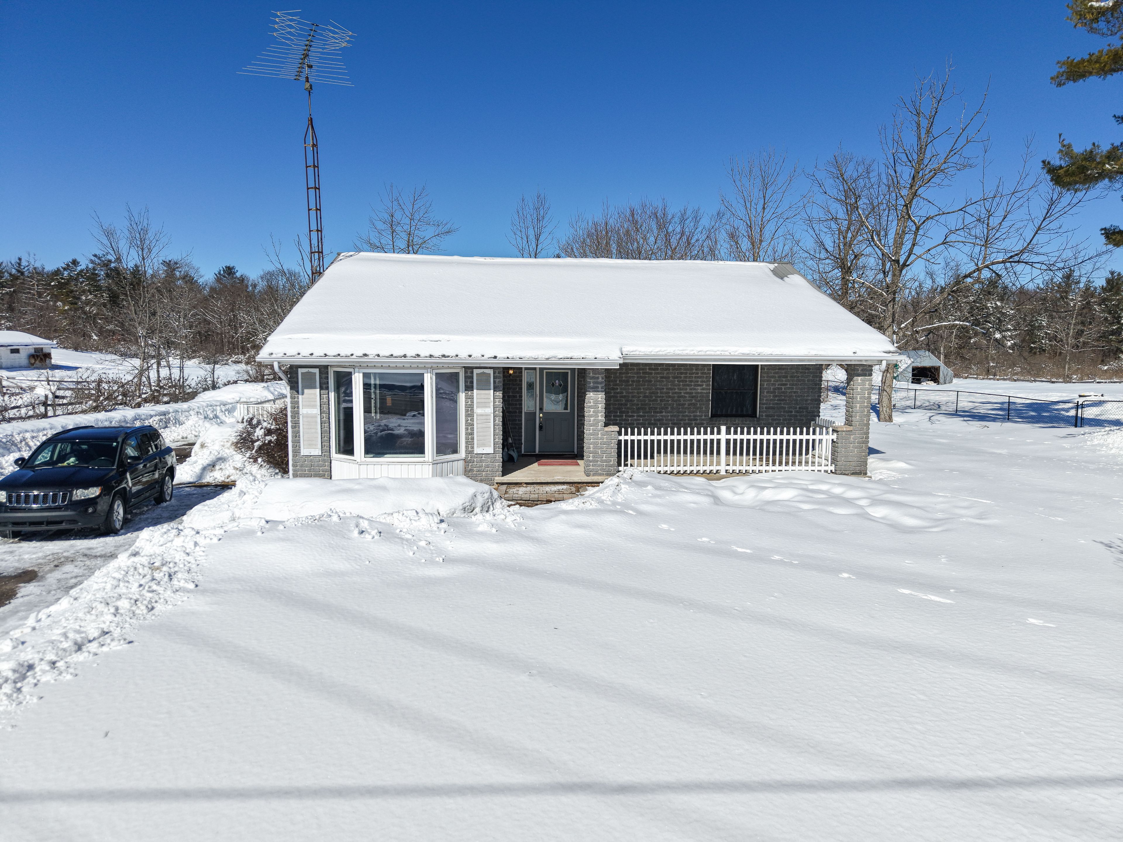 Country calm. Connected living. Sun-filled simplicity. Welcome to a lifestyle where mornings begin with coffee on the covered porch, afternoons are spent in the garden under warm southern sunshine, and everything you need is just minutes away. On just under 1 acre, this charming brick bungalow offers the best of both worlds peaceful country atmosphere with remarkably easy access to everyday conveniences. Despite its location on hwy 7, the home is impressively quiet and private, giving you the serenity you crave without sacrificing accessibility. Nearly perfect rectangular lot (approx. 100 ft wide x 419 ft deep) creates a sense of space that's hard to find. Wide enough for comfortable separation from neighbours, and deep enough to bring your backyard vision to life whether that's lush gardens, play space, entertaining, or simply room to breathe. With its prized southern exposure, natural light floods both the home and your future flower or vegetable beds. Inside, approximately 1,100 finished square feet deliver an easy, no-stairs lifestyle with an open-concept flow through the entry, kitchen, dining, and living areas ideal for relaxed daily living and effortless hosting. The home includes a spacious primary bedroom, a flexible guestroom or home office, and a 4 pc bath complete with a jet tub for unwinding at days end. The rear utility/mudroom and laundry area adds everyday practicality, water treatment equipment, excellent storage, access to the spray-foam insulated crawlspace, and a 3rd exterior door leading directly to the side deck, driveway, and expansive backyard. Step outside from the dining area through the glass door to the side deck a perfect spot for quiet mornings or summer evenings. The covered front porch offers another peaceful retreat. First-time buyer seeking space to grow, a retiree looking for simplified one level living, or an investor recognizing solid infrastructure and location value this property offers flexibility and opportunity.