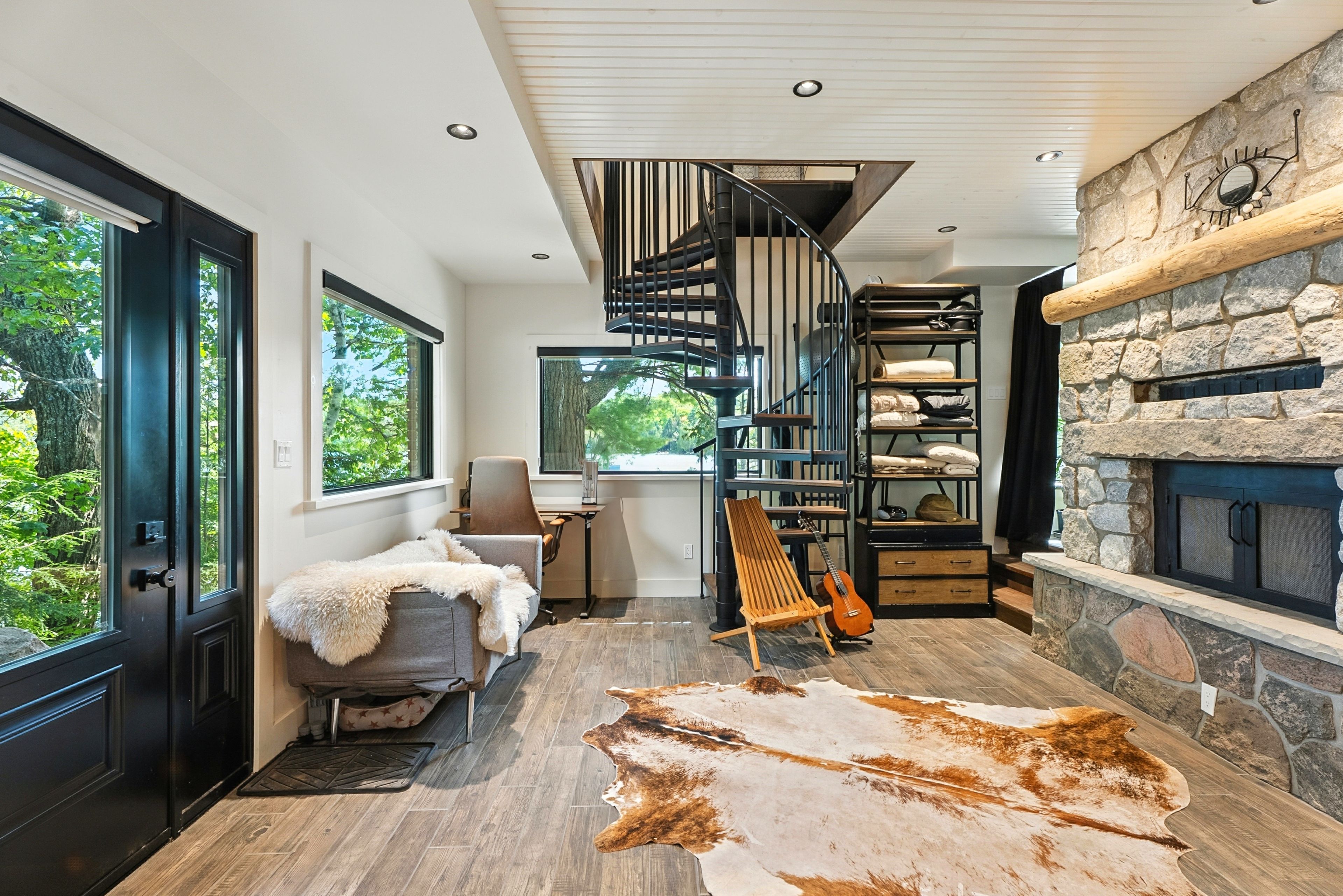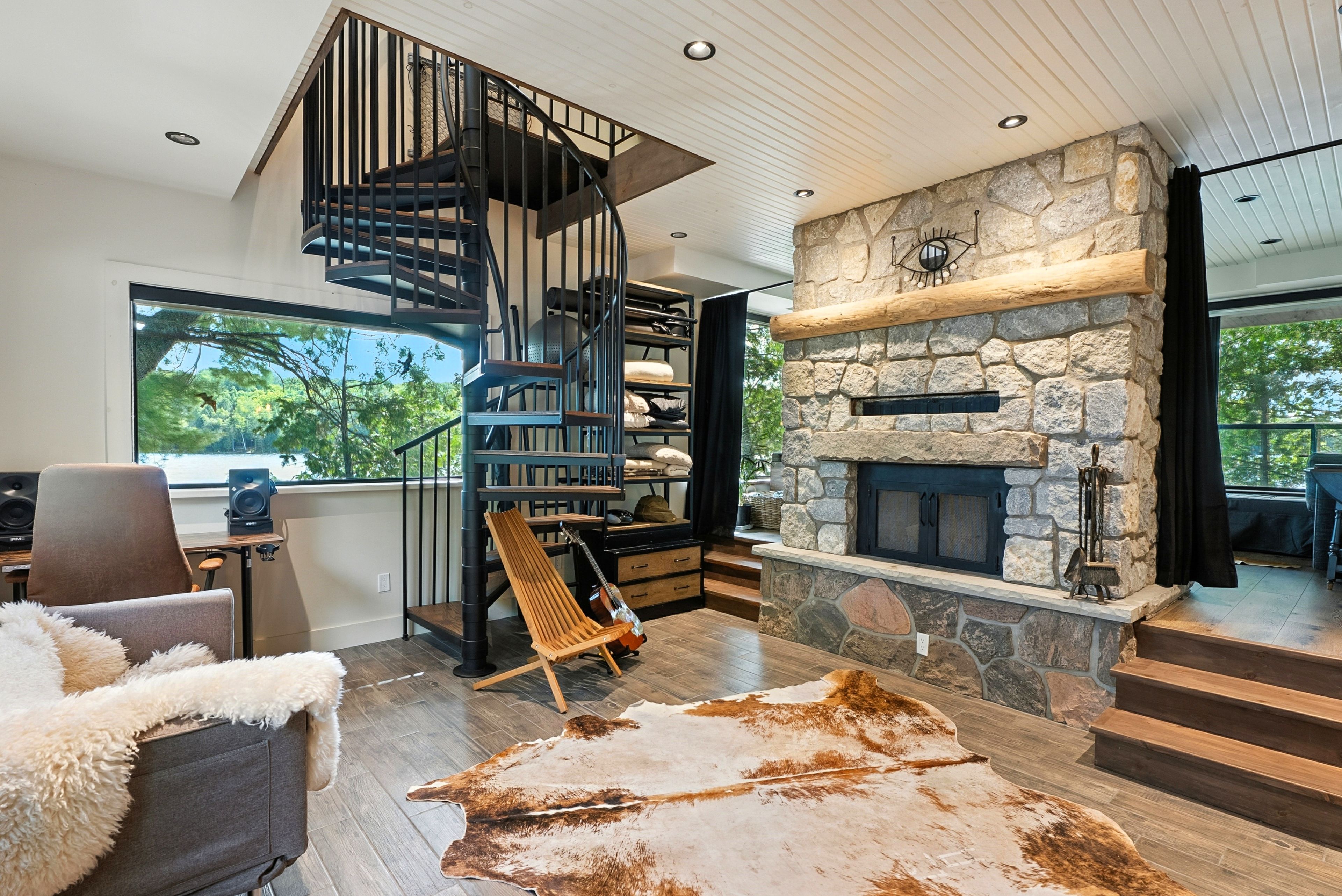 Welcome to echo beach, a beautifully renovated waterfront retreat on pristine echo lake near baysville. Set on a rare private point with over 400 ft of shoreline and east, south, and west exposures, the property enjoys sun from sunrise to sunset and exceptional privacy. The shoreline offers the best of muskoka living with shallow sandy entry for swimming and deep clear water off the dock, ideal for paddling, relaxing, and lakeside entertaining. The extensively renovated 1,150 sq. Ft. Cottage blends modern comfort with classic muskoka charm. Inside you'll find an open-concept living area with fireplace, updated kitchen with built-in appliances, and bright lake-facing windows. The layout includes a loft bedroom with ensuite powder room, main floor bath, and additional sleeping space for guests. Outdoor living is exceptional with expansive decks, multiple seating areas, and forested trails winding through mature white pines and granite outcrops. A renovated bunkie provides additional guest accommodation, studio space, or a private workspace. Located just minutes from baysville and lake of bays, the property offers a rare combination of privacy and convenience, situated only a short walk from a year-round municipally maintained road. A unique opportunity to own a fully renovated muskoka point property with exceptional shoreline and all-day sun on beautiful echo lake. Echo beach - a rare muskoka point with 400+ ft of private shoreline, sunrise-to-sunset sun, sandy entry, deep water, renovated cottage, and bunkie on pristine echo lake near baysville.