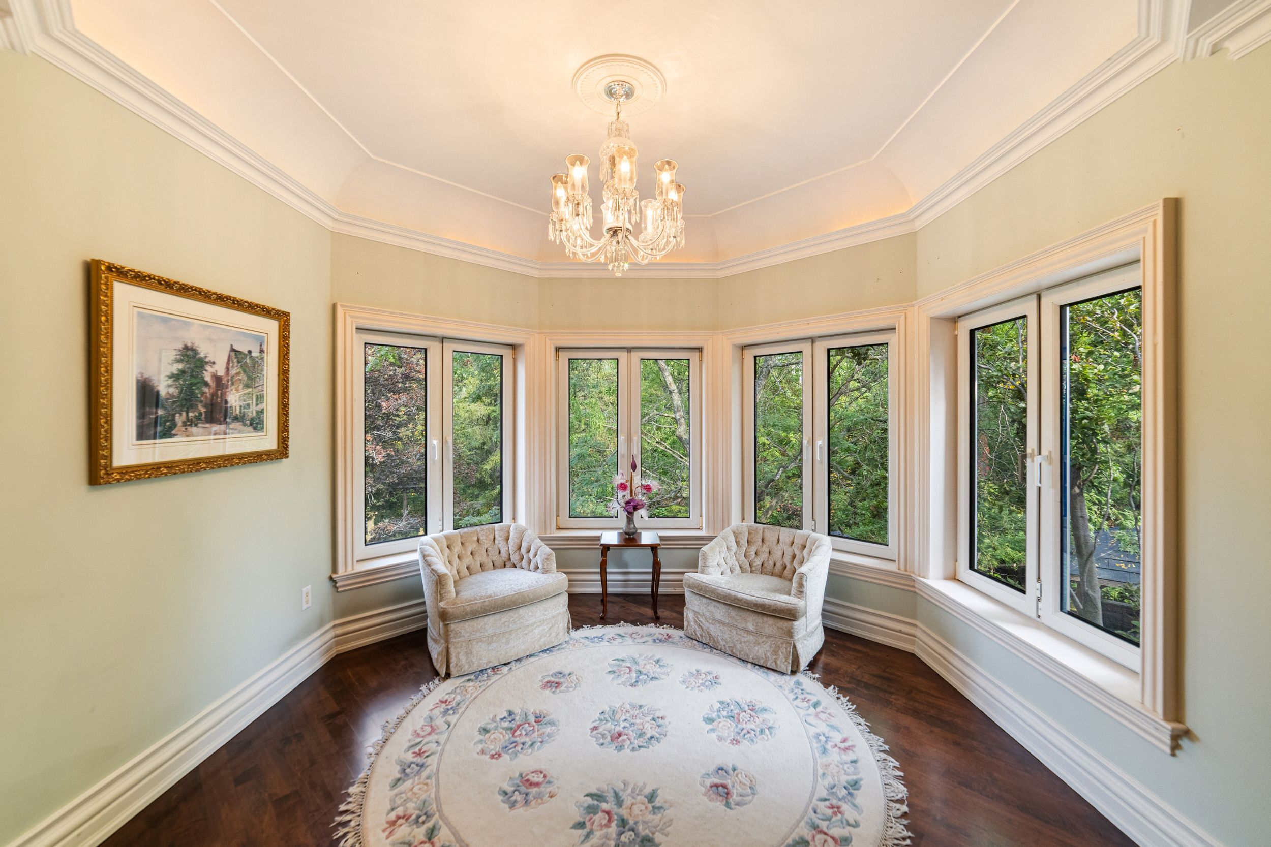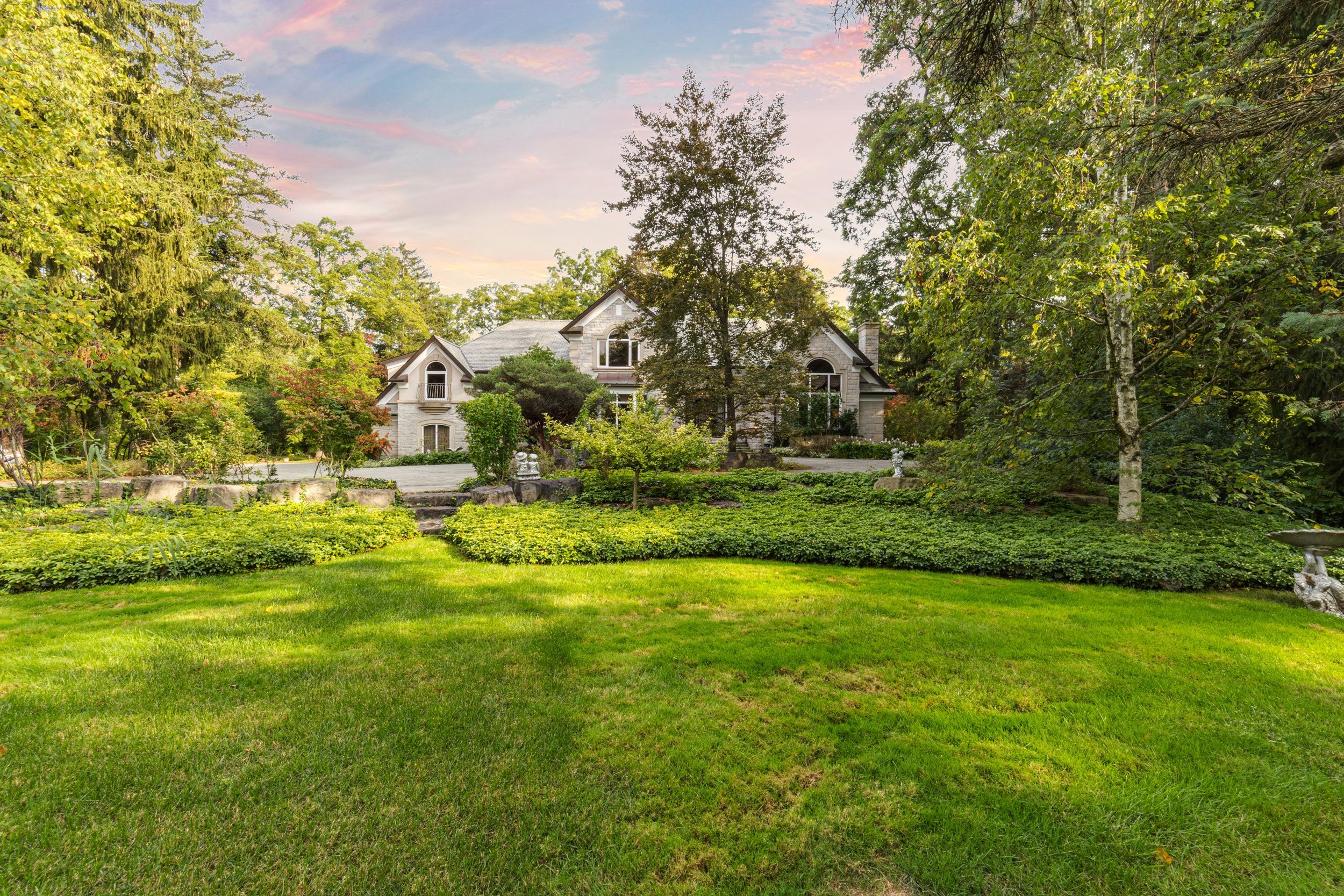 A rare executive gated 1. 39-acre ravine estate in morrison sought after community timeless elegance meets modern luxury this residence provides unmatched privacy, lush landscaping, & refined outdoor living. Through the custom 8-foot beveled glass entry doors, the soaring foyer sets the tone with emerald pearl granite floors, a handcrafted austrian crystal chandelier on motorized lift, & a sweeping french provincial staircase with wool victorian tapestry runner. The main floor boasts elegant formal living & dining rooms with hand-carved marble fireplaces, cathedral ceilings, plaster mouldings, & palladian windows framing ravine views. A richly appointed library & office feature maple plank flooring, crown moulding, & custom draperies. The family room offers panoramic vistas & a mahogany fireplace, while the chefs hawthorne kitchen impresses with cherry cabinetry, granite surfaces, premium appliances, & a walkout to the terrace. Upstairs, the luxurious primary suite includes a two-way fireplace, custom lighting, & a walk-in closet with attic access. The spa-inspired ensuite offers heated floors, jacuzzi air tub, granite shower, & strass crystal lighting. Three additional bedrooms each enjoy private ensuites, & custom finishes. A versatile great room with terrace access & a full laundry suite complete this level. The lower level is an entertainers dream with a billiards & games room, full walnut bar, gym, media lounge, & spa retreat with sauna & steam shower. Radiant heated floors, & abundant storage enhance the space. Outdoors, the property is equally breathtaking with two stone gazebos joined by a large pergola, extensive walking paths, & a serene koi pond and a japanese-inspired garden creating a private resort-like escape. With 4+1 bedrooms, 9 bathrooms, elevator access to all levels, multiple terraces, & a gated circular driveway, this estate offers over 10,000 sq. Ft. Of refined living in one of oakville's most coveted neighbourhoods.