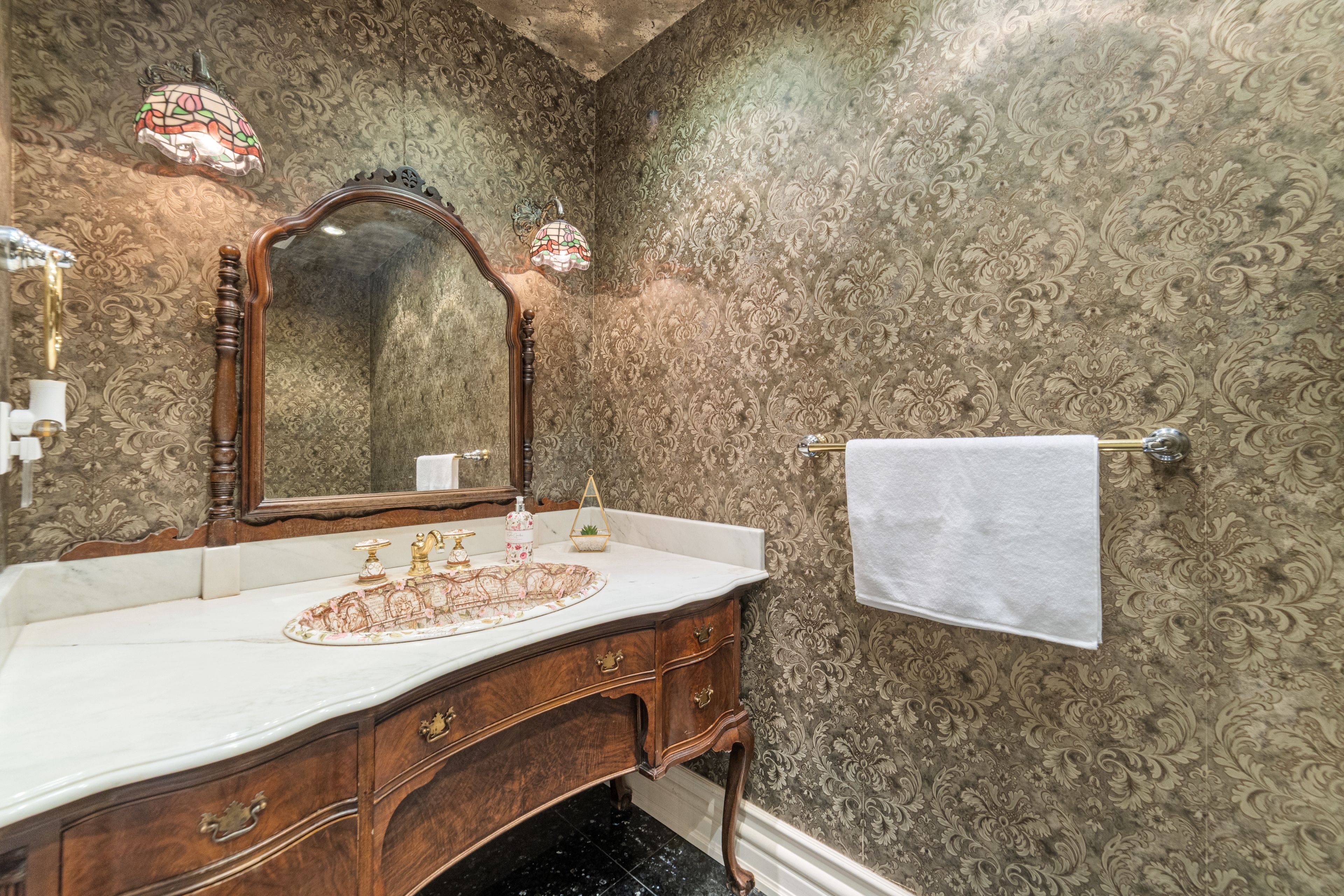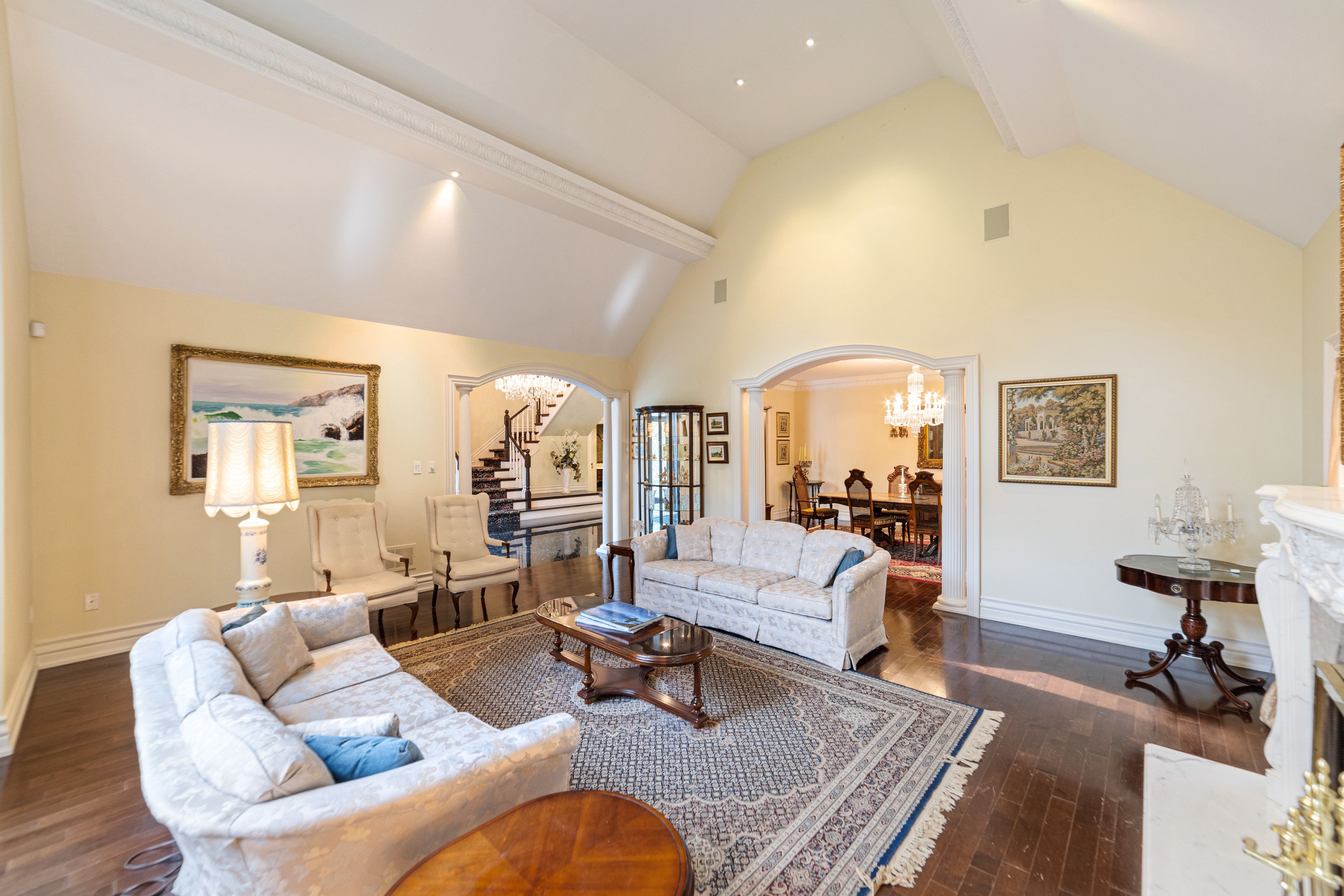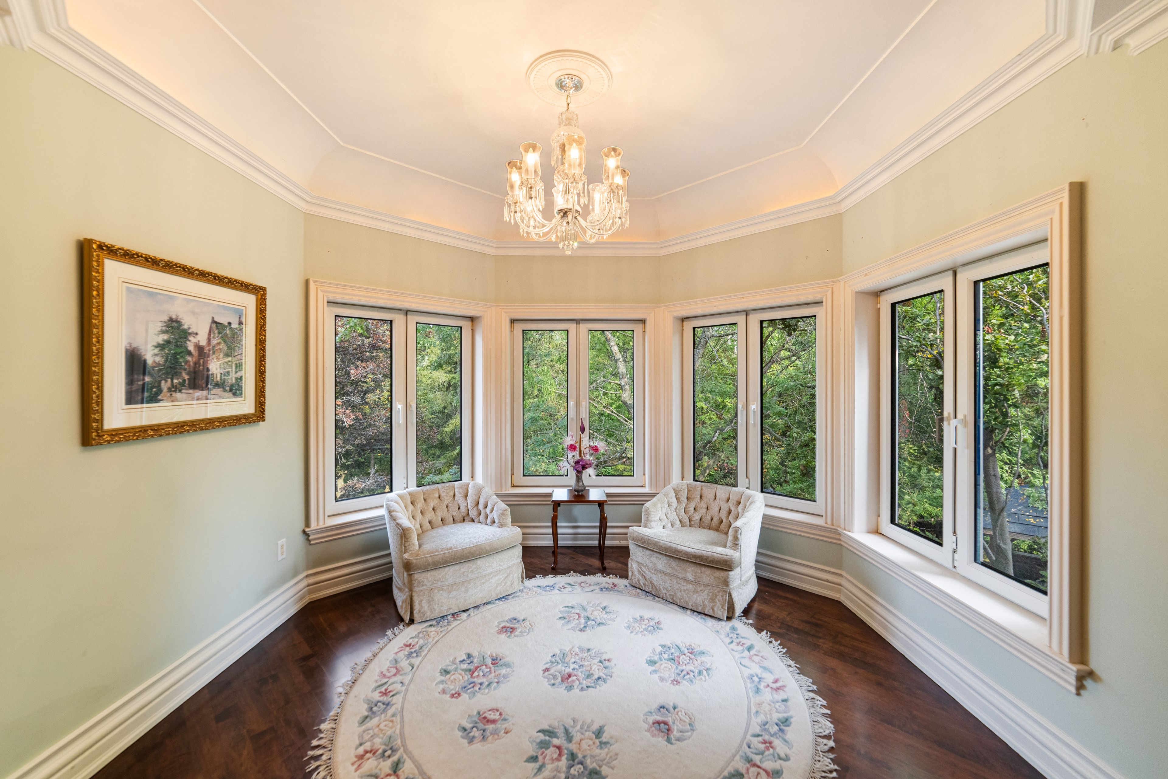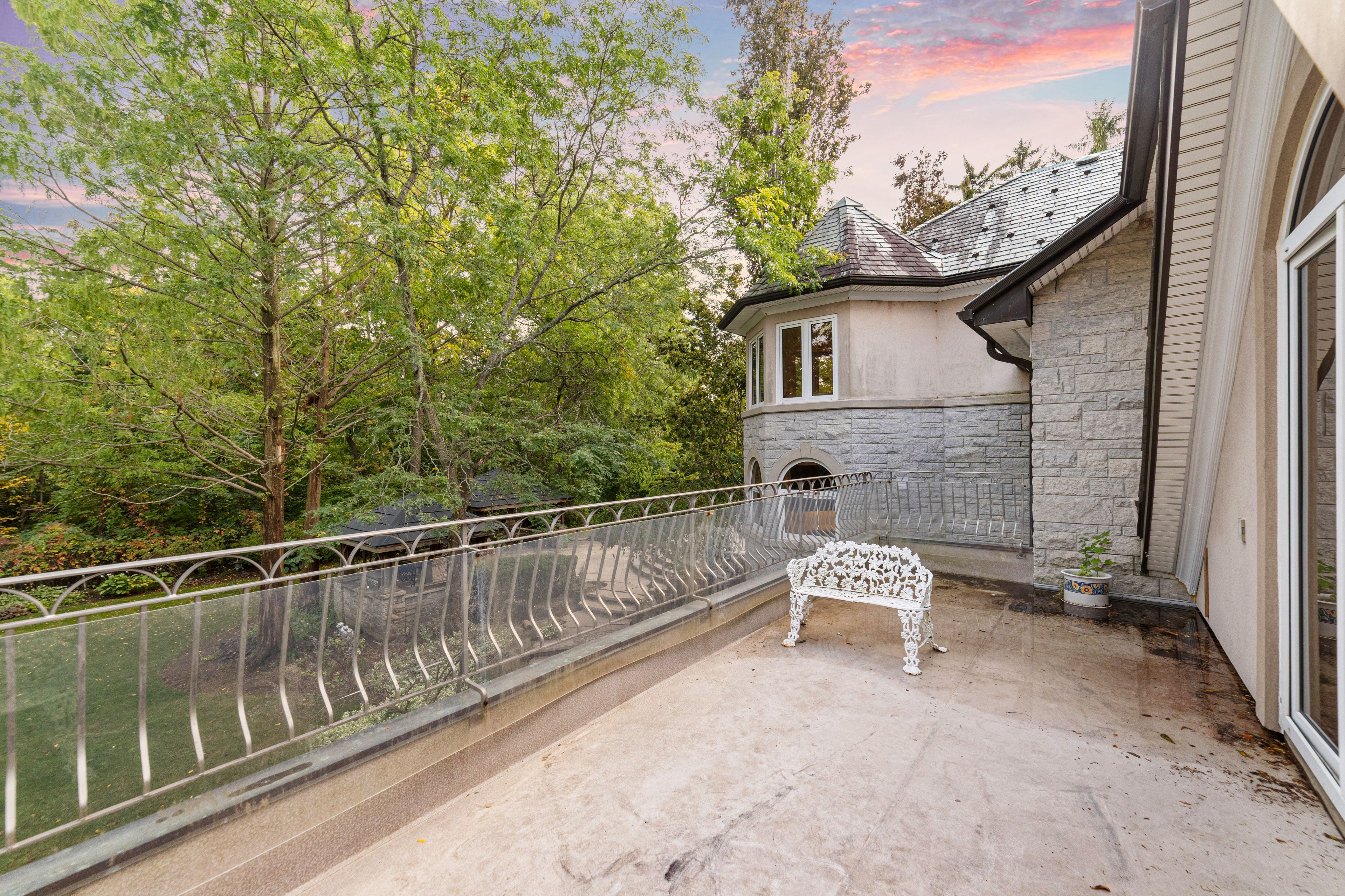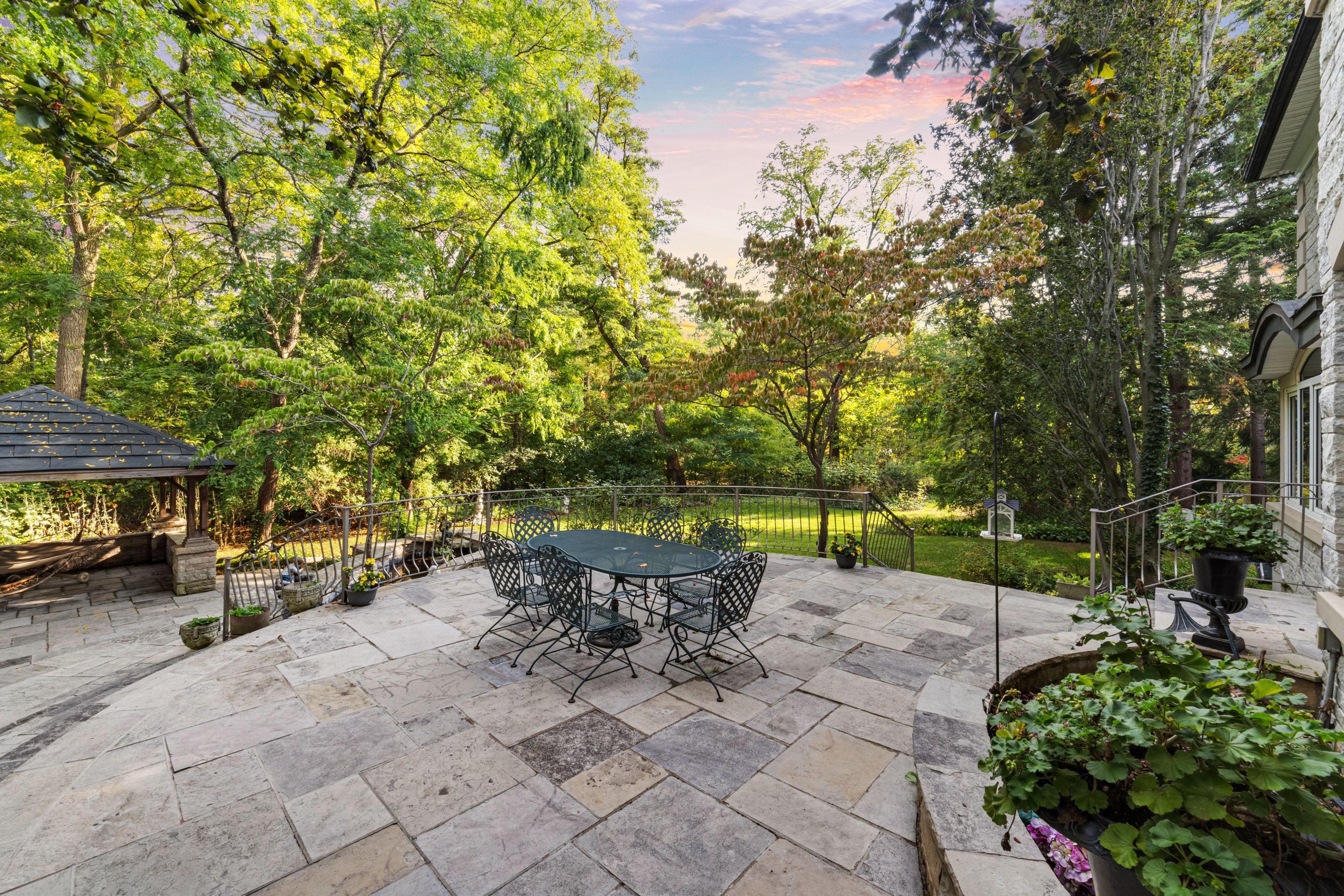 A rare executive gated 1. 39-acre ravine estate in morrison sought after community timeless elegance meets modern luxury this residence provides unmatched privacy, lush landscaping, & refined outdoor living. Through the custom 8-foot beveled glass entry doors, the soaring foyer sets the tone with emerald pearl granite floors, a handcrafted austrian crystal chandelier on motorized lift, & a sweeping french provincial staircase with wool victorian tapestry runner. The main floor boasts elegant formal living & dining rooms with hand-carved marble fireplaces, cathedral ceilings, plaster mouldings, & palladian windows framing ravine views. A richly appointed library & office feature maple plank flooring, crown moulding, & custom draperies. The family room offers panoramic vistas & a mahogany fireplace, while the chefs hawthorne kitchen impresses with cherry cabinetry, granite surfaces, premium appliances, & a walkout to the terrace. Upstairs, the luxurious primary suite includes a two-way fireplace, custom lighting, & a walk-in closet with attic access. The spa-inspired ensuite offers heated floors, jacuzzi air tub, granite shower, & strass crystal lighting. Three additional bedrooms each enjoy private ensuites, & custom finishes. A versatile great room with terrace access & a full laundry suite complete this level. The lower level is an entertainers dream with a billiards & games room, full walnut bar, gym, media lounge, & spa retreat with sauna & steam shower. Radiant heated floors, & abundant storage enhance the space. Outdoors, the property is equally breathtaking with two stone gazebos joined by a large pergola, extensive walking paths, & a serene koi pond and a japanese-inspired garden creating a private resort-like escape. With 4+1 bedrooms, 7 bathrooms, elevator access to all levels, multiple terraces, & a gated circular driveway, this estate offers over 10,000 sq. Ft. Of refined living in one of oakville's most coveted neighbourhoods.