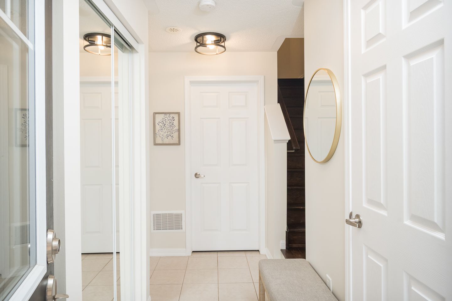 Welcome to this beautifully updated townhome in milton's sought-after willmott neighbourhood offering stylish & low-maintenance living in a prime location. This 2-bedroom, 1. 5-bath home features newly installed flooring, updated lights and fresh paint throughout creating a modern and move-in-ready space. The open-concept main floor includes a chef's kitchen equipped with stainless steel appliances, rich dark cabinetry, ample storage, and a breakfast bar peninsula that flows seamlessly into the bright living and dining area-complete with brand new flooring and direct access to a sunny balcony. Upstairs, the bedrooms feature updated flooring. The spacious primary retreat has a walk-in closet and semi-ensuite access to a refreshed 4-piece bath, while a convenient 2-piece bath is located on the main level. Enjoy the convenience of parking for two vehicles with a private driveway and garage, along with interior garage access and a functional main floor laundry room. Ideally situated close to major highways, steps away from milton's largest sports center, parks, trails, shopping, and everyday amenities, this home combines comfort, style, and accessibility.