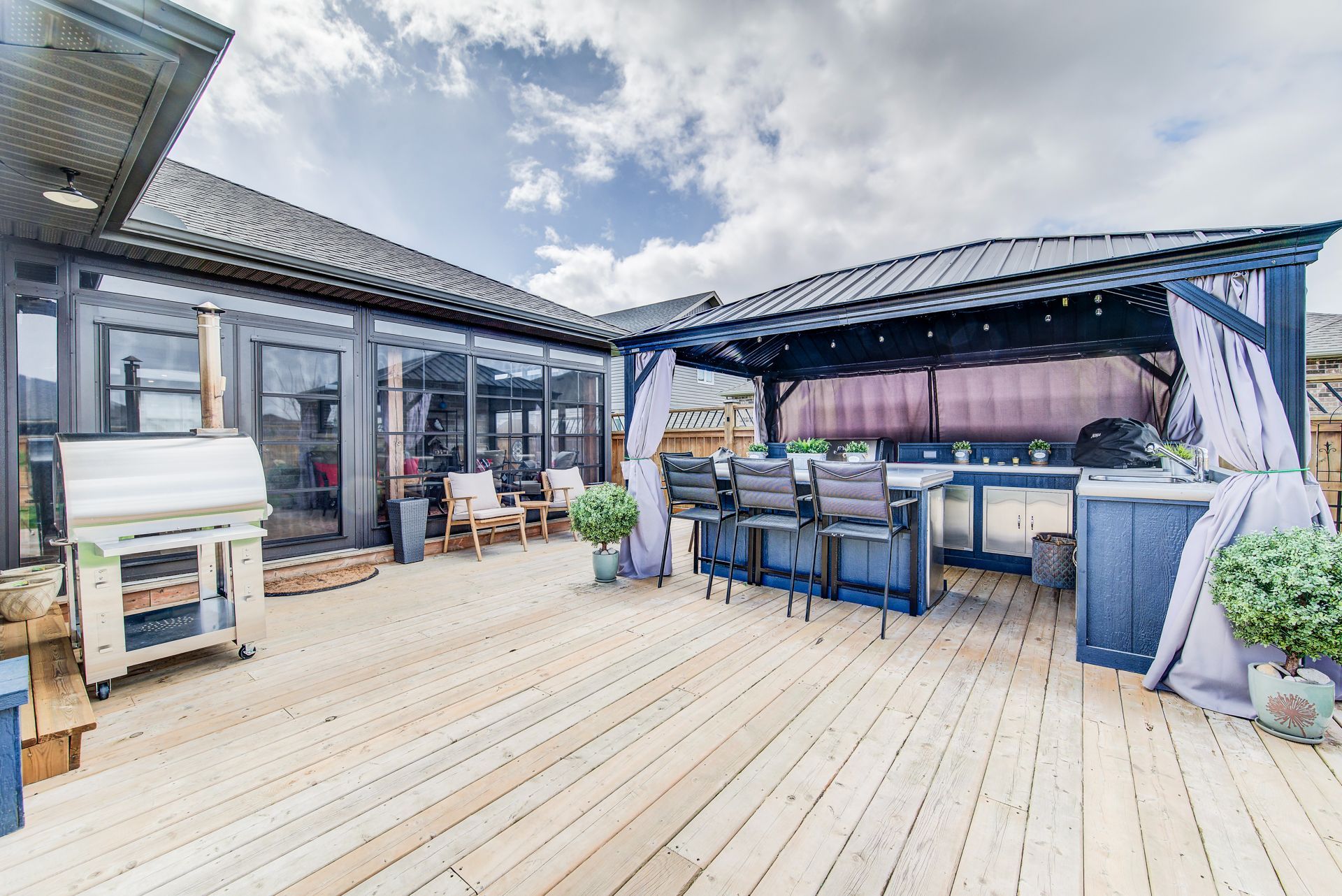 This home has many one-of-a-kind features for you to enjoy !!! Set in a modern area of listowel, close to many amenities your will find the exceptionally well built 3 + 3 bedroom, 4 full washroom home with a bedroom/en suite combination on each level. The main level provides a spacious, open setting for large families or for entertaining. From the well-appointed kitchen to walk into the enclosed porch with specially designed, durable retractable window units which still allow you to enjoy the fresh outdoor air. From this room you can continue onto the large deck which overlooks the fenced, landscaped yard with elevated garden/planter boxes and a substantial shed equipped with a 50 amp. Service. But ... The pièce de résistance is the outdoor kitchen which is fully equipped with natural gas appliances and a full-sized dining island located in the gazebo. Enjoy entertaining your guests while you cook. The lawn irrigation system will keep your lawn the envy of the neighbours. You'll also be the envy of the neighbourhood when there is a power interruption as your 16kw generator will keep this home fully operational. Hate getting into a cold vehicle? The 24 ft. X 24 ft. I\insulated and trusscore lined garage has its own natural gas heating system. If you like a clean garage, you'll also appreciate the epoxy covered floor. Your family will enjoy additional safety as this home and garage have a full fire sprinkler system with localized zones. Where will you find a home packed with this many quality and unique amenities at a competitive price. Come visit this one-of-a-kind home.