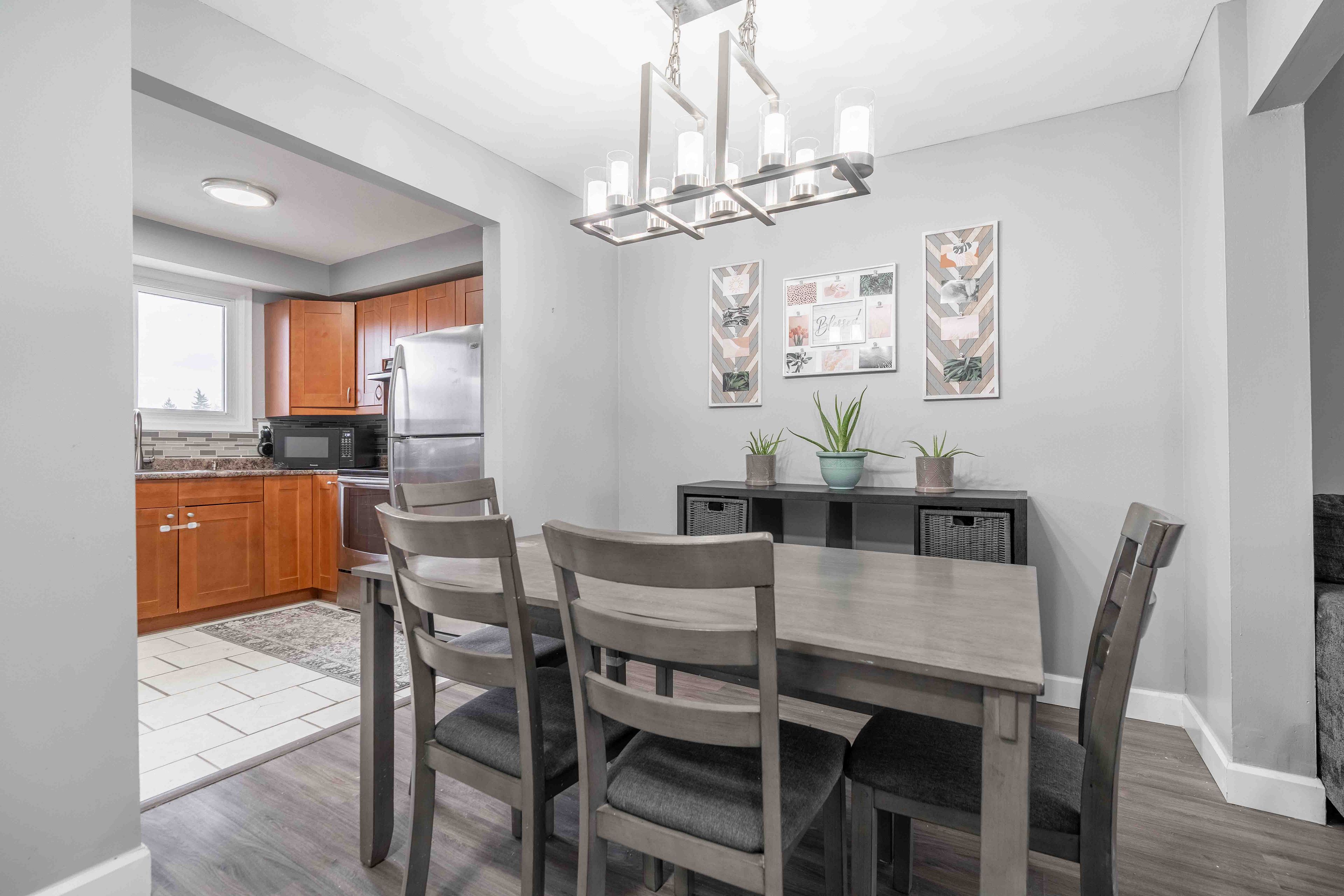 Welcome home to this renovated and well-maintained end-unit townhome in a desirable and family-friendly neighbourhood. The open-conceptmain level features a spacious living room with a stylish electric fireplace wall, full dining area and large eat-in kitchen. The second floor featuresthree generously sized, carpet-free bedrooms and a four-piece bathroom. Perfectly situated close to all major amenities-including schools,parks, restaurants, shopping, public transit, and highway access-this home truly has it all. There's nothing left to do but move in!
